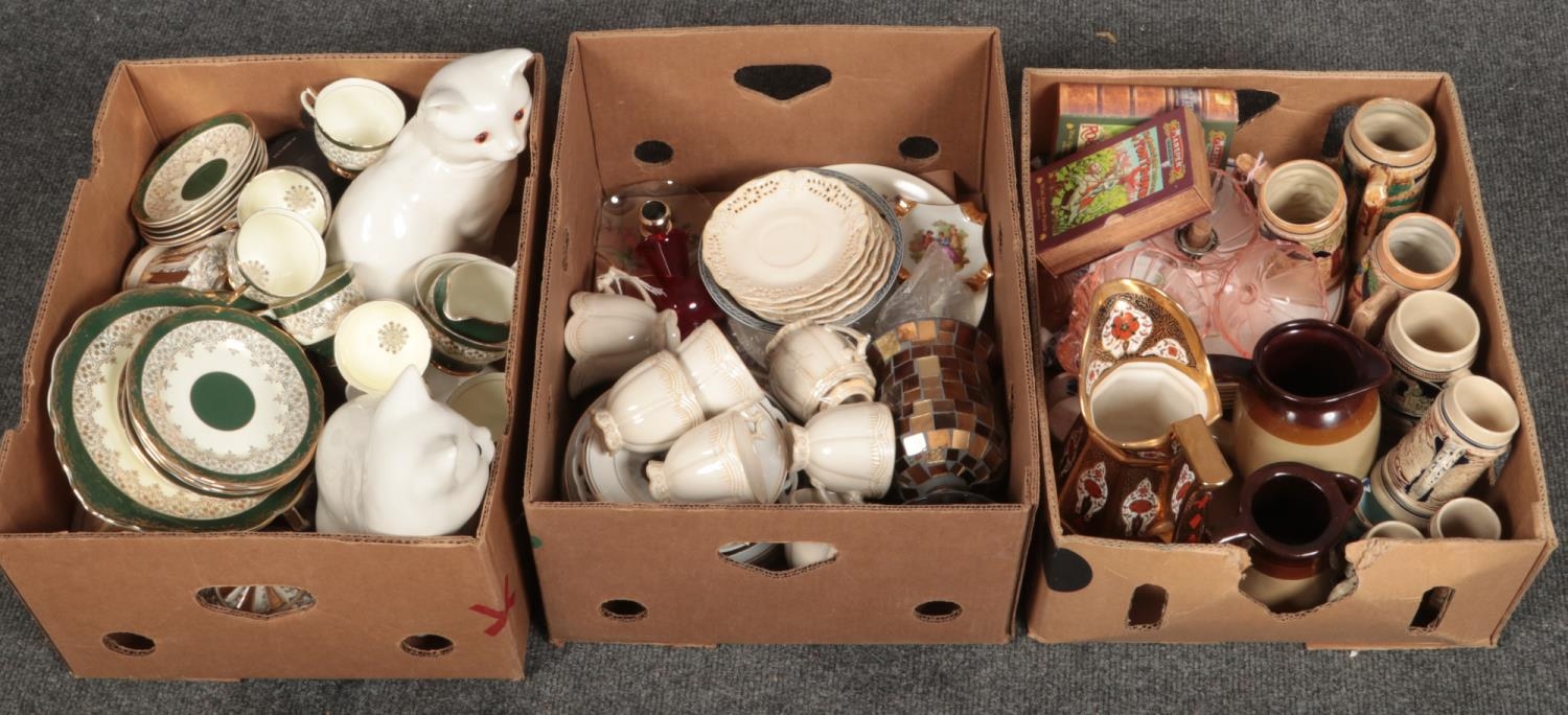 Three boxes of miscellaneous, mainly ceramics, plates, dishes etc