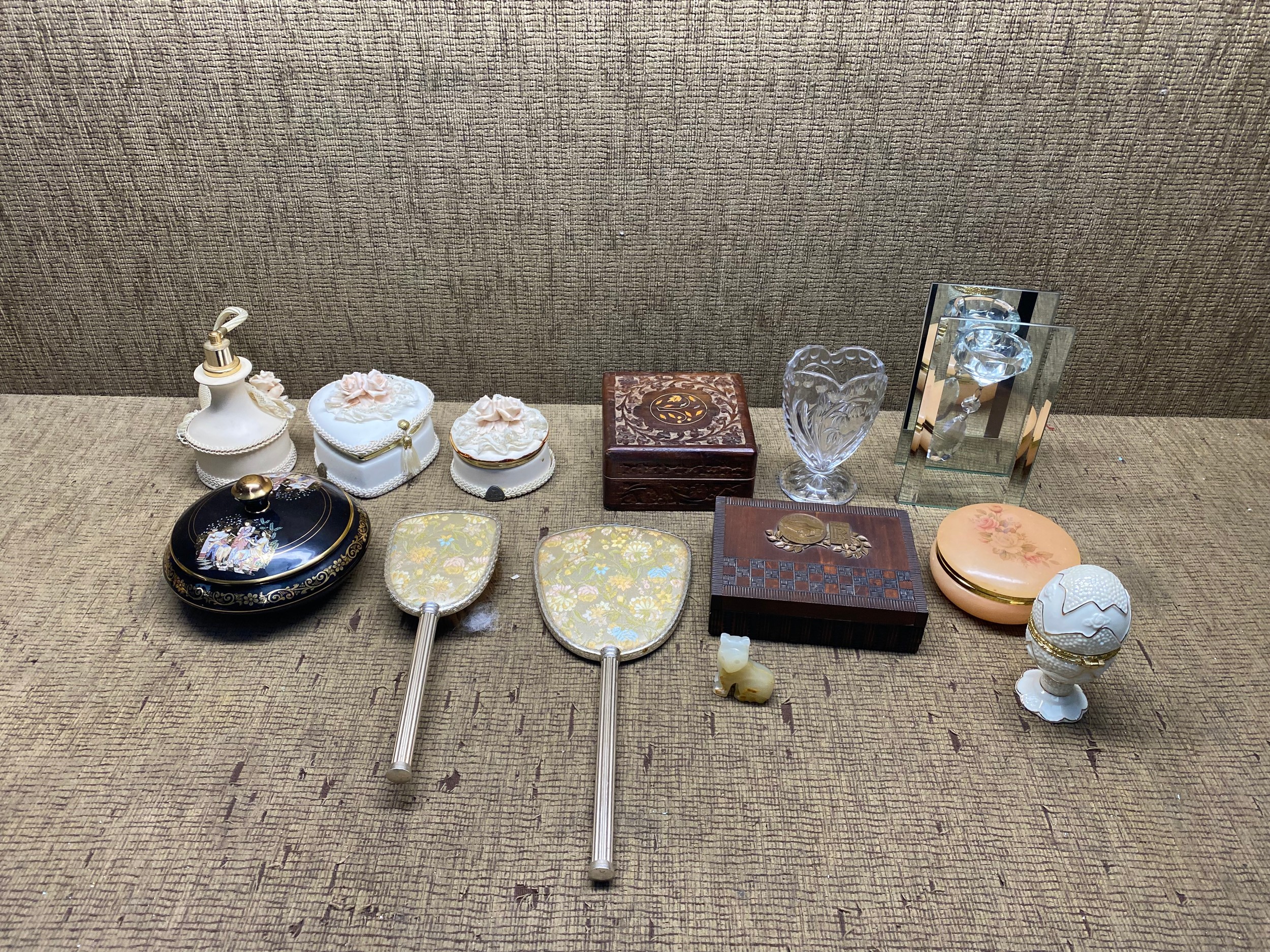 Collectible items including: Via Veneto italian porcelain and marble trinket box.