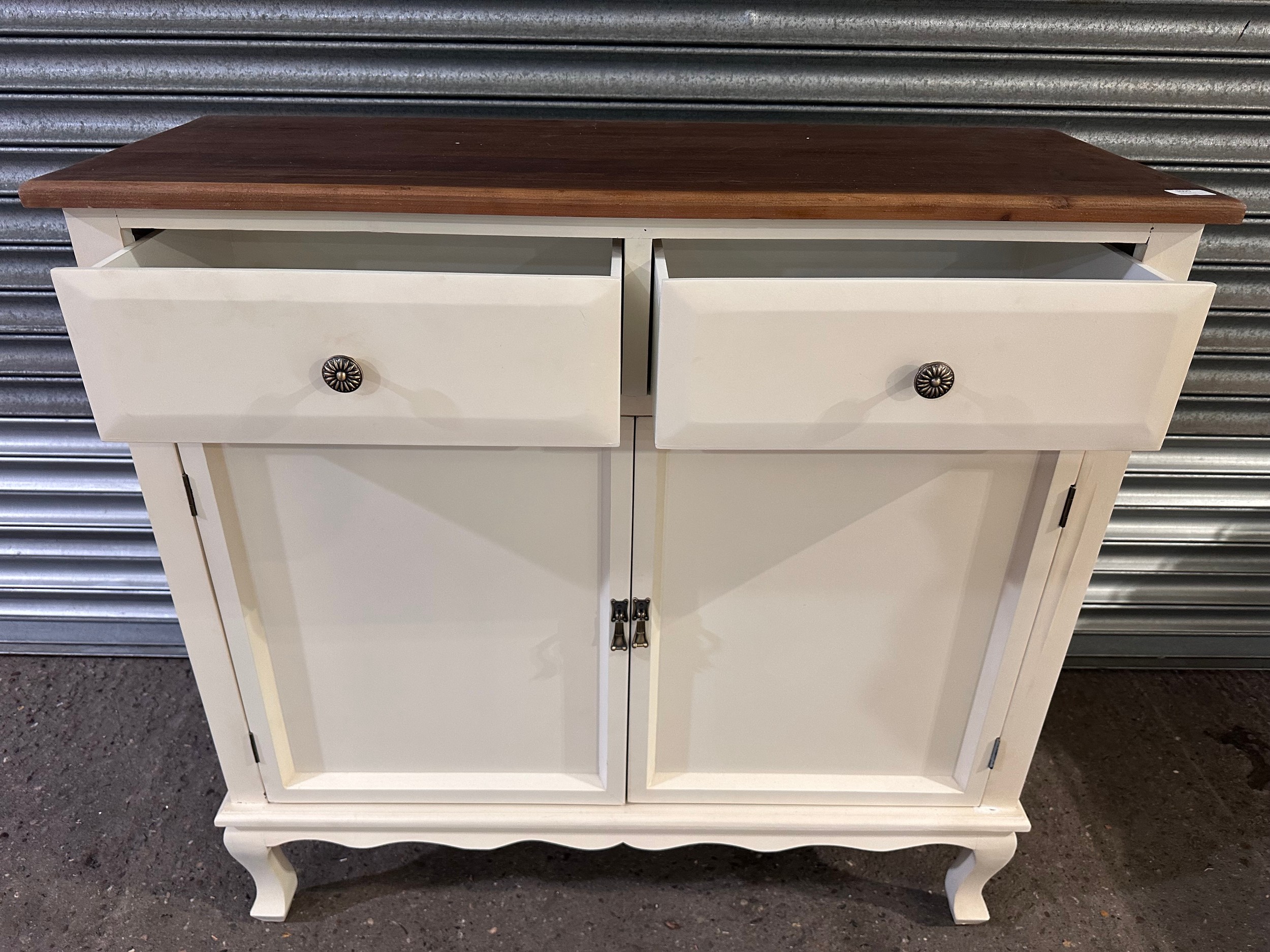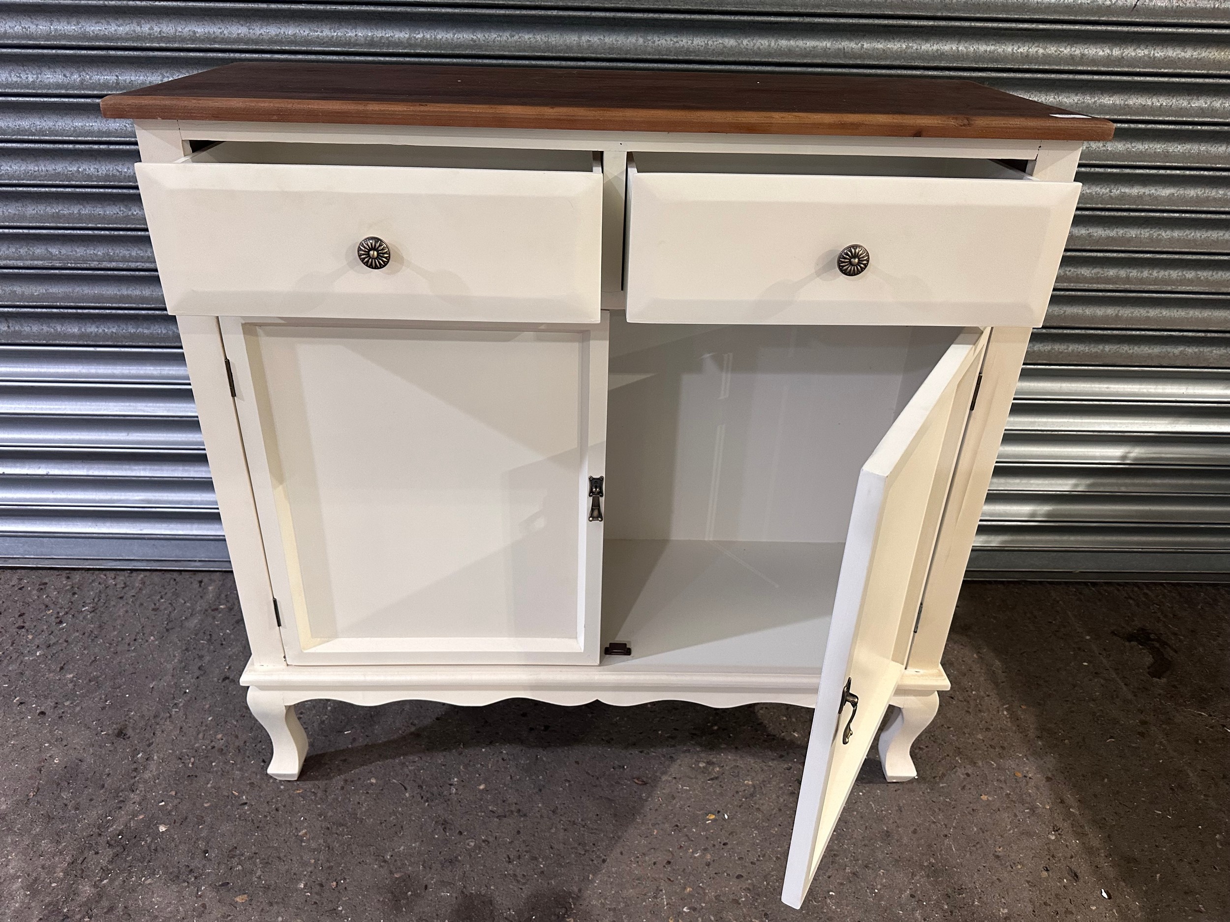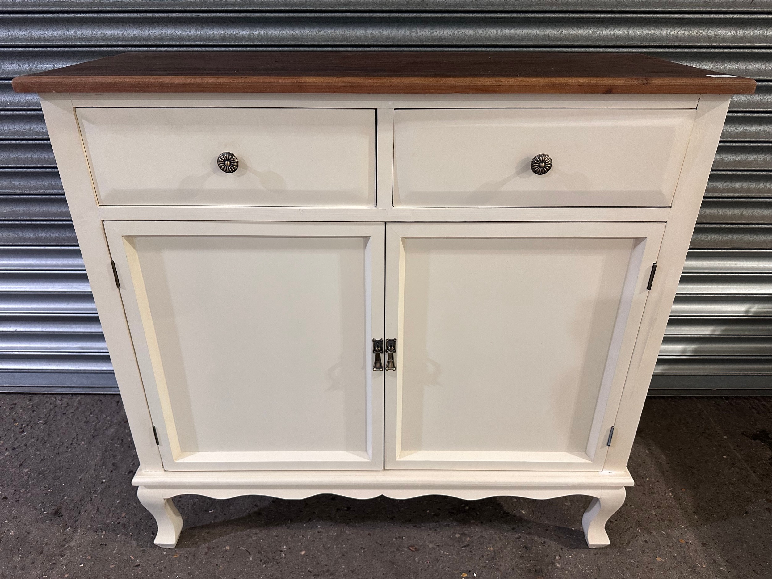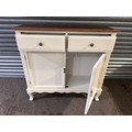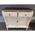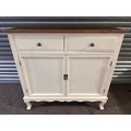 A white 2 door 2 drawer high sideboard with contrast top (marked/damaged)