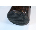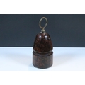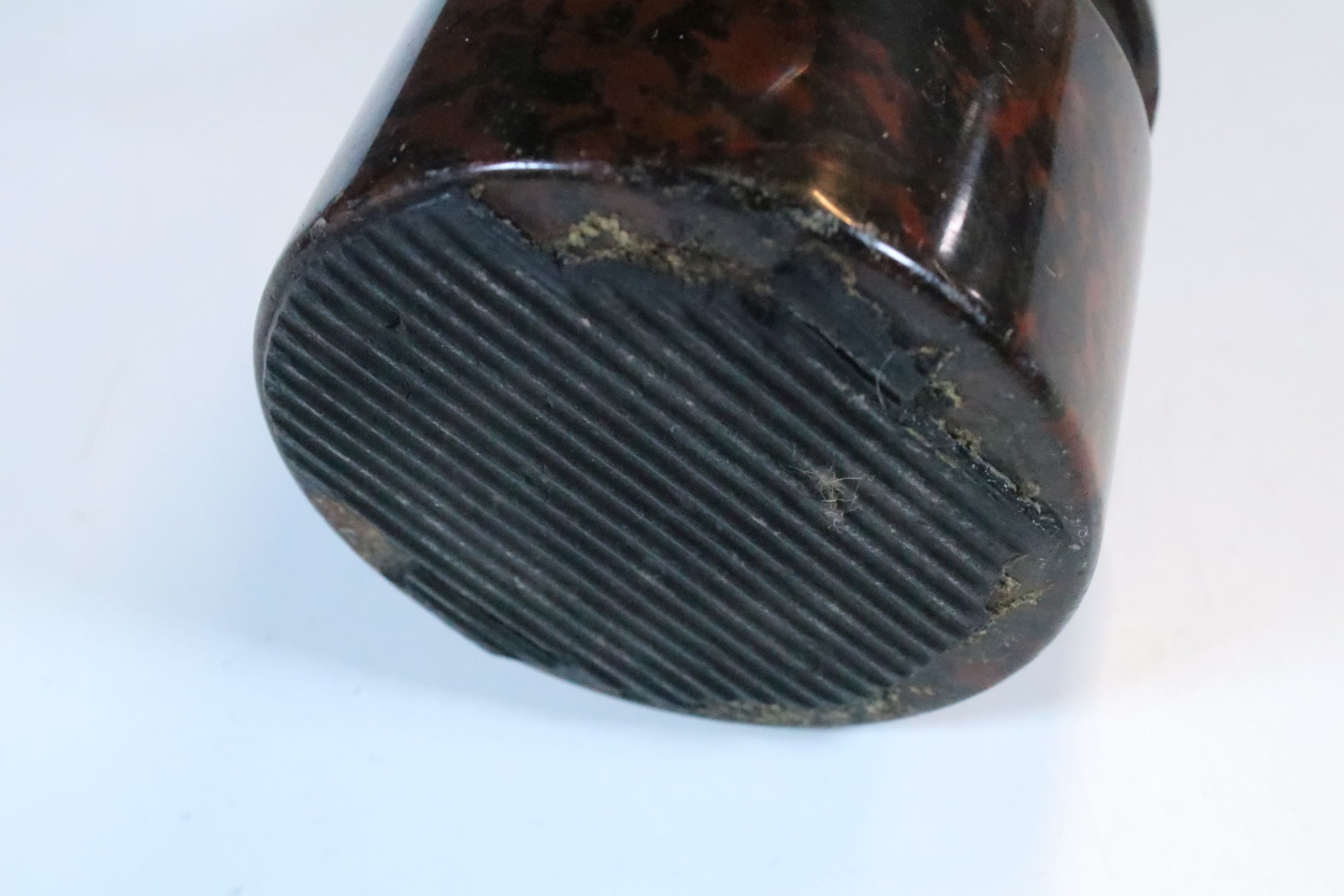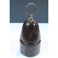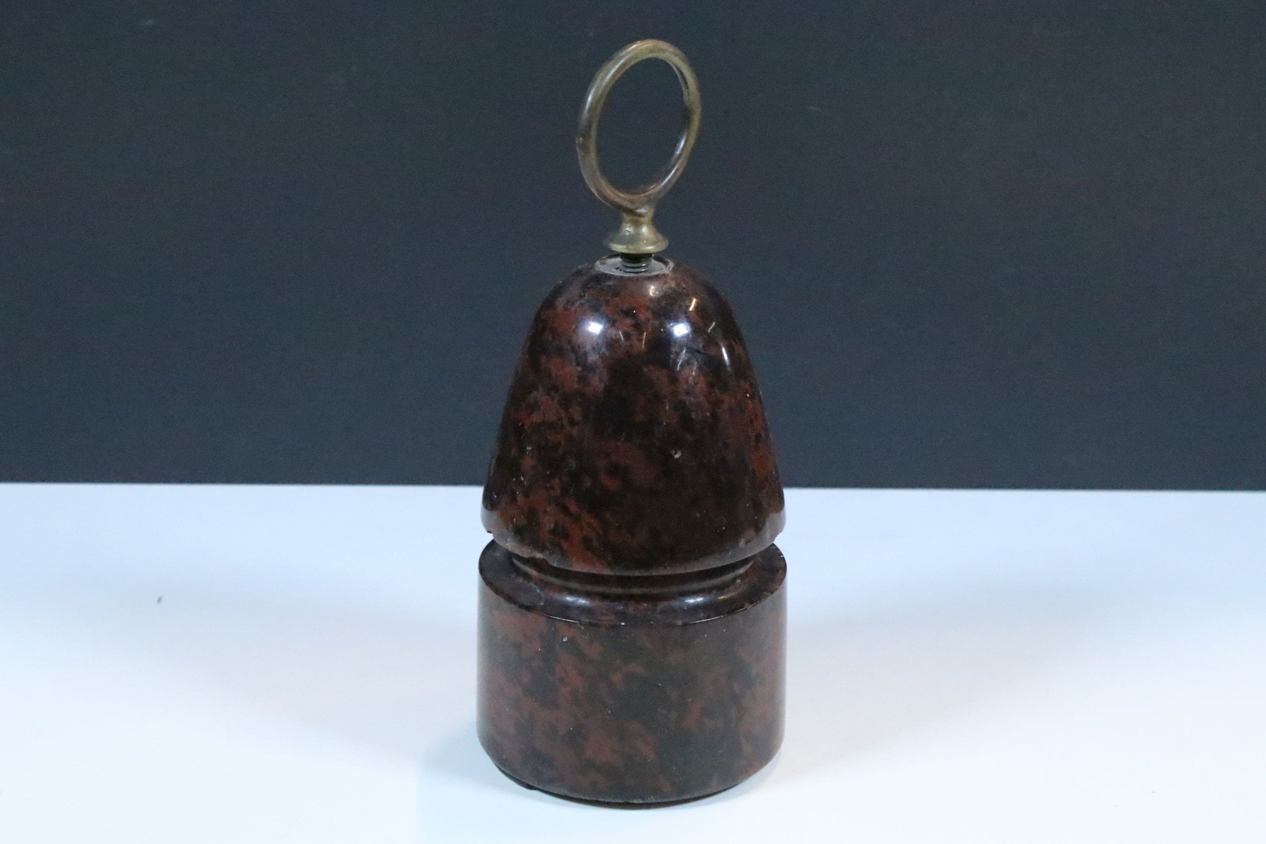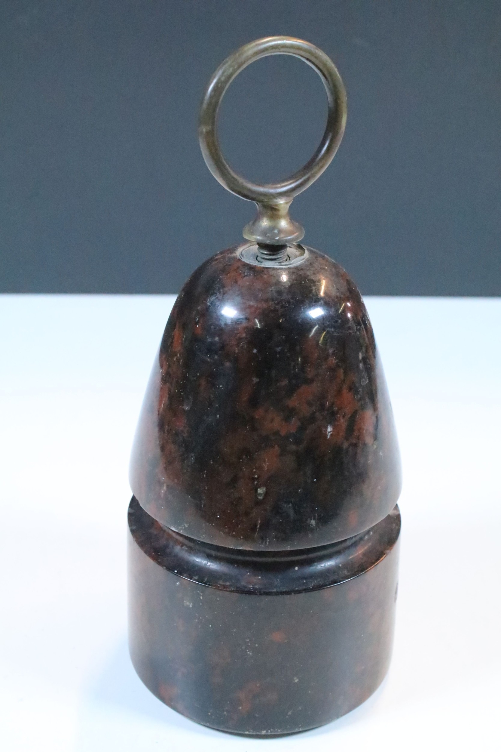 20th century polished serpentine stone door stop with brass loop handle, 22cm