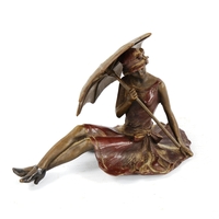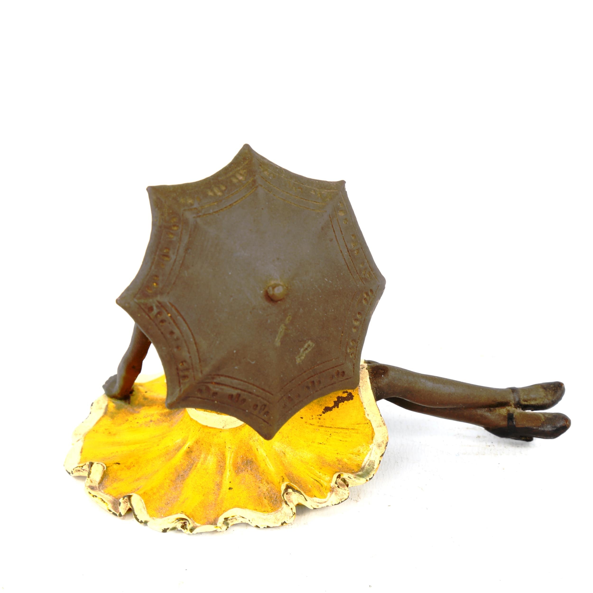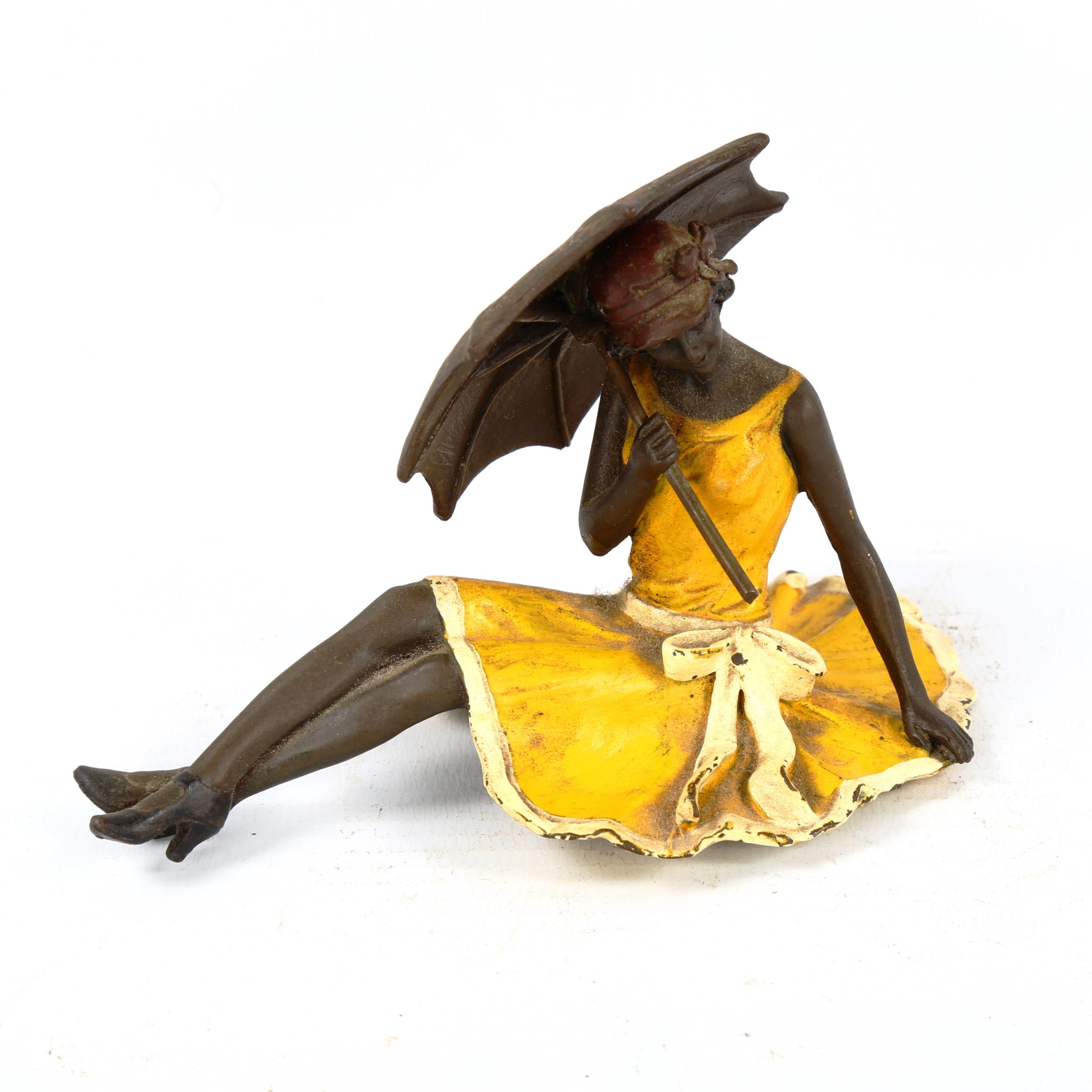 Bergmann style cold painted bronze erotic figure, woman with parasol, length 11cm