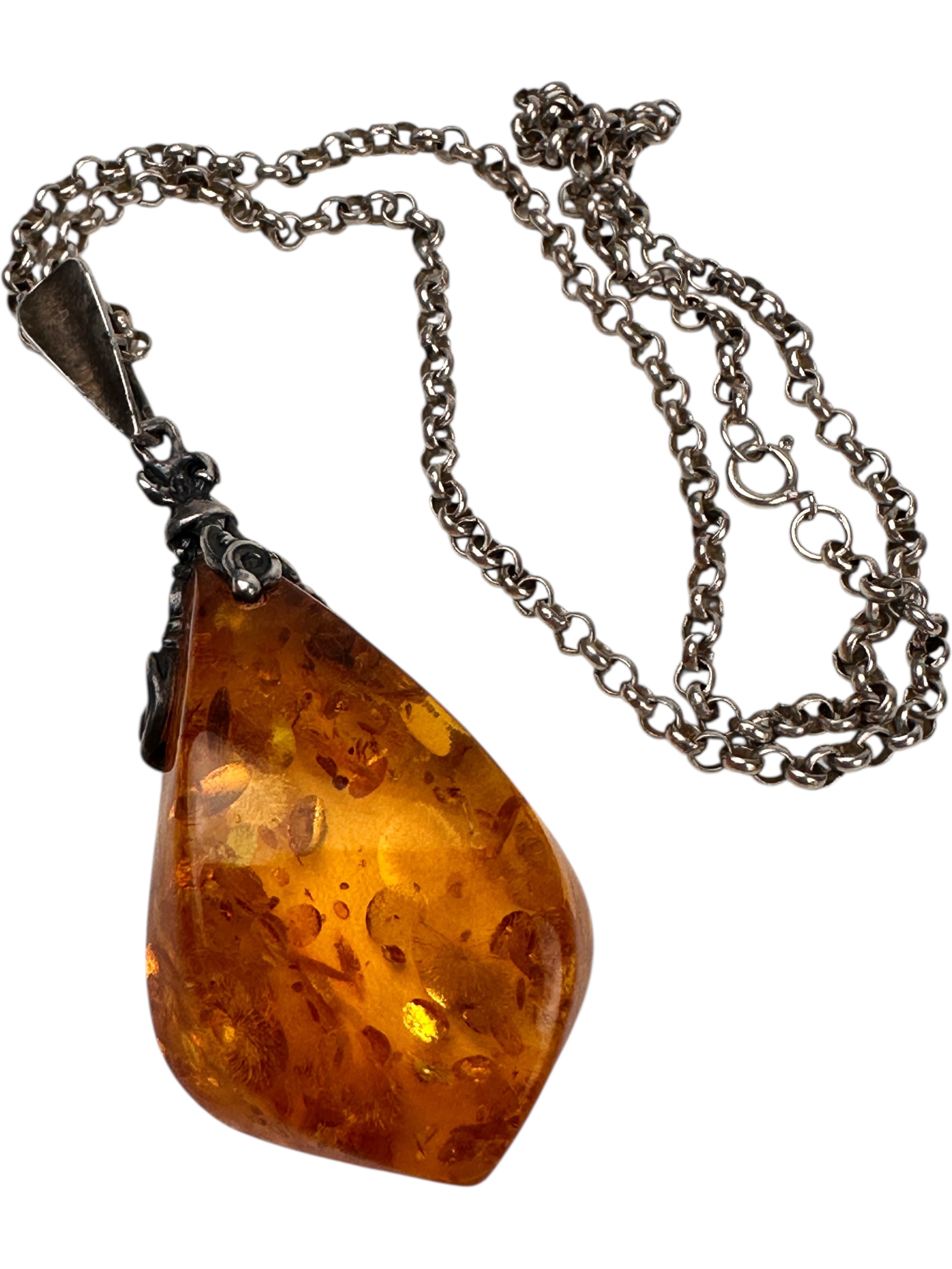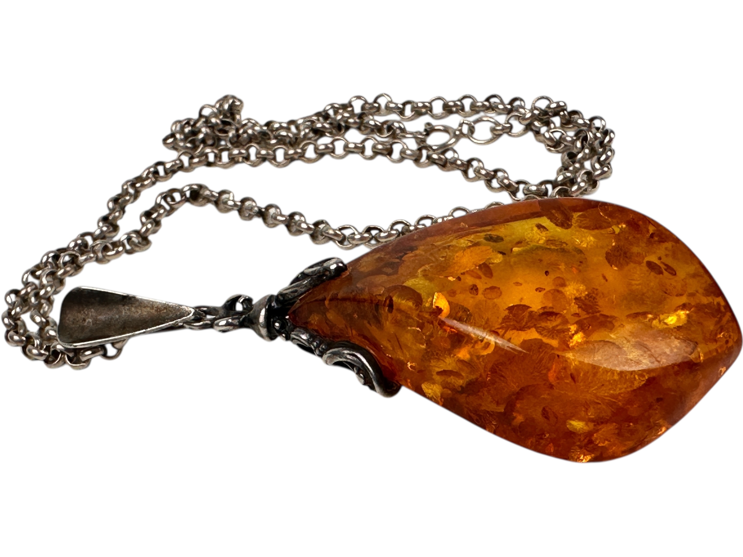 Large Amber and Silver Pendant