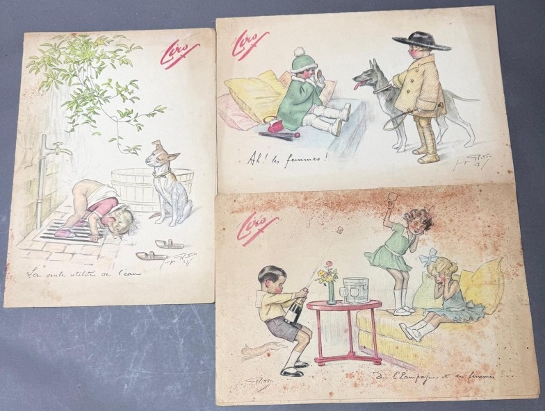 Three vintage menus featuring Whimsical images by George Redon