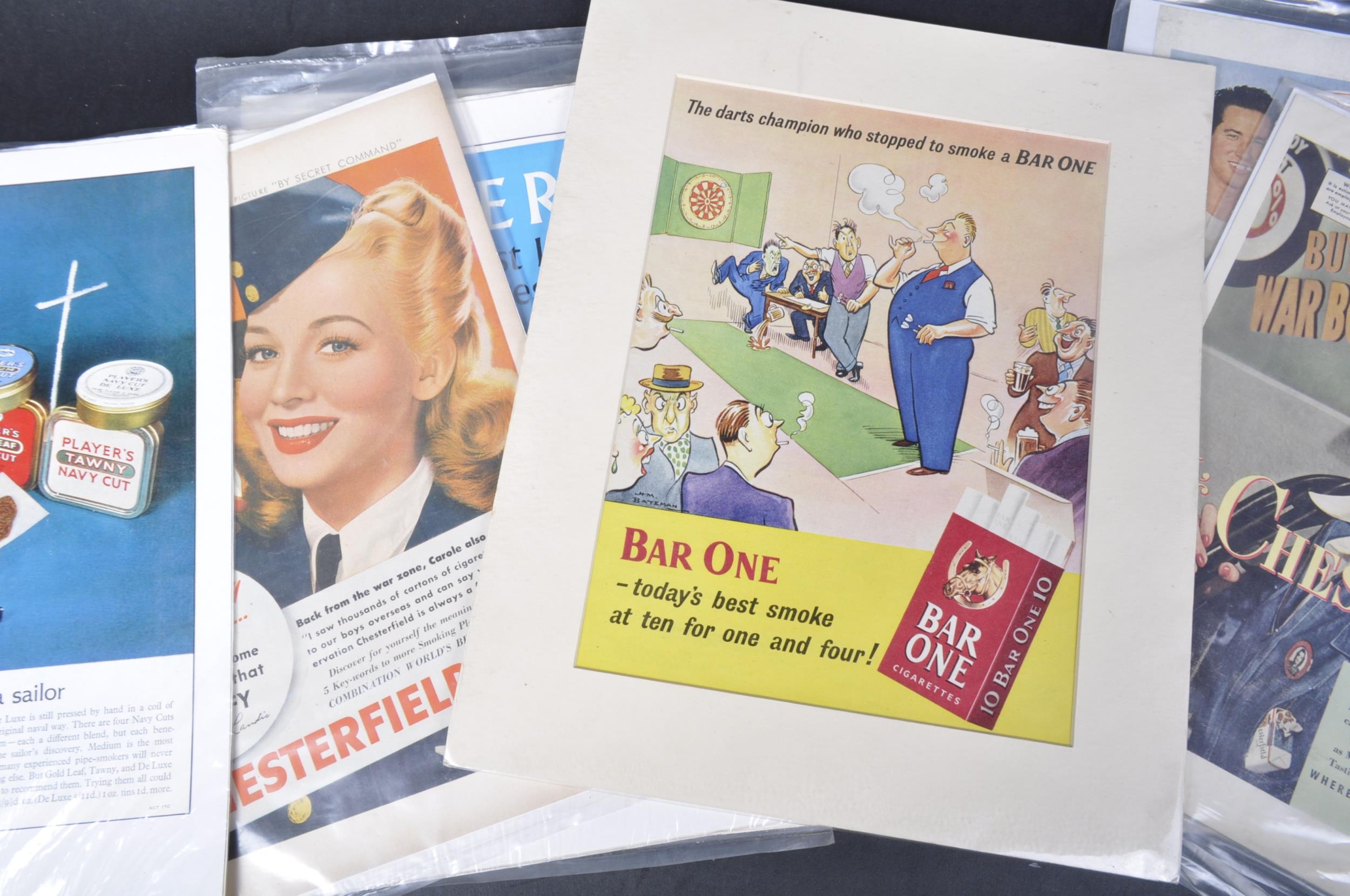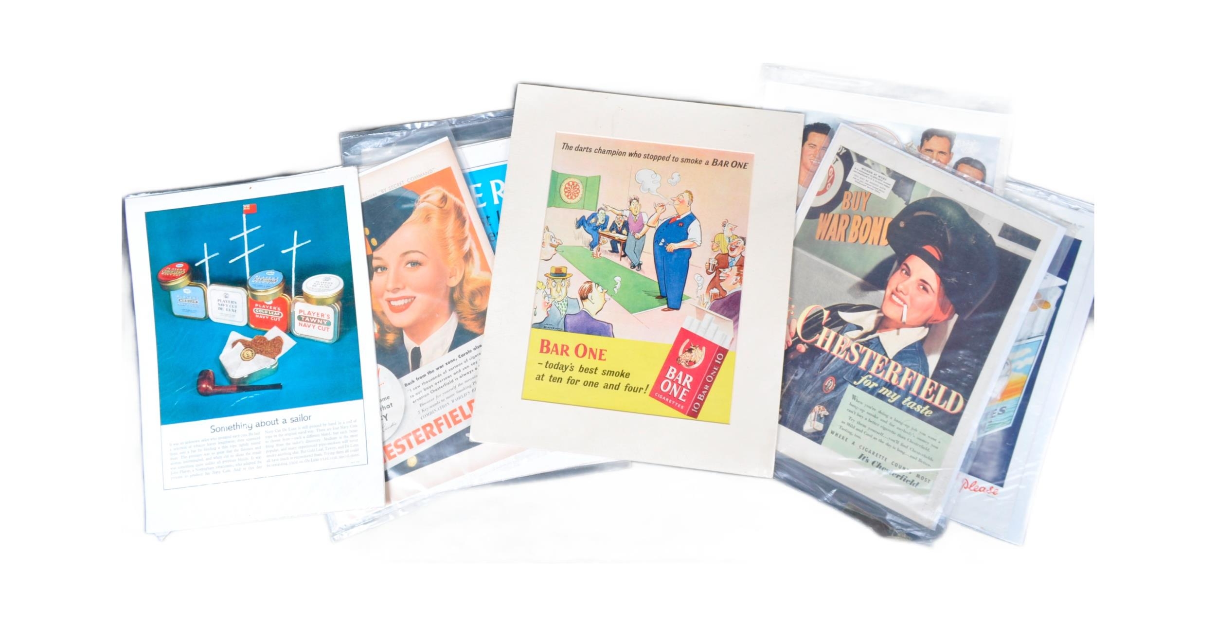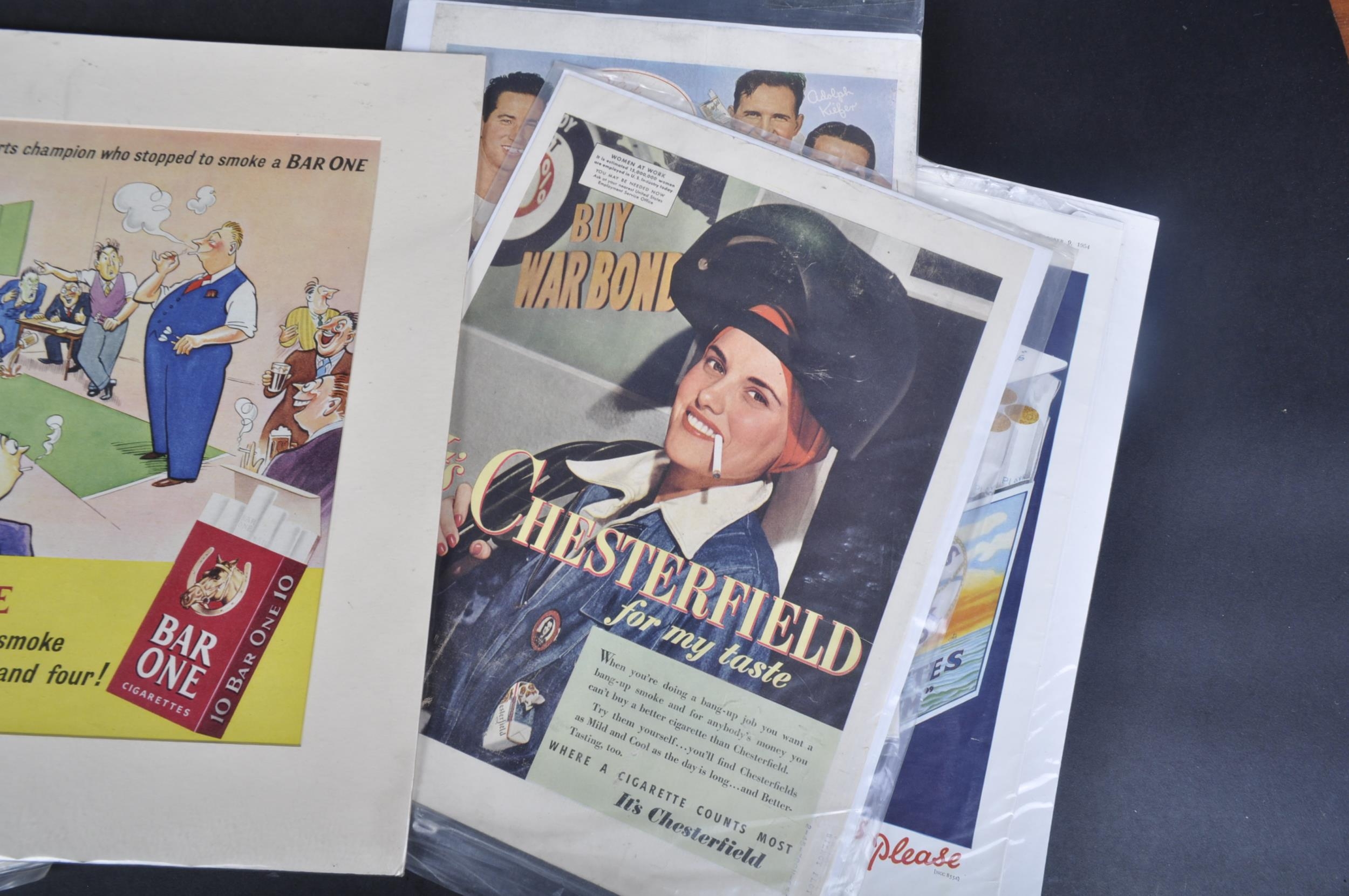 Smoking Related Advertisement - A mixed selection of retro vintage 20th Century paper cigarette advertisements with various brands to include Chesterfield, Camels, Fleetwood, Lucky Strike, Murad, Bar One and many more.