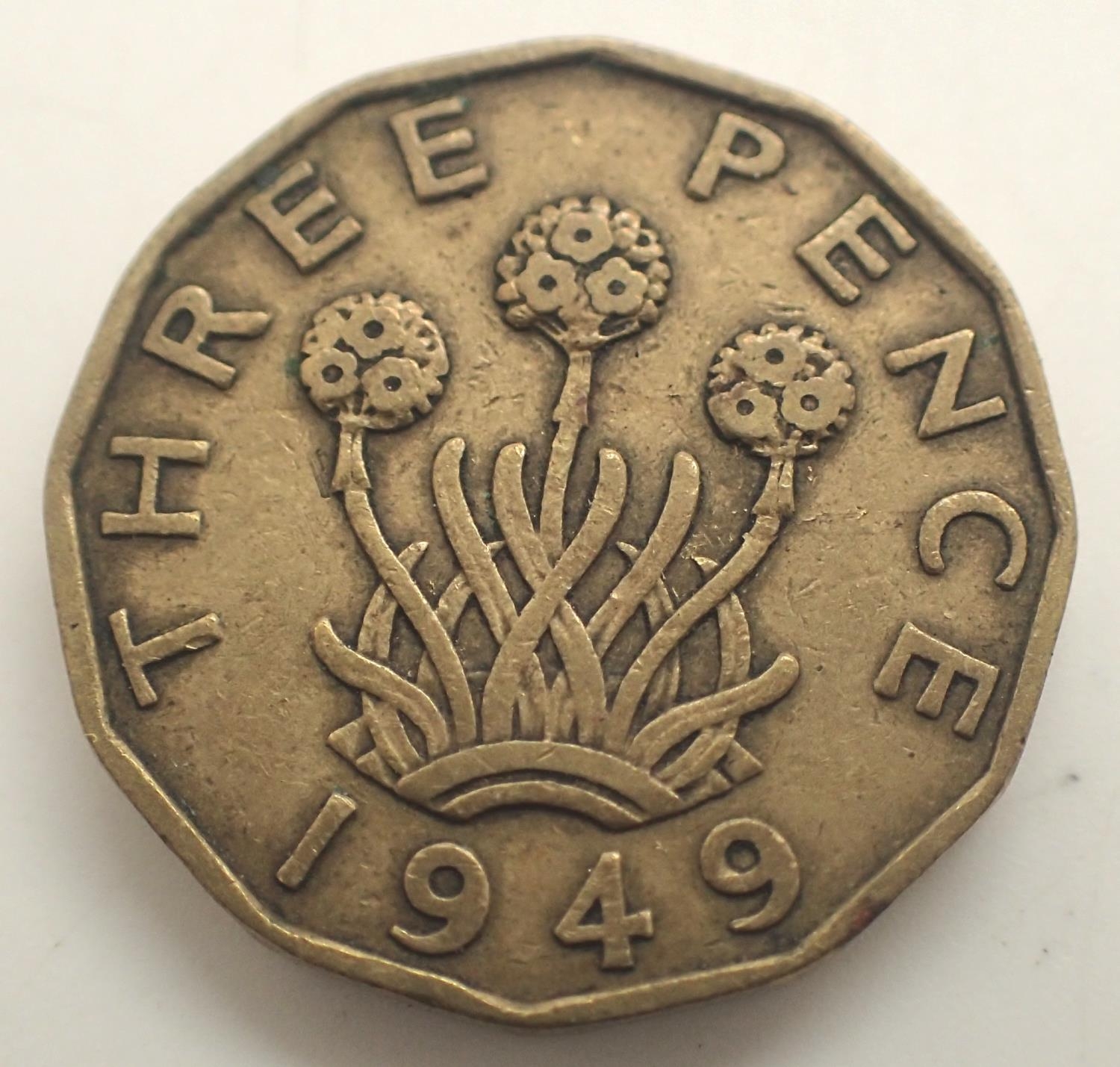 Low mintage key date 1949 threepence of George V, VF grade. P&P Group 1 (£14+VAT for the first lot and £1+VAT for subsequent lots)