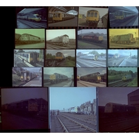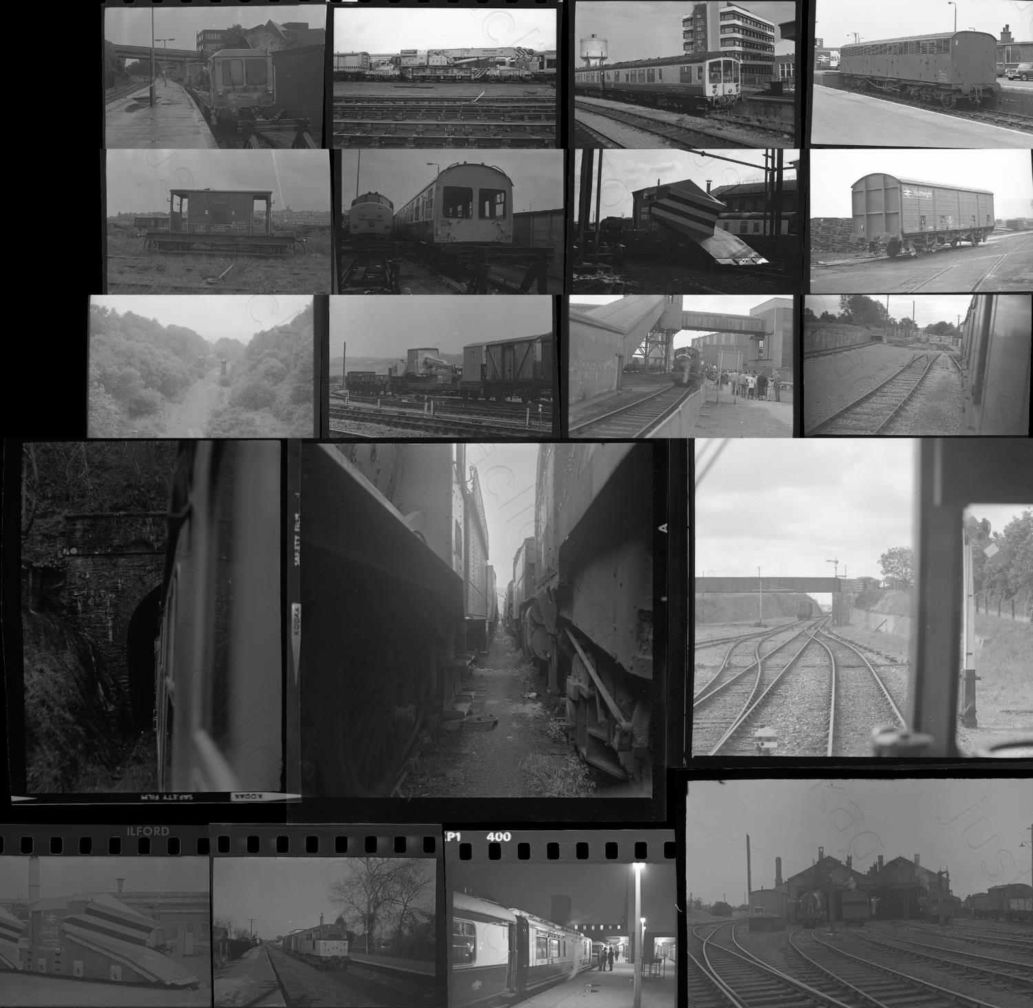 Railway. Infrastructure. A small selection of assorted sizes, black and white and colour negatives. There are approx. 50 including 2 glass lantern slides, showing the Severn Bridge and Betwys-y-Coed station in 1890. The majority of the negatives feature departmental rolling stock including cranes, snowploughs, inspection saloons, track machines and wagons. There are a few stations, trackbeds, signals and tunnels. They mainly date from the 1980's. Most/all are captioned and they are sold with copyright. Sample illustrated.
