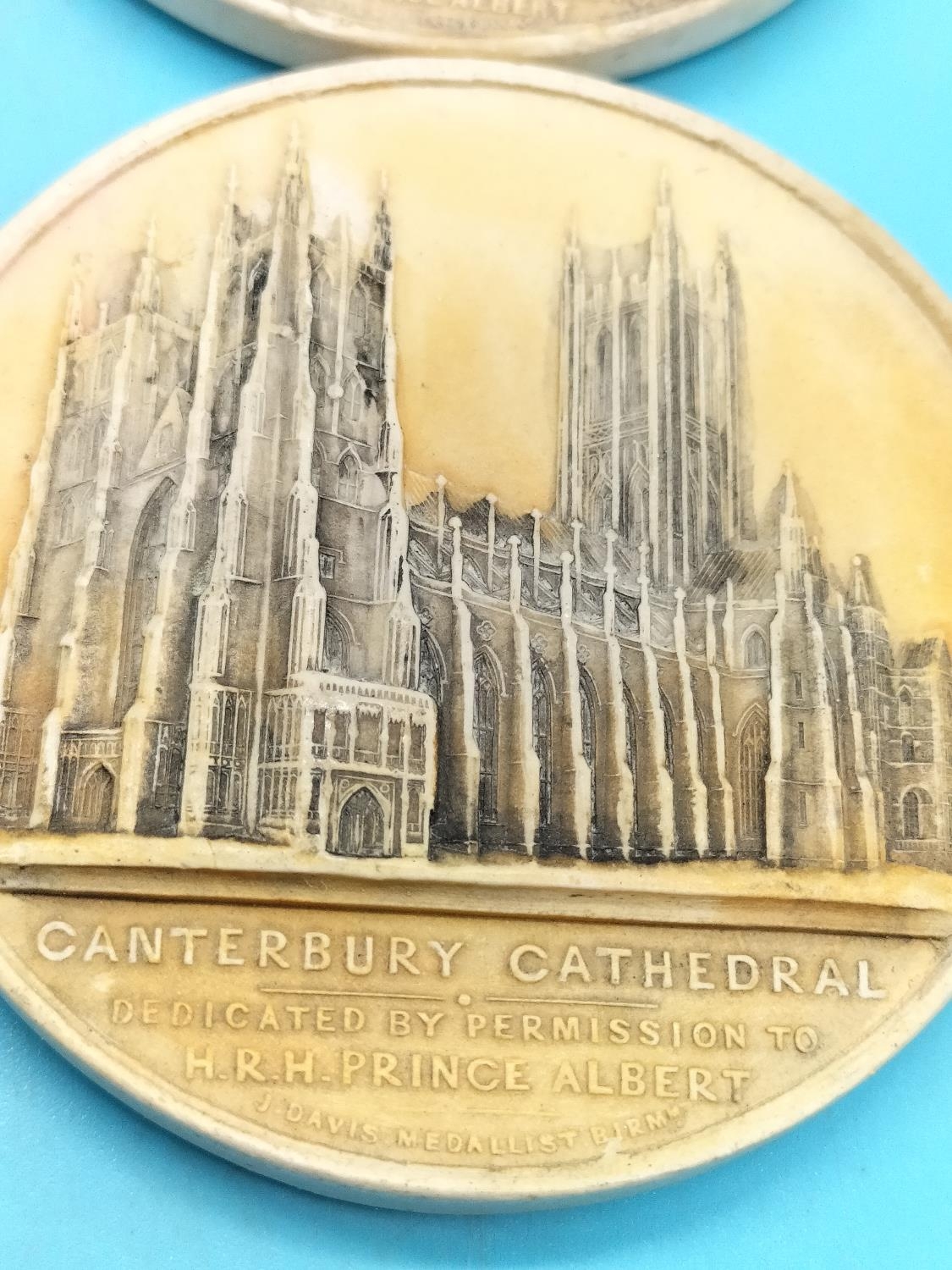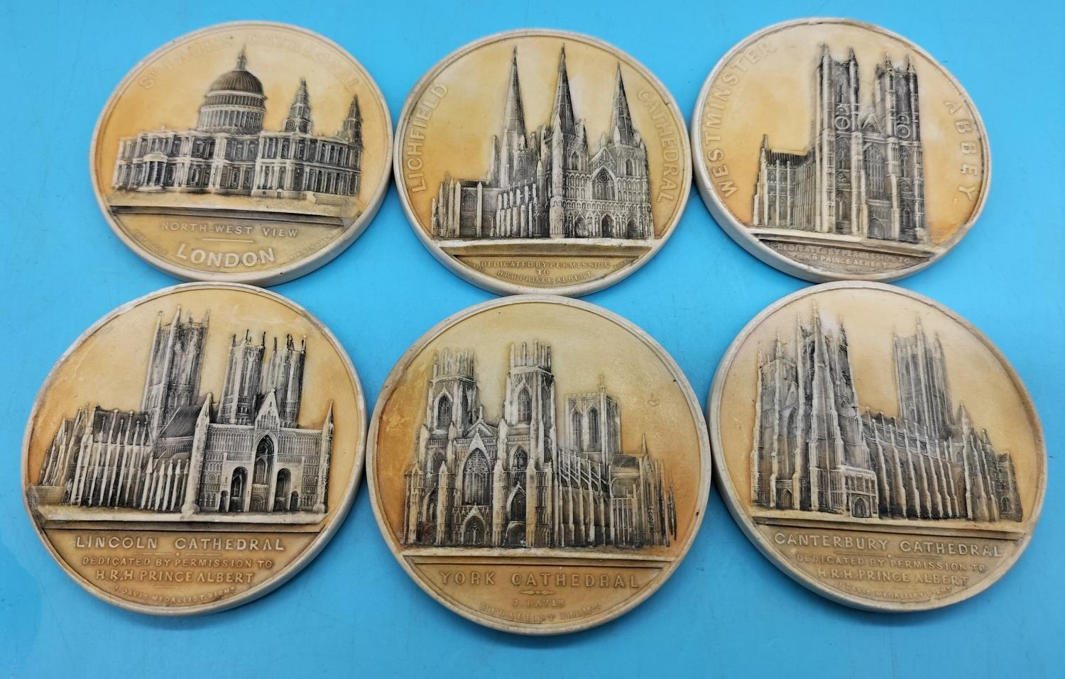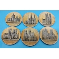 Collection of Ivorex Chalk Plaques/Medallions (possibly Bossons) of Cathedrals. 6cm Diameter. Some with Nibbles to Rim.