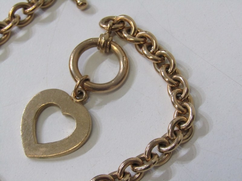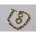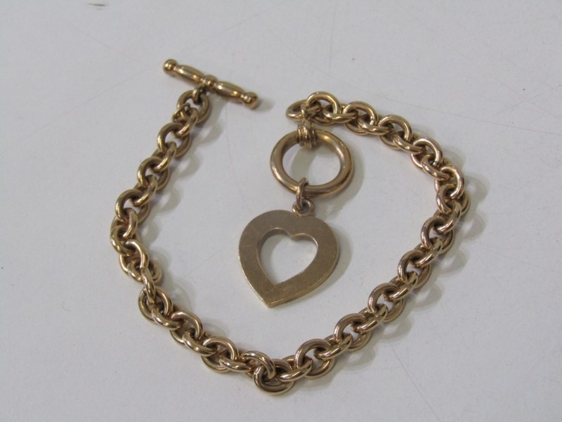 TIFFANY STYLE BRACELET, 9ct yellow gold Tiffany style bracelet with heart shaped pendant and T bar, 8" length, 25.4 grams