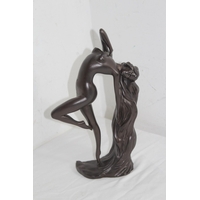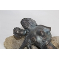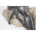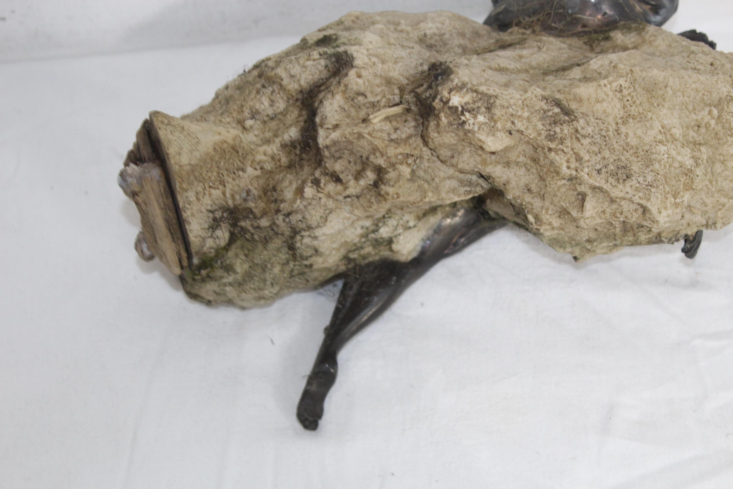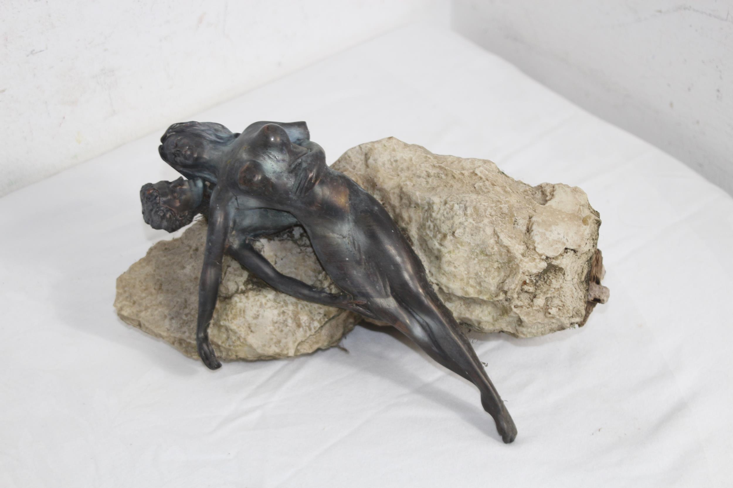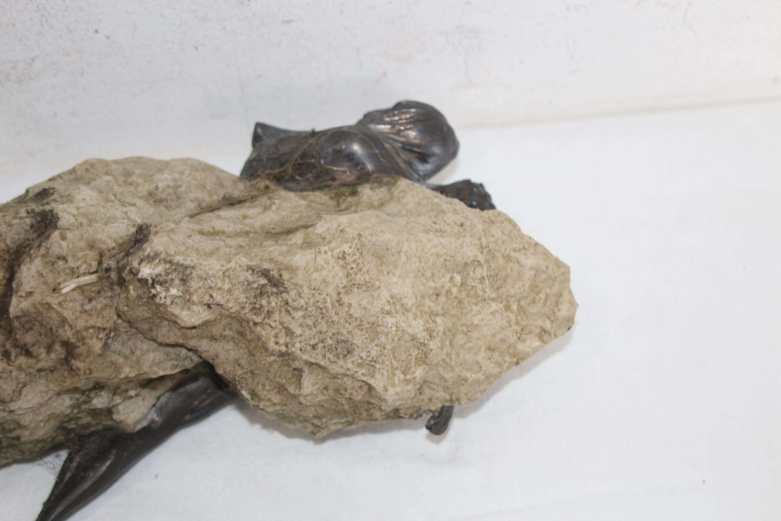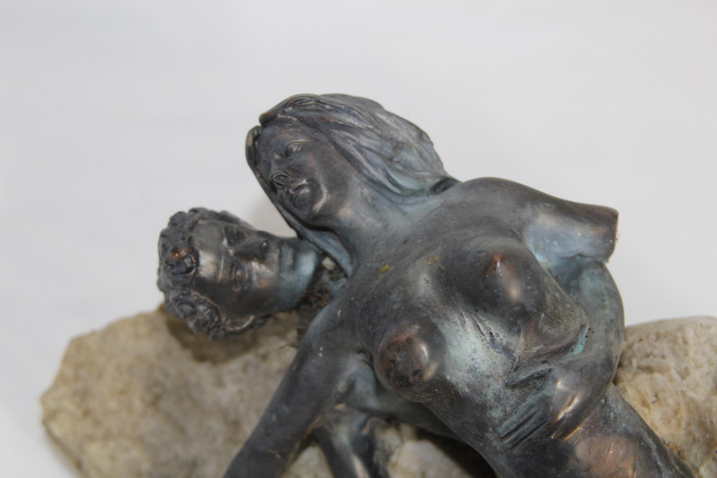PERIOD ART DECO MODEL OF A COUPLE IN AN EMBRACE WITH A ROCK BACKGROUND, 11 INCHES TALL, BASE DETERIORATED