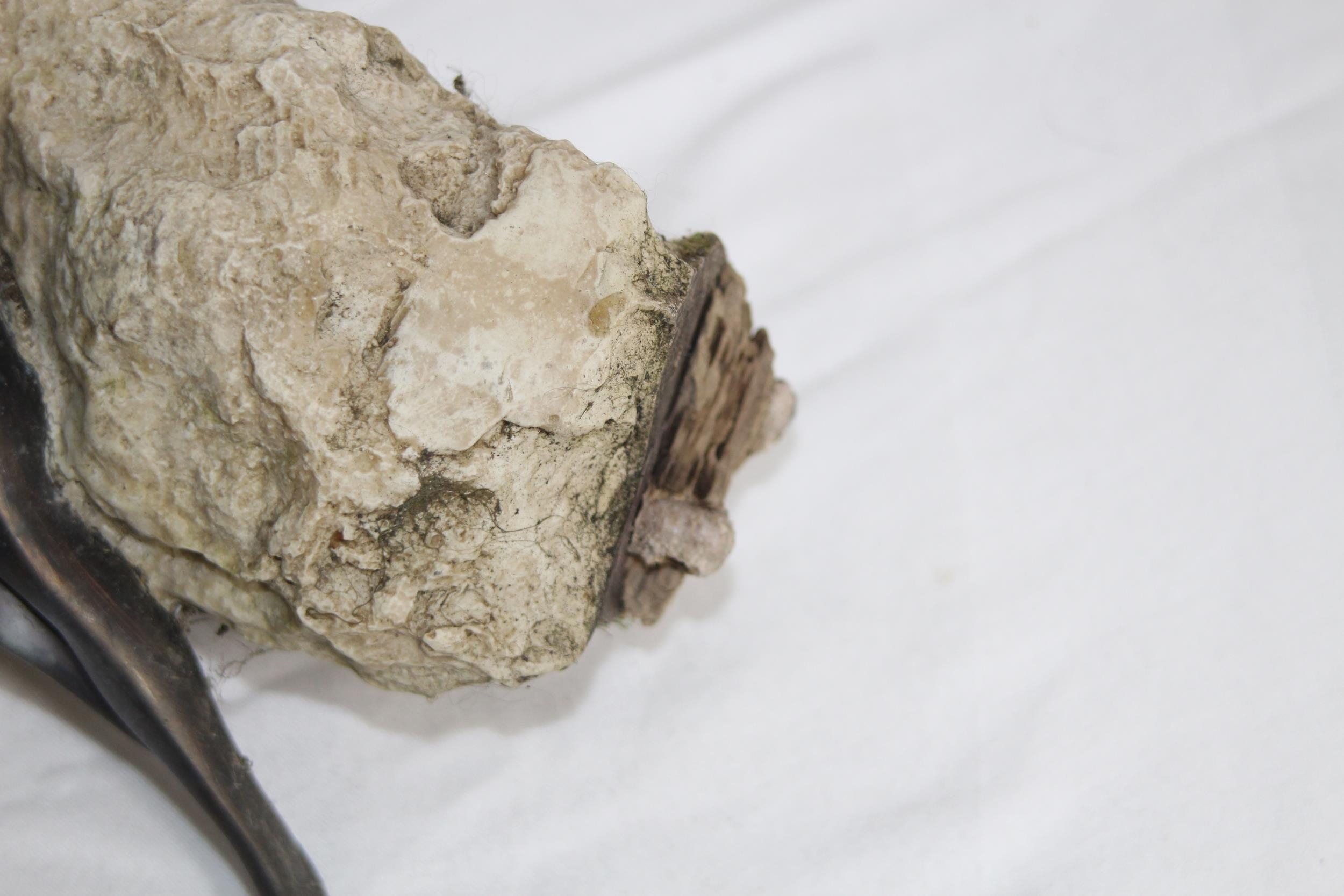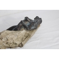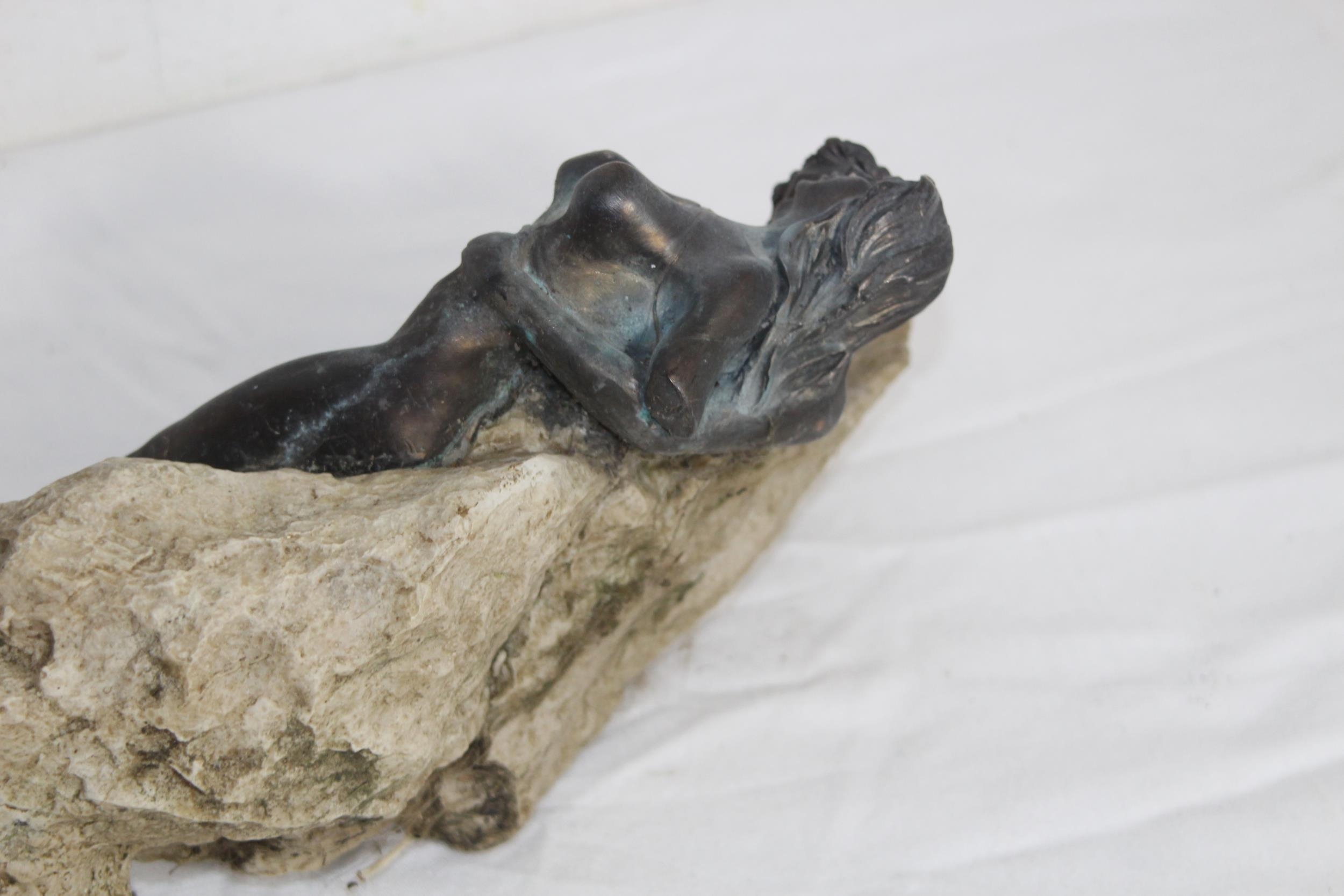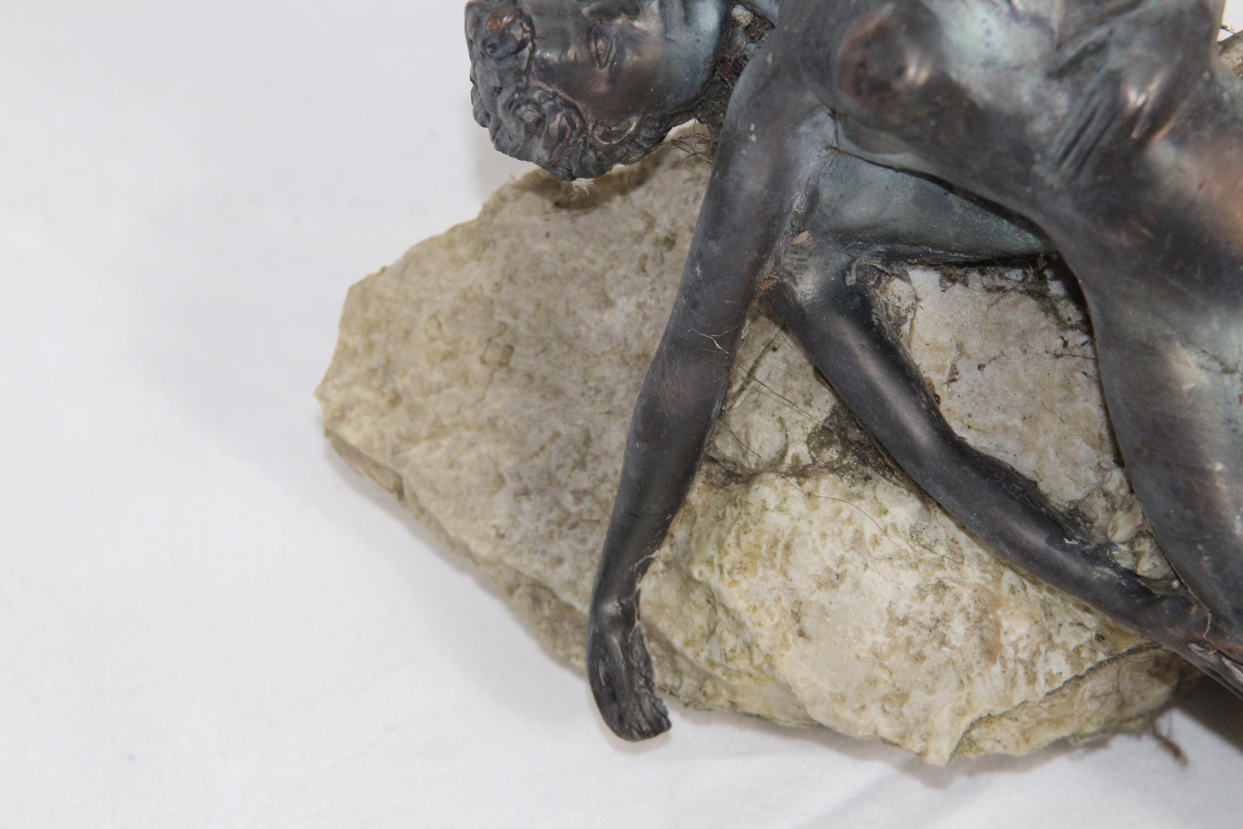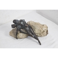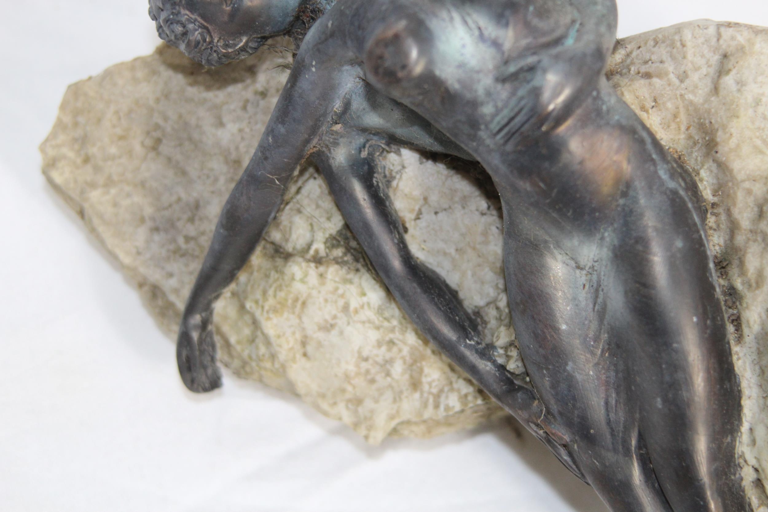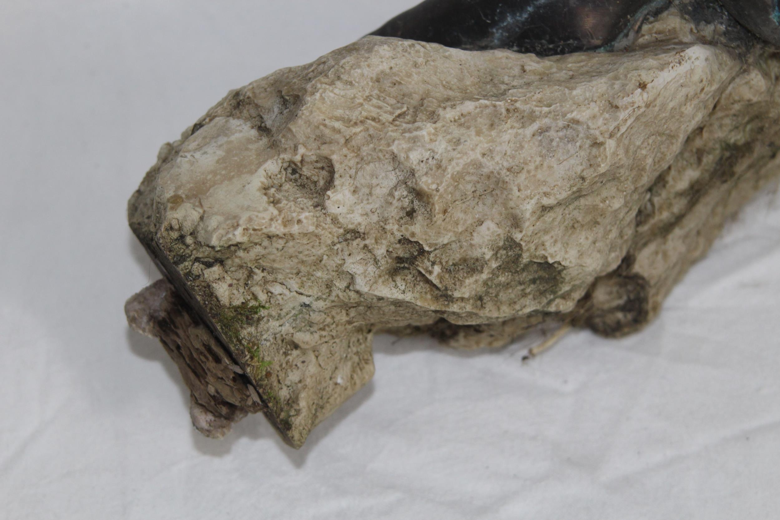 PERIOD ART DECO MODEL OF A COUPLE IN AN EMBRACE WITH A ROCK BACKGROUND, 11 INCHES TALL, BASE DETERIORATED