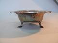 A silver bowl having flared crimped rim, standing on three stylised feet, Atkin Bros, Sheffield 1919, 7oz, 18cm diameter.