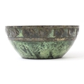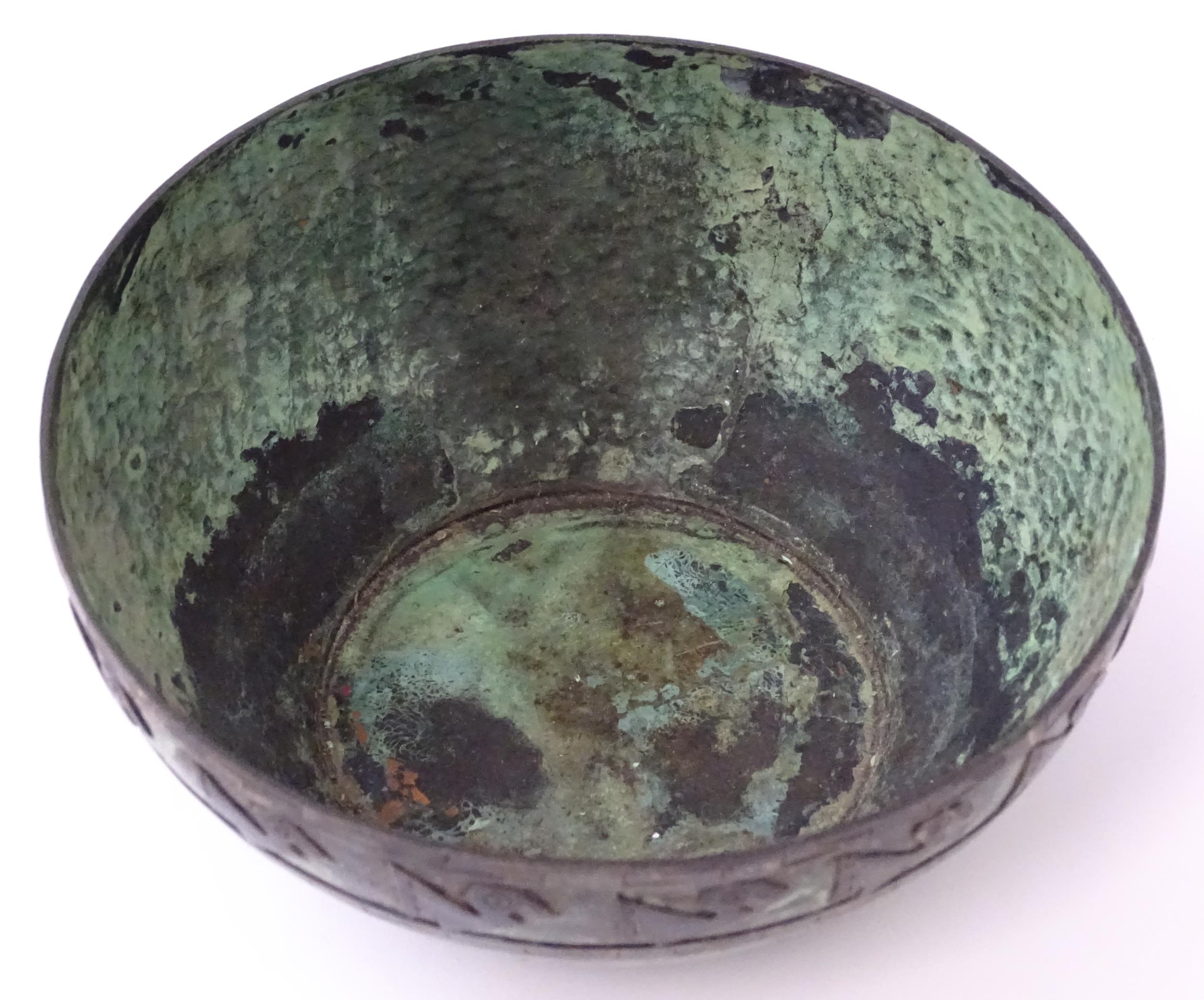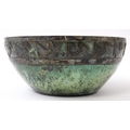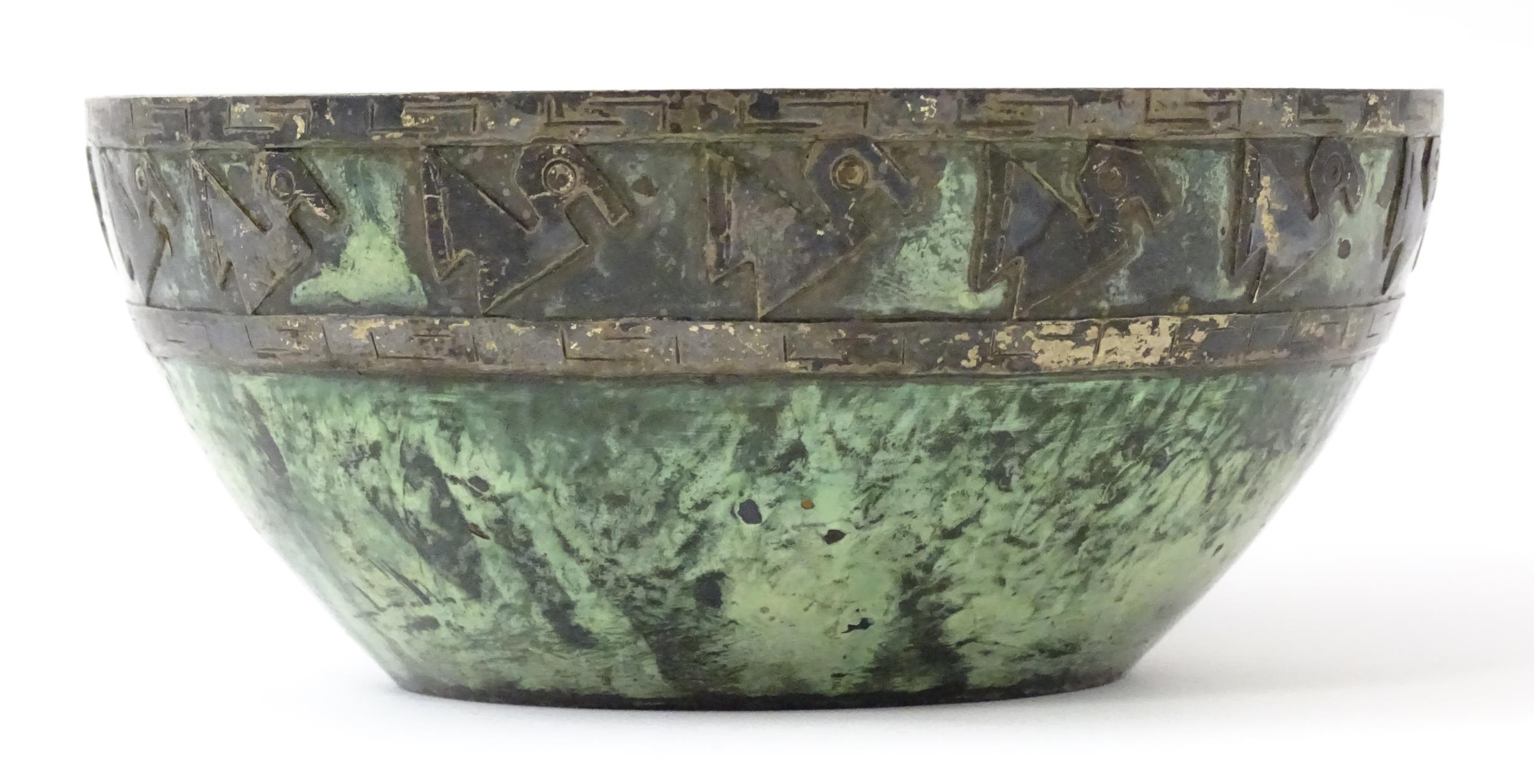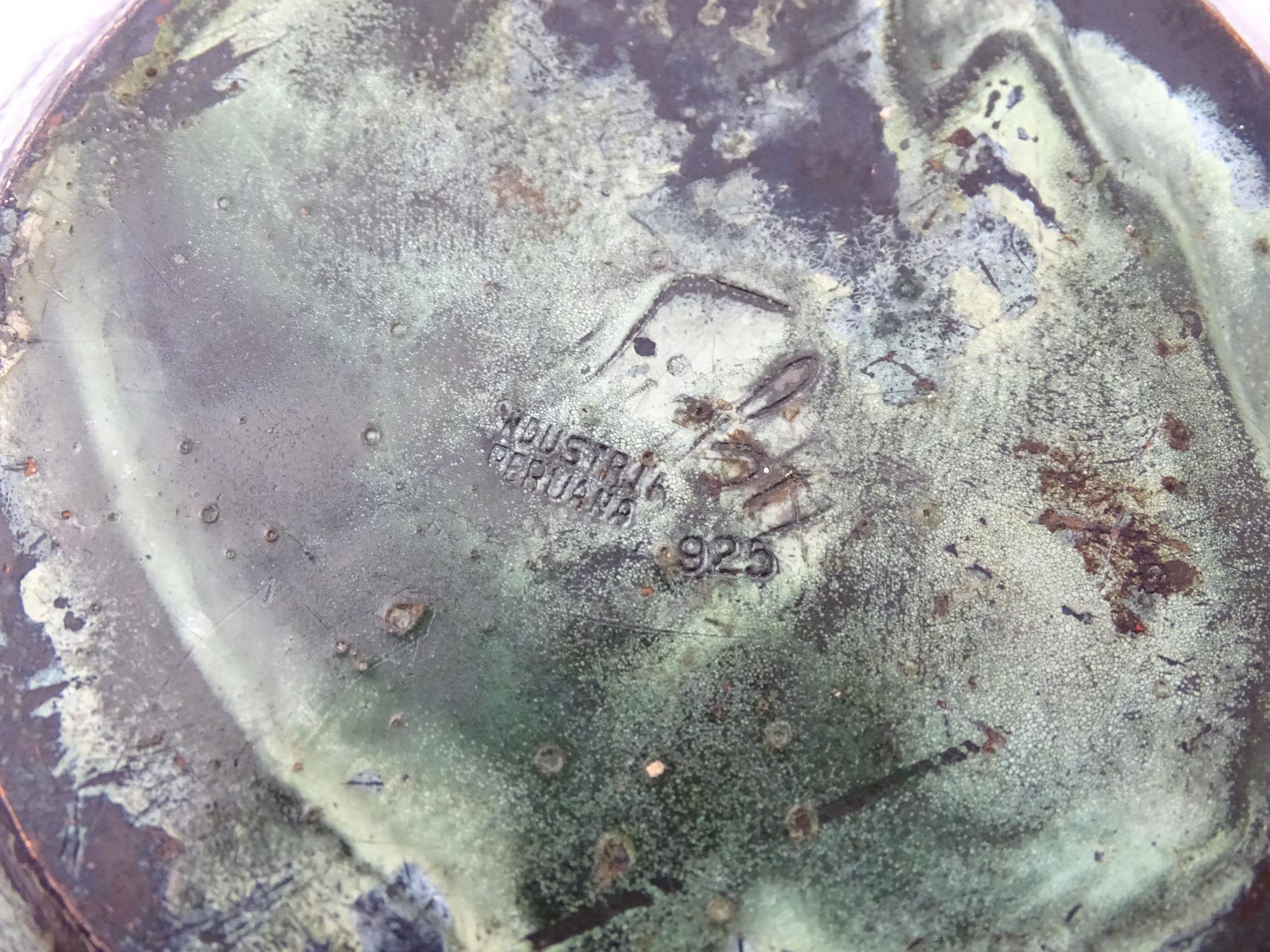 A Peruvian .925 silver bowl with banded stylised bird decoration and enamel detail. Marked Industria Peruana under. Approx. 2 1/2" high x 5 1/4" diameter
