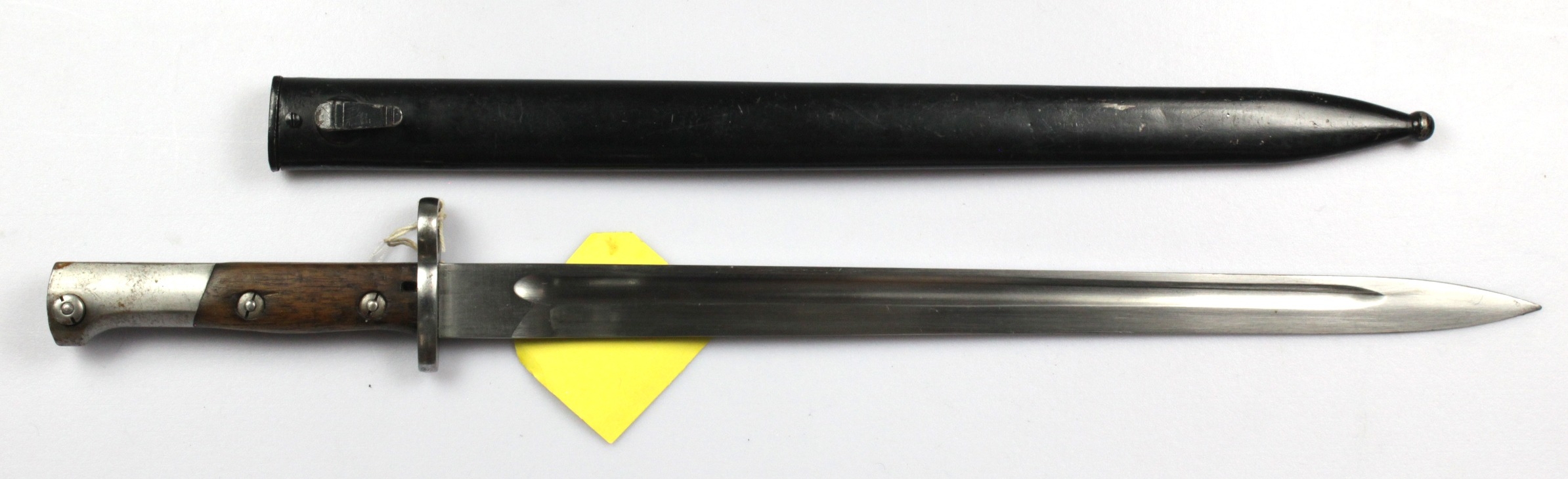 Bayonet: A good Belgian F.N. Long bayonet, Model 1924, in its blued steel scabbard. Blade 15". Very good condition.