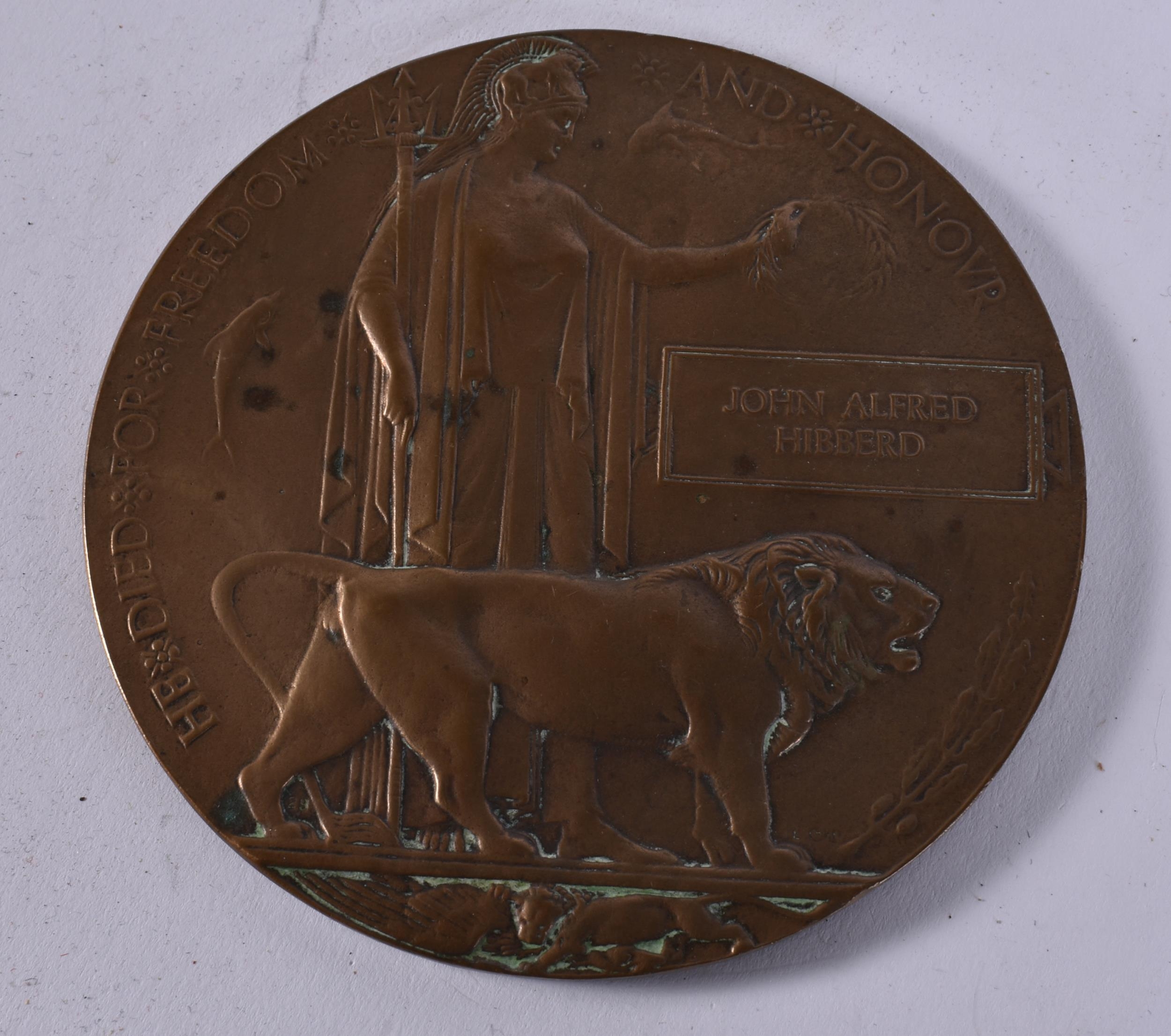 WW1 Death Plaque, John Alfred Hibberd. 12 cm wide.