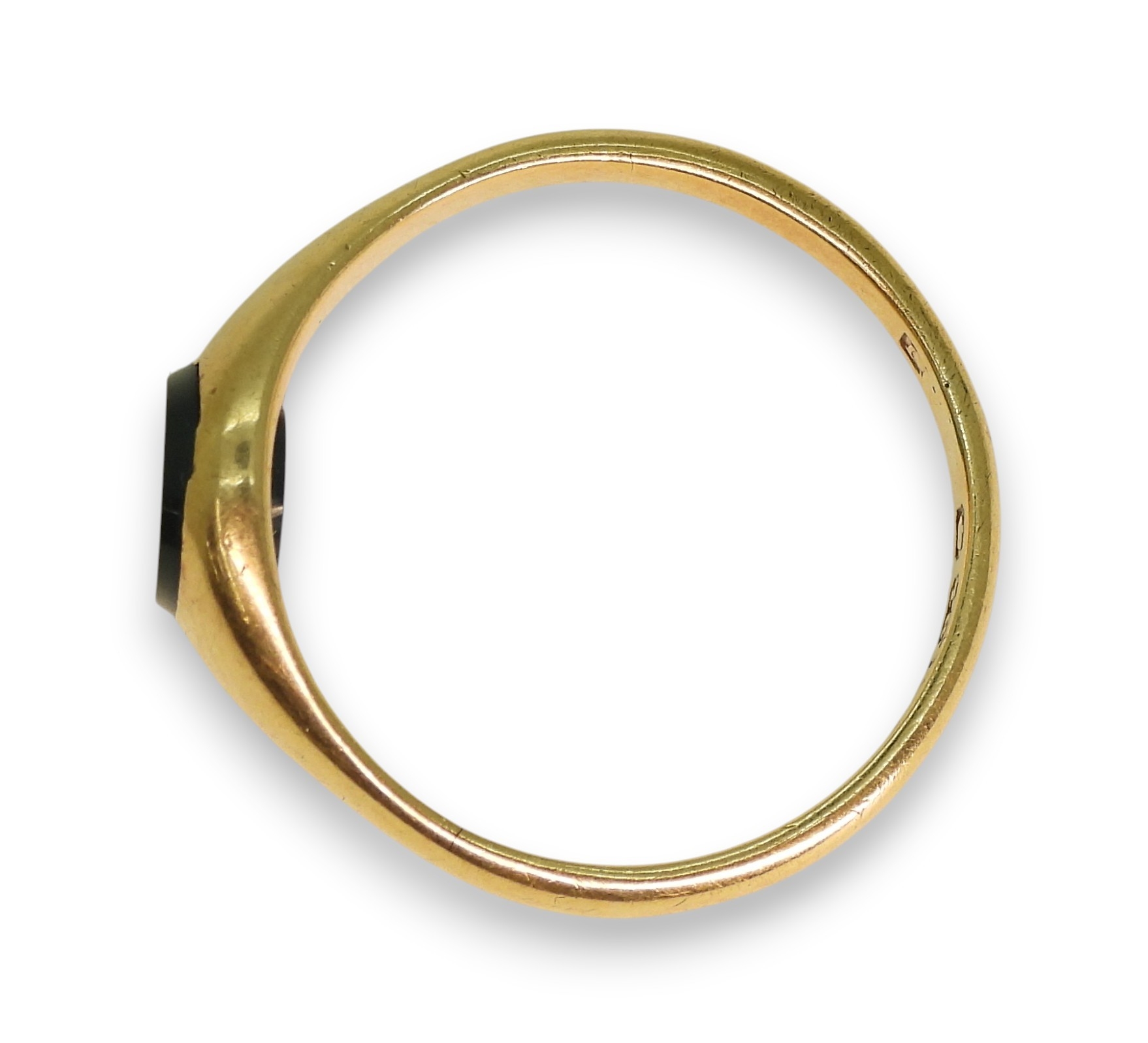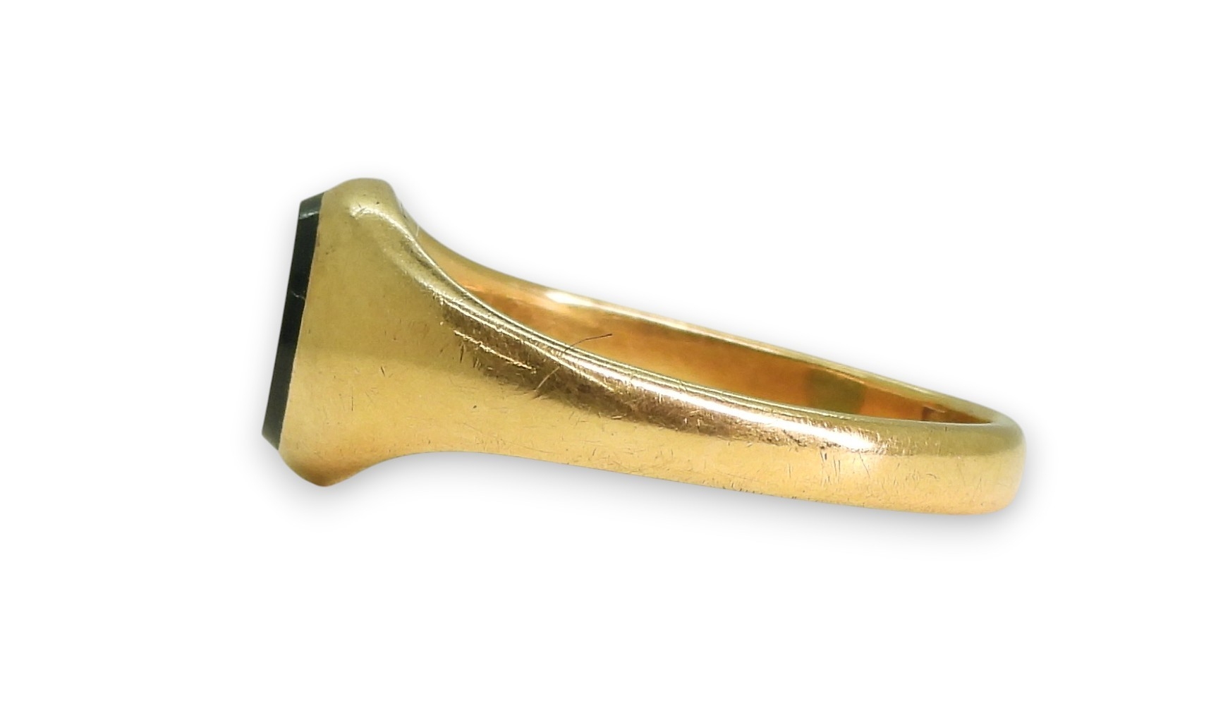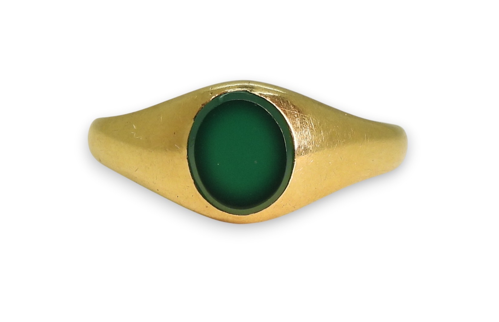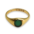An 18ct gold green agate signet ring, with Chester hallmarks for 1911, size P (approx), weight 4gms