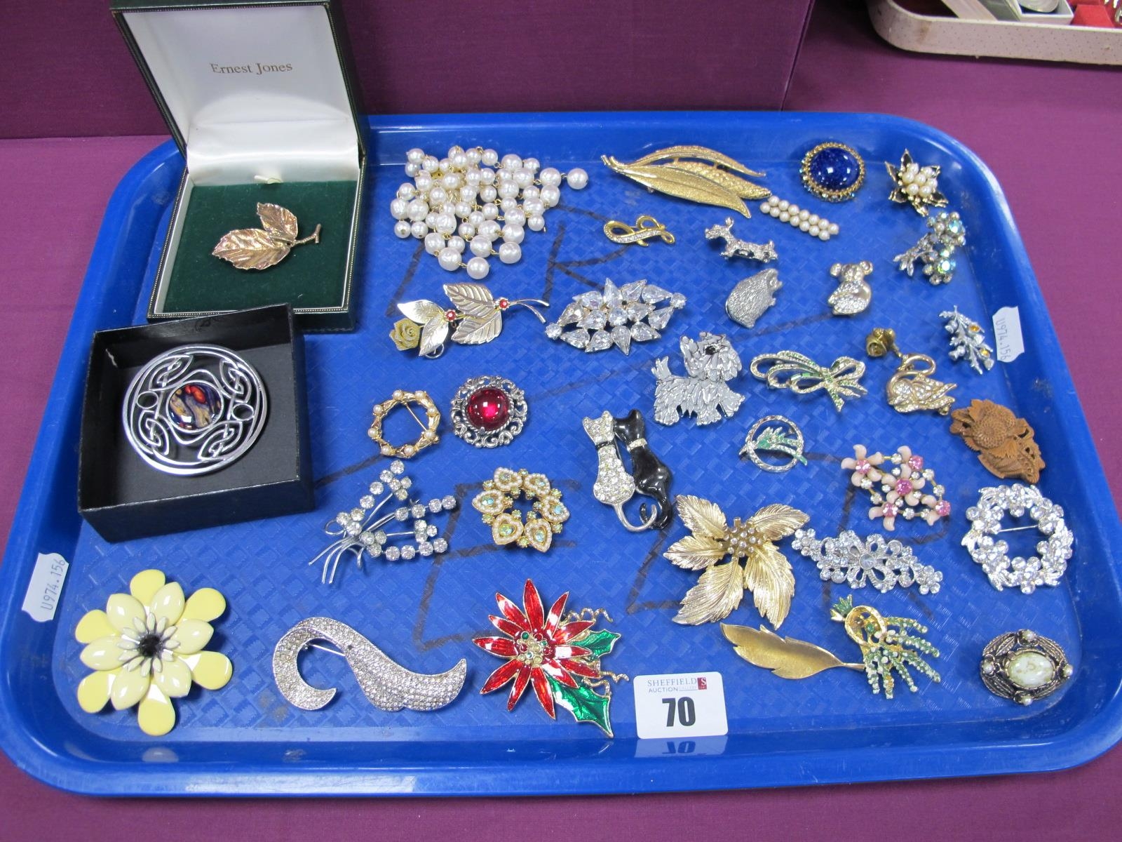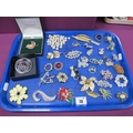 Assorted Costume Brooches, including Leo Askhim leaf brooch stamped "Askhim 925S"; Exquisite, Miracle, etc :- One Tray