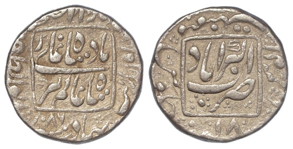 India, Mughal Empire silver Rupee of Alamgir Ibn Shah Jahan, AH 1086, yr. 18 (AD 1675) Akbarabad mint. 11.29g. AVF.