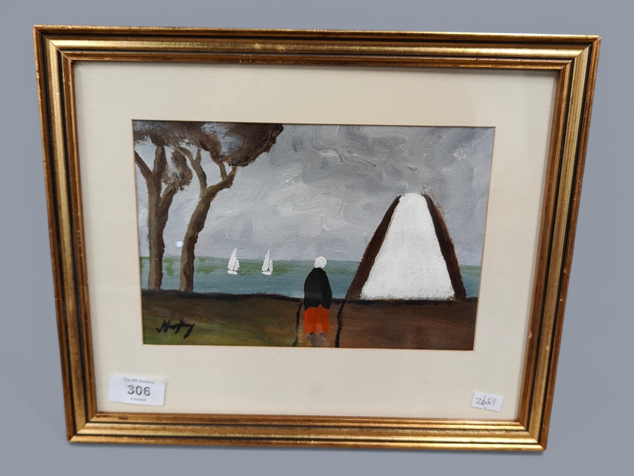 WATERCOLOUR MARKEY ROBINSON WOMEN WITH BOATS 23x15cm