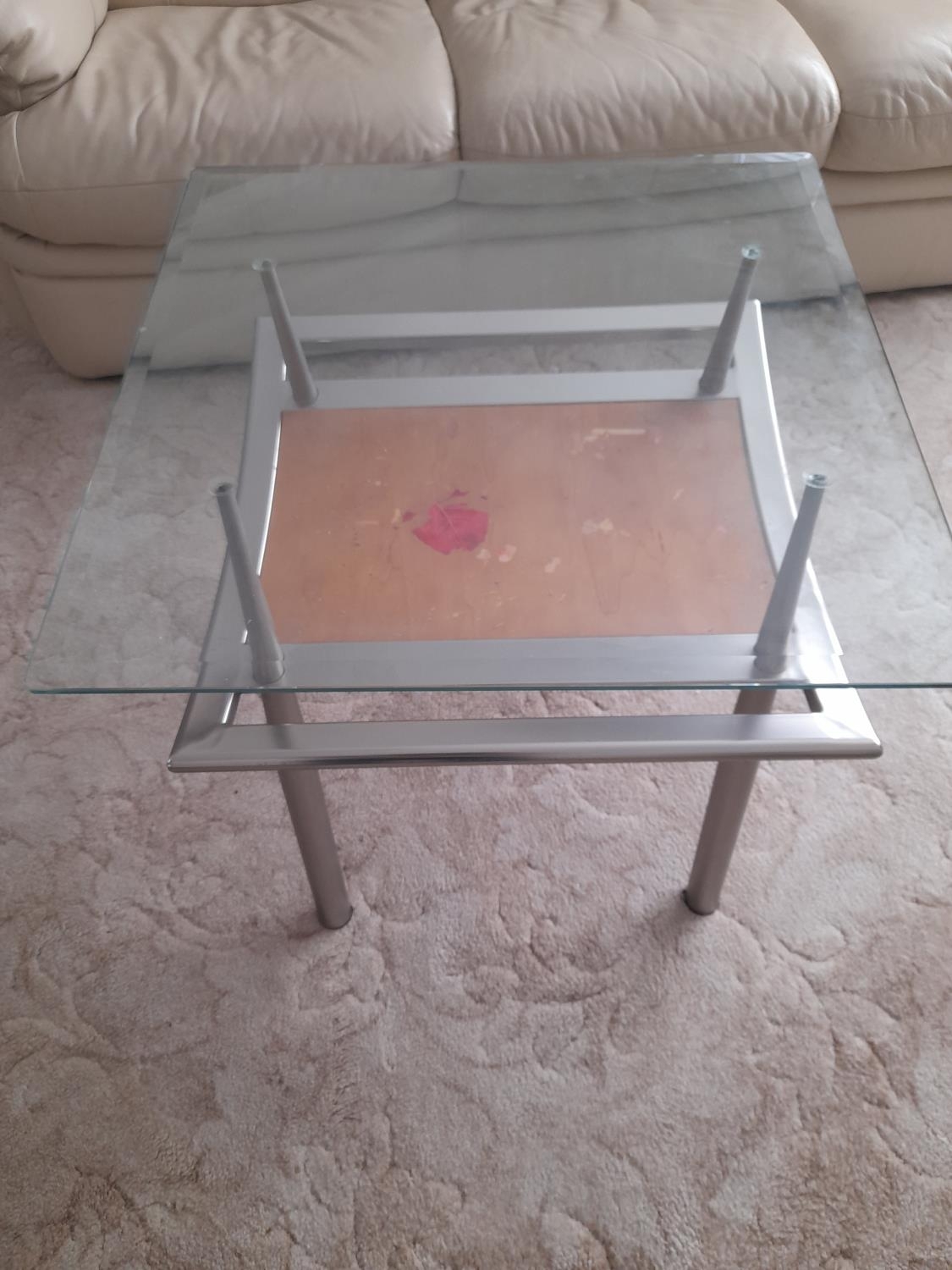 Matching Designer Glass Topped Side Table Wooden Insert Needs Tidying