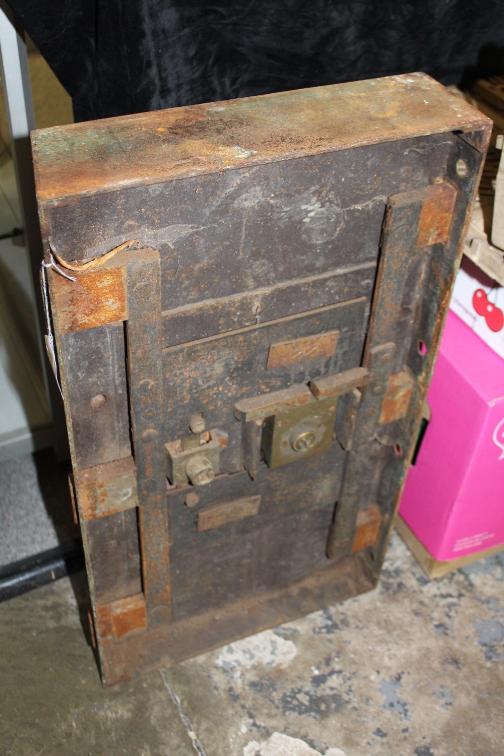 A LARGE VINTAGE METAL LOCK, H 58 cm, L 33 cm