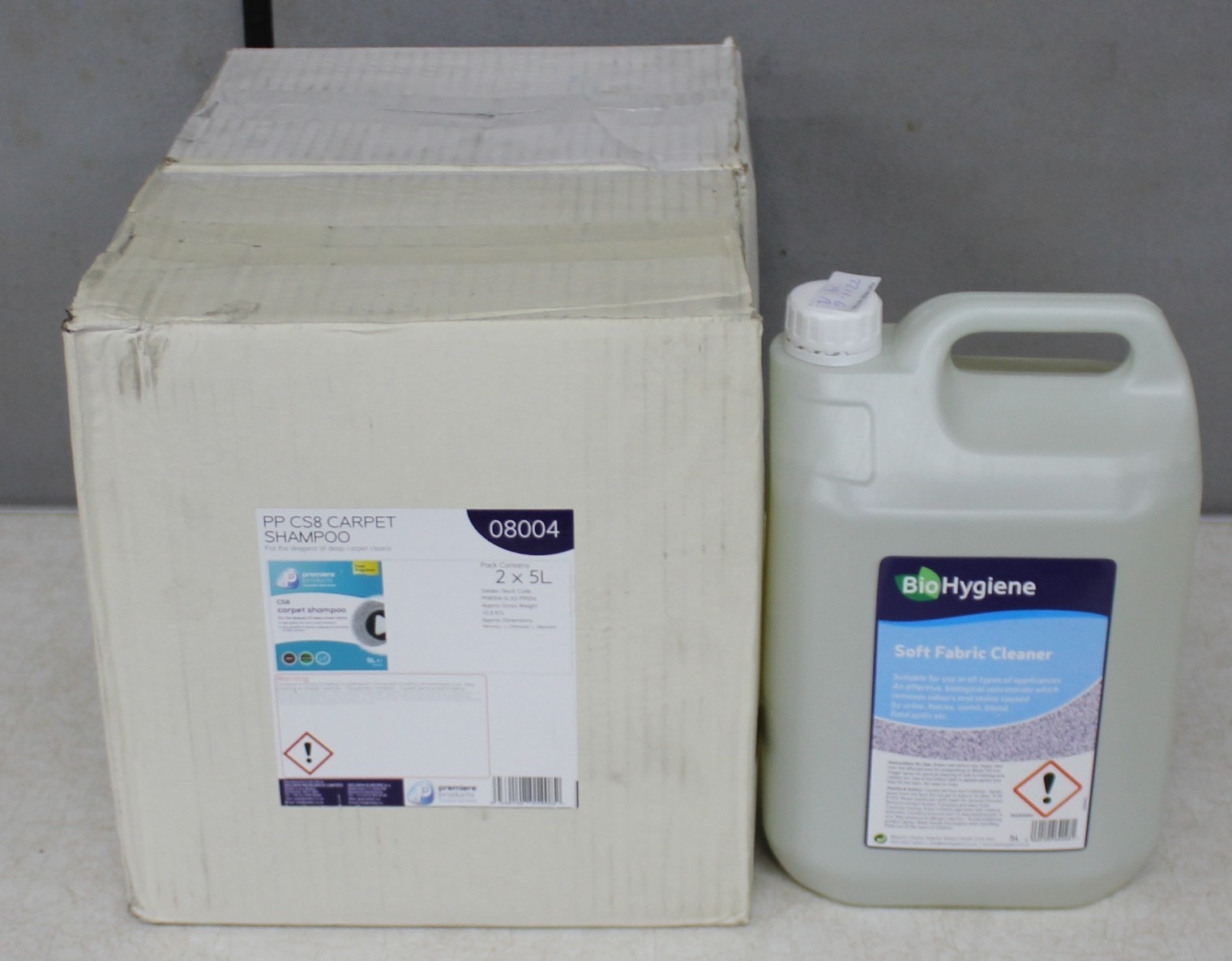 4 x 5L PREMIERE PRODUCTS PPCS8 CARPET SHAMPOO AND 5L BIO HYGIENE SOFT FABRIC CLEANER