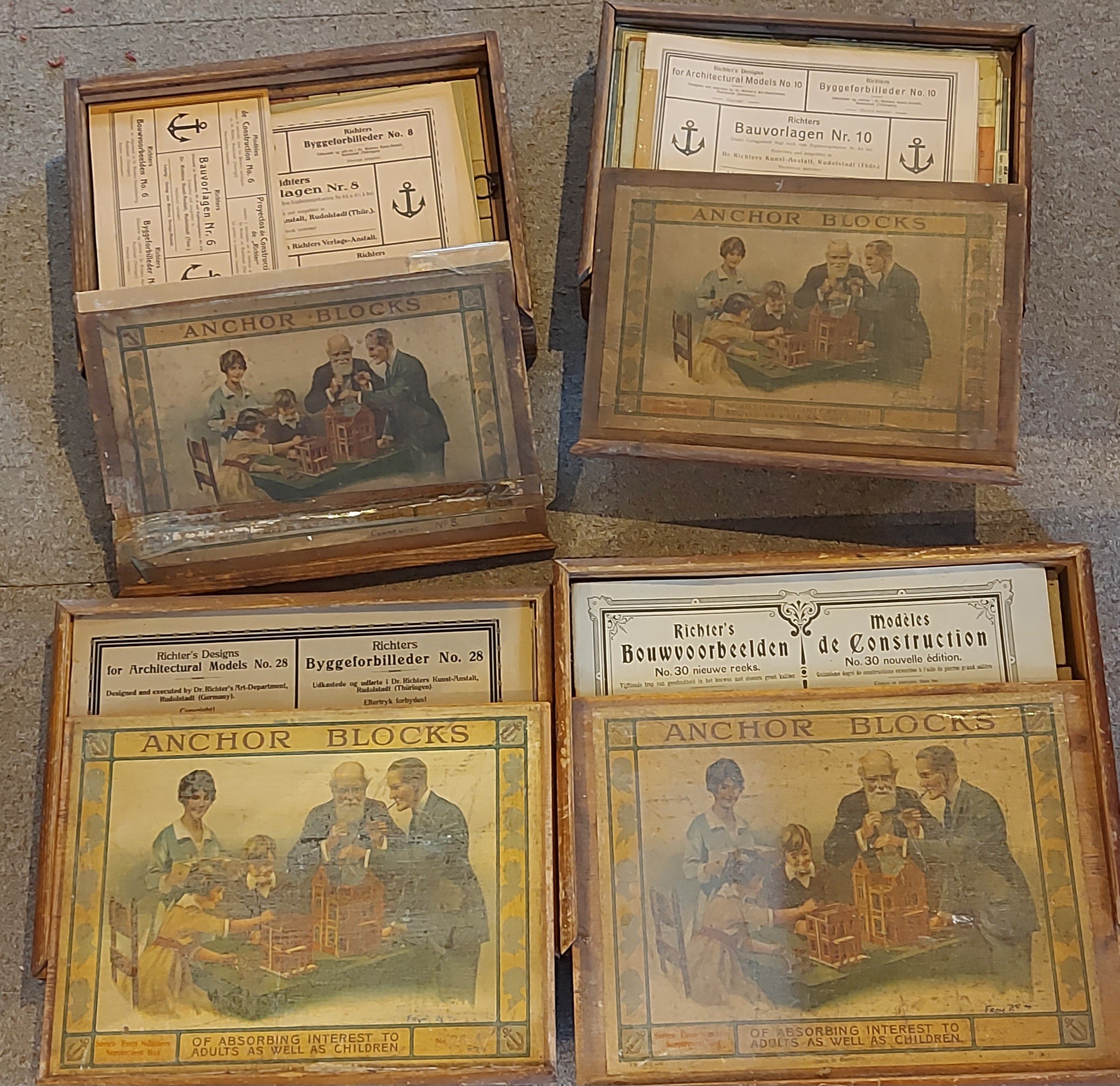 A collection of four Anchor Block sets by Richter and Co. in original boxes