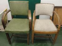 Late Victorian/Edwardian Bedroom Chair with cane seat, Art Nouveau top rail on turned front supports & Oak Rope Seated Side Chair on square tapering supports, twin splat back (2)