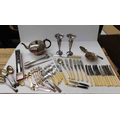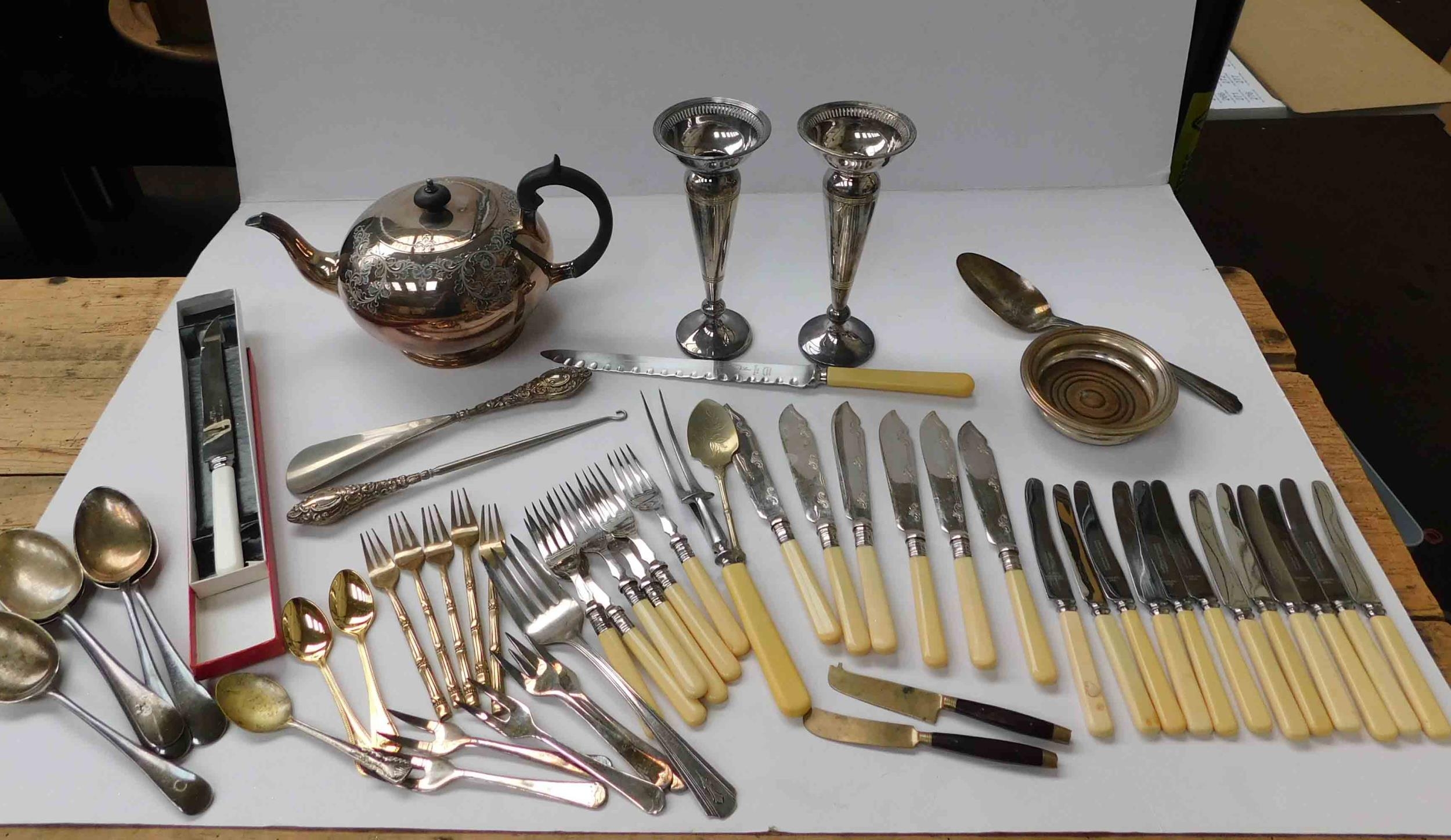 Silver plate items including - silver handled button hook, shoe horn & cutlery sets