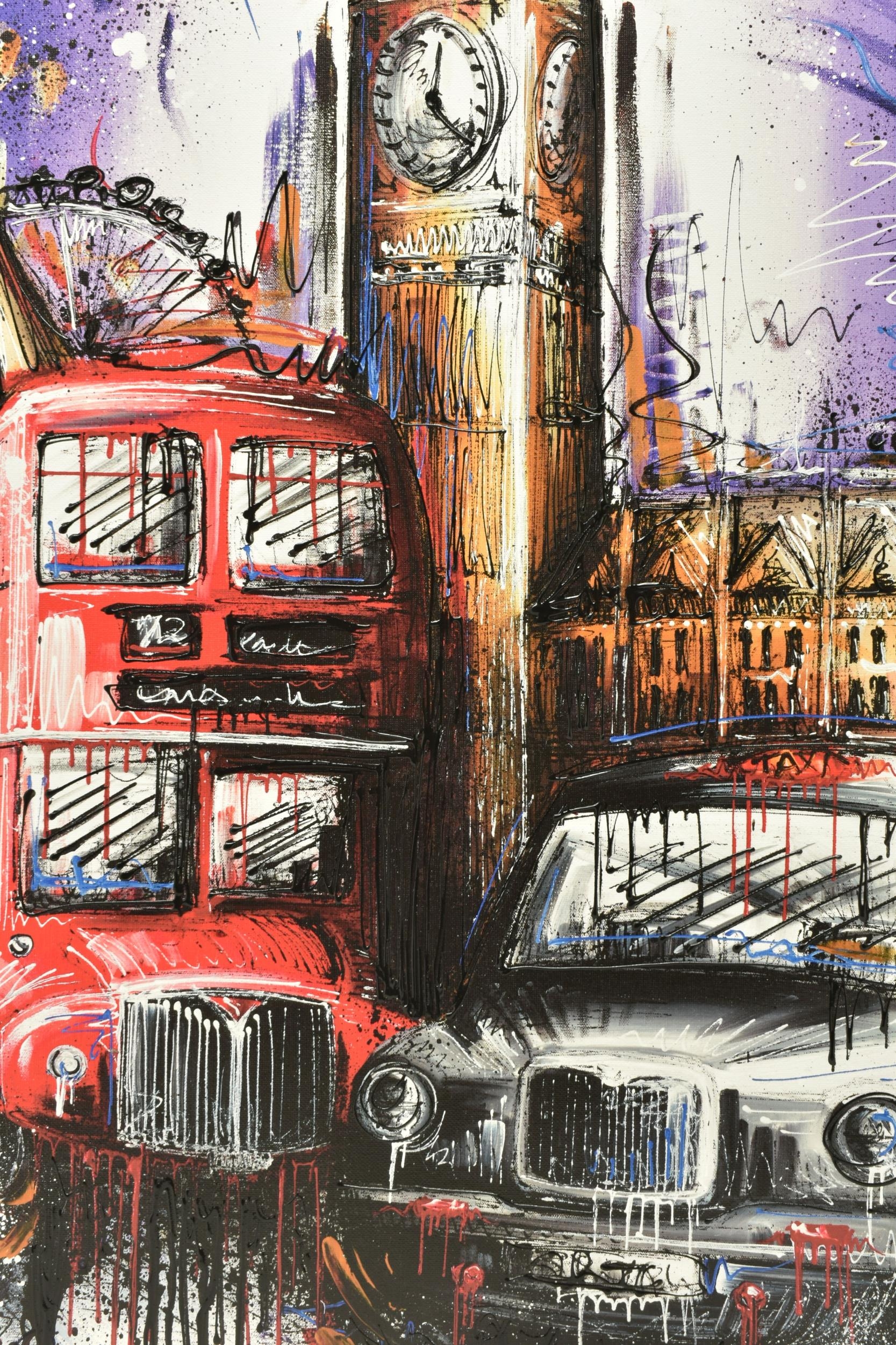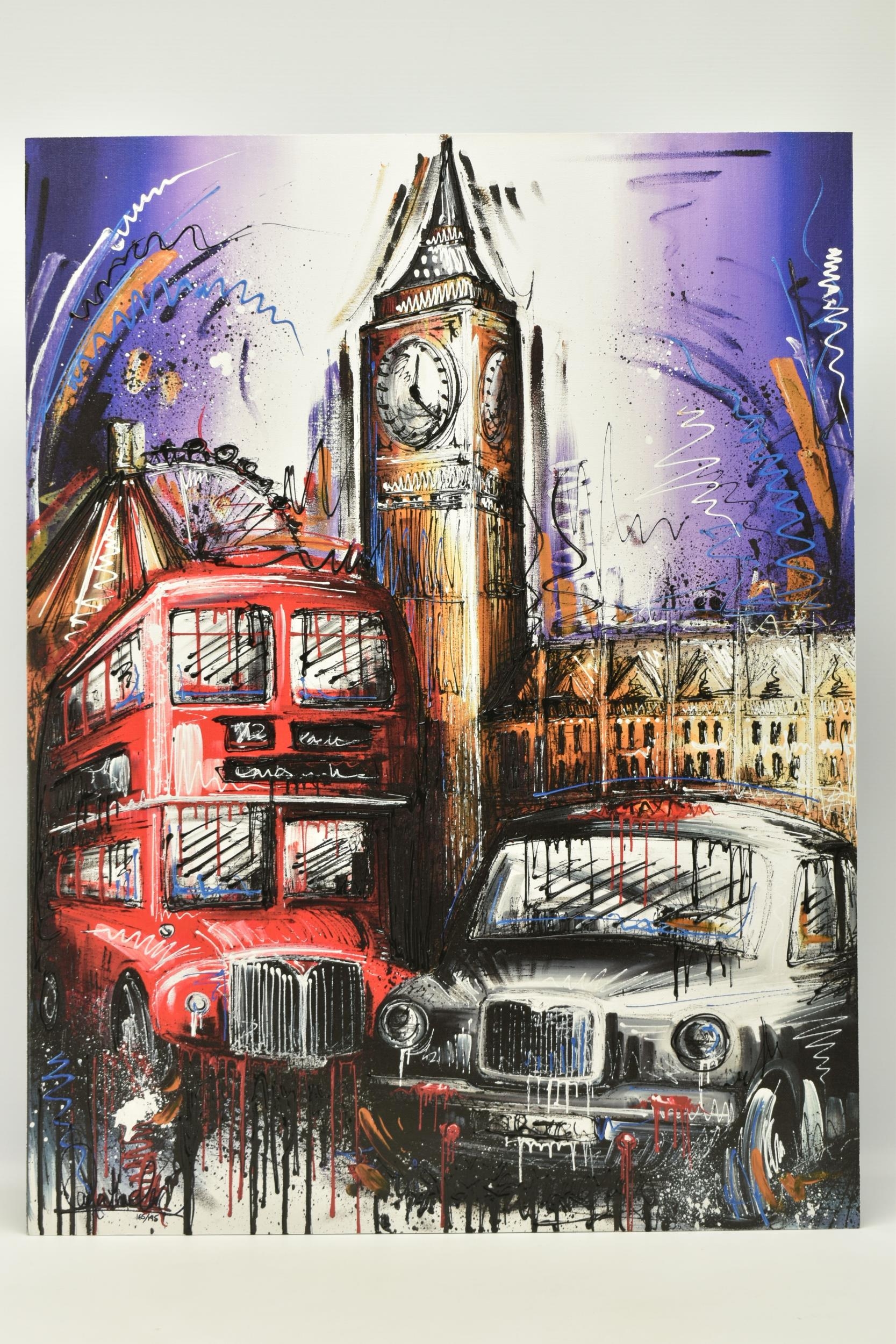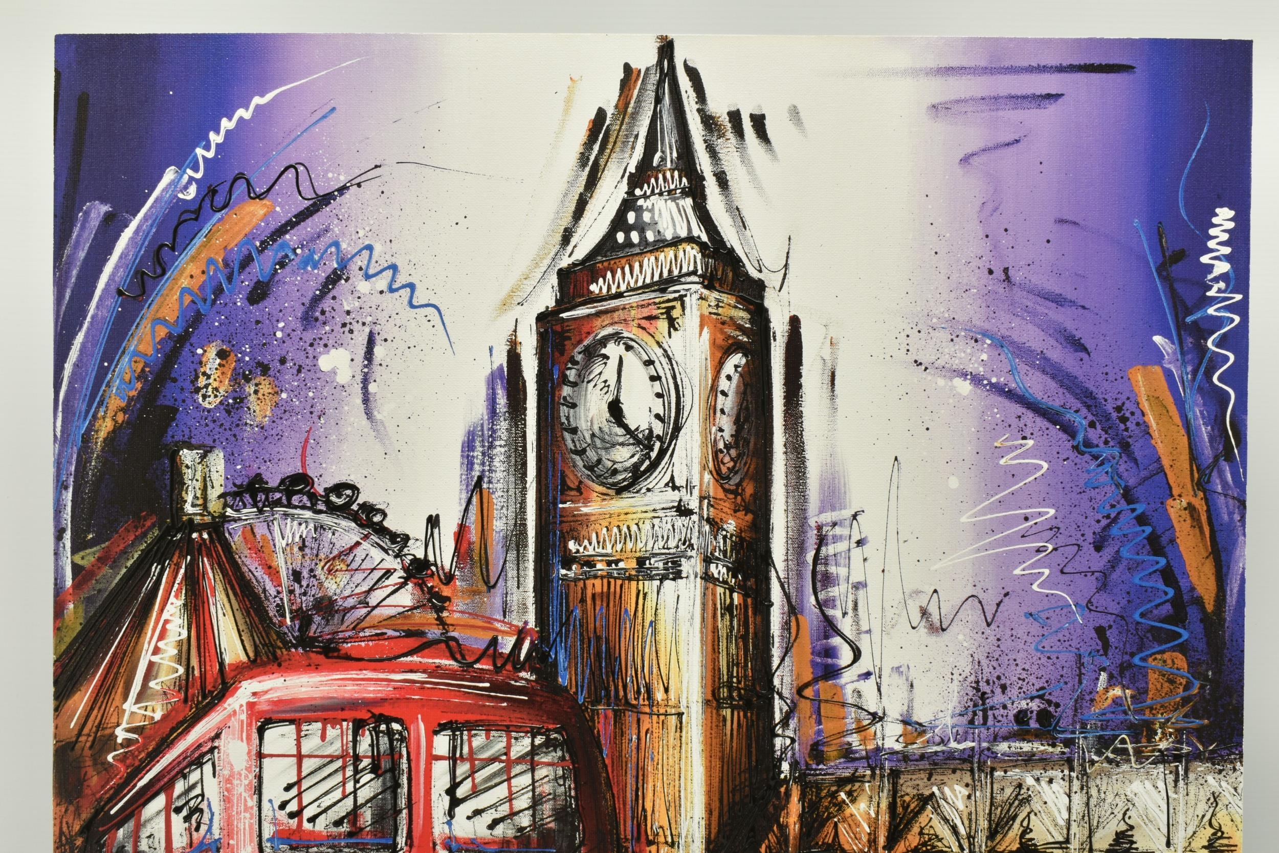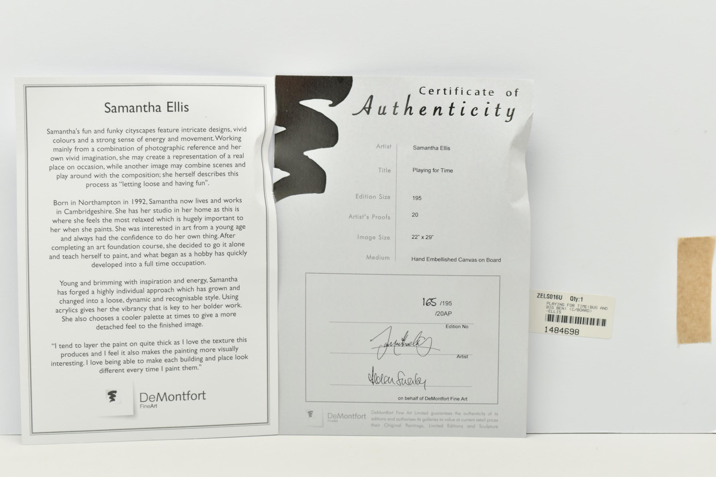 SAMANTHA ELLIS (BRITISH 1992) 'PLAYING FOR TIME', a signed limited edition print depicting London icons, 165/195 with certificate, approximate unframed size 74cm x 56cm, Condition Report: Good condition (artist resale rights apply)