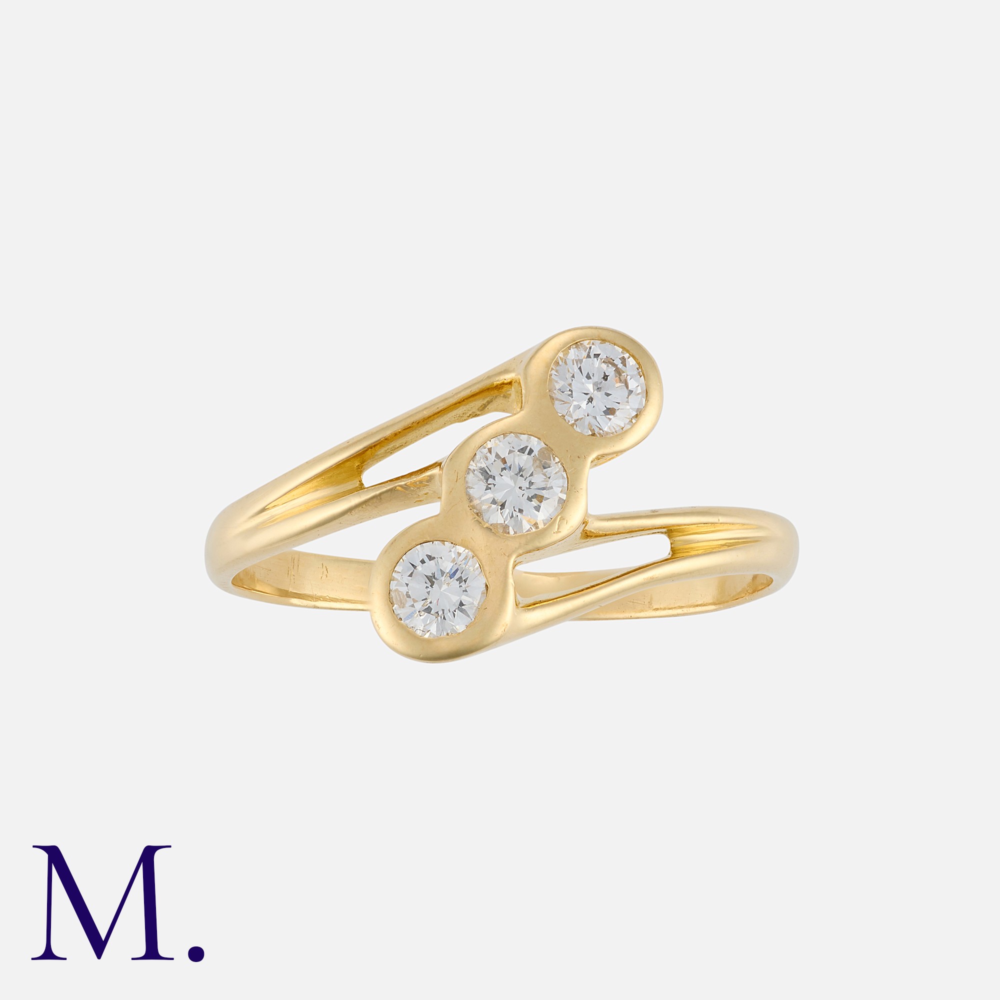 A Diamond 3-Stone Ring in yellow and white gold, set with three round brilliant diamonds weighing approx. 0.80ct in total. Unmarked; tests indicate 18ct gold.