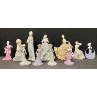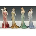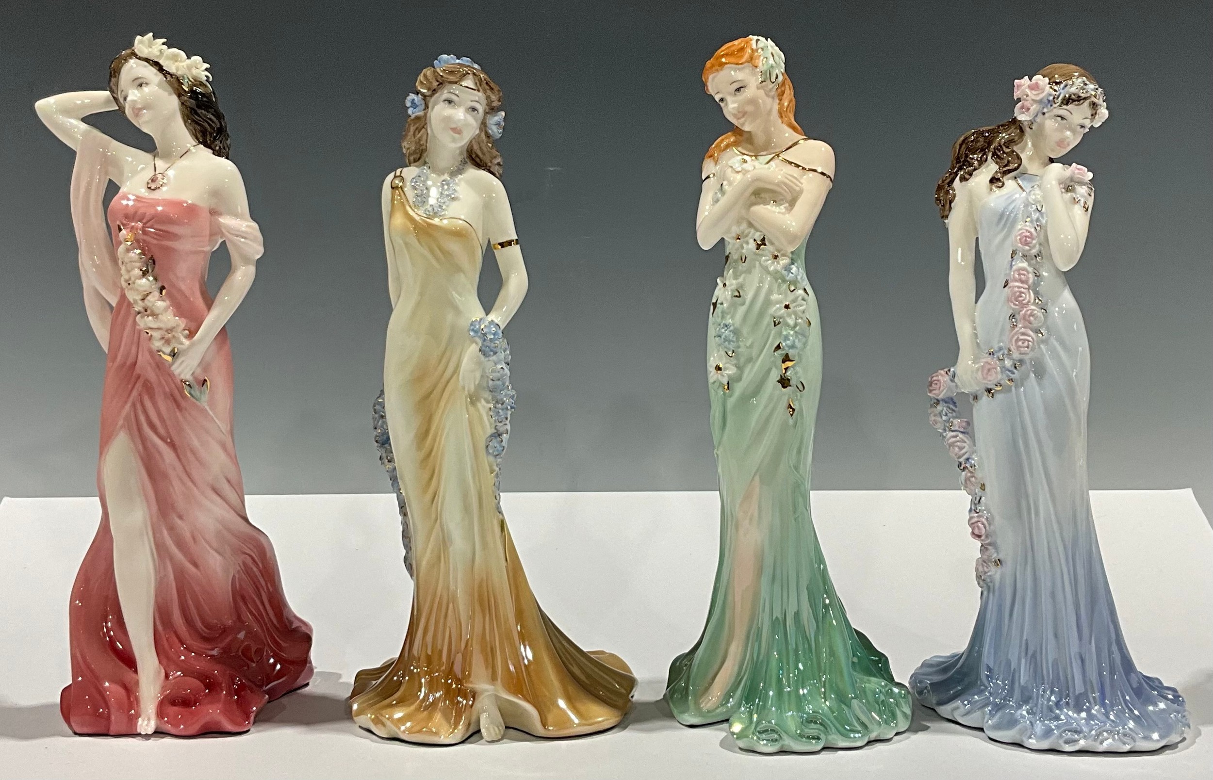 A Coalport figure, Sapphire, for Compton & Woodhouse, limited edition 3,519/9,500; others, Topaz, limited edition 1,585/9,500; Ruby, limited edition 2,552/9,500; Emerald, limited edition 2,552/9,500 (4)