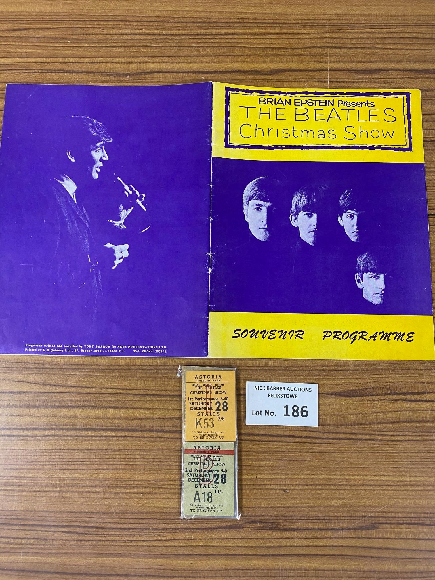 Records : Beatles Christmas Show @ Astoria London programme, along with 2 ticket stubs, 1st and 2nd performance 28.12.1963, good conditions.