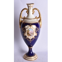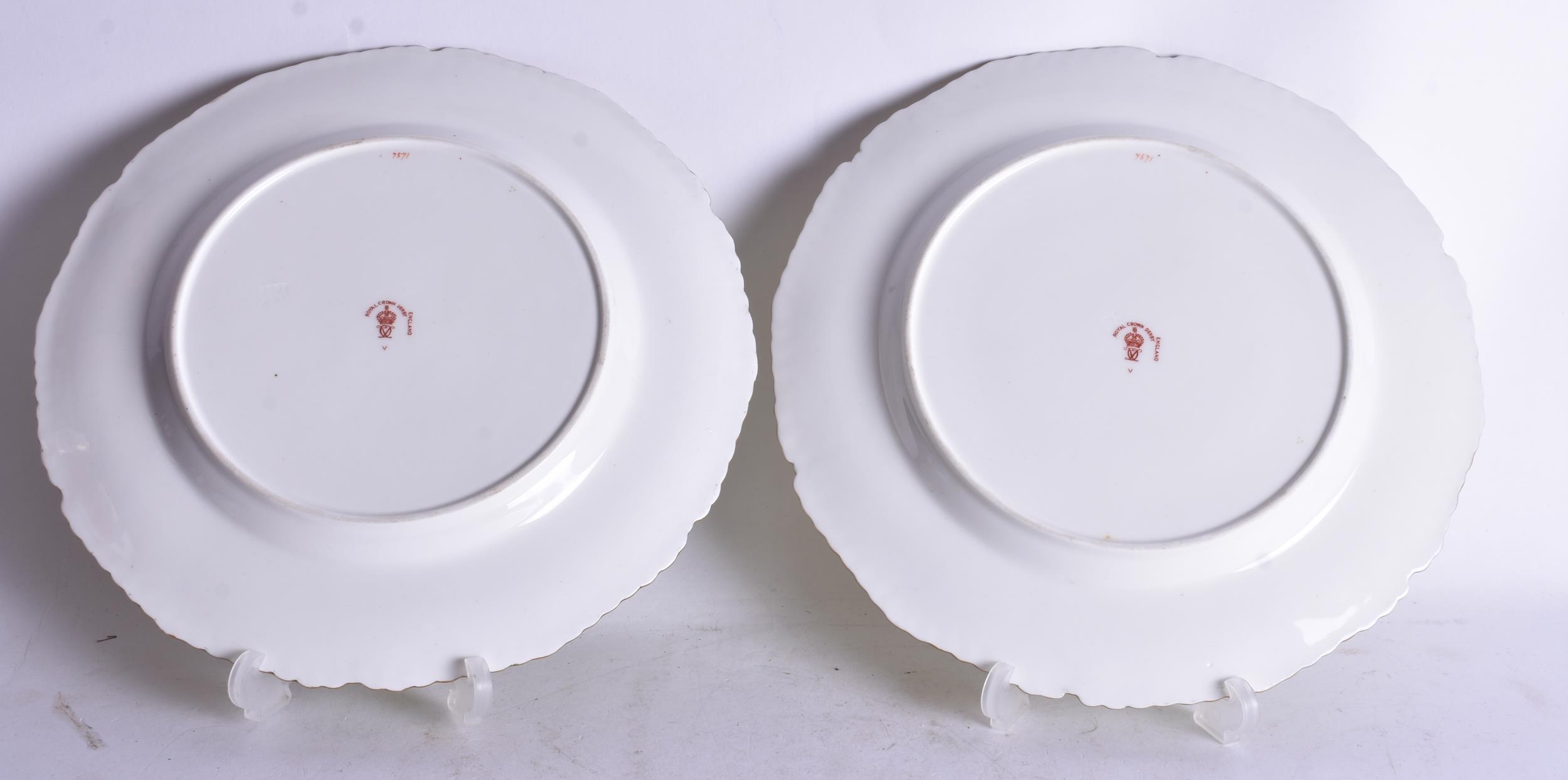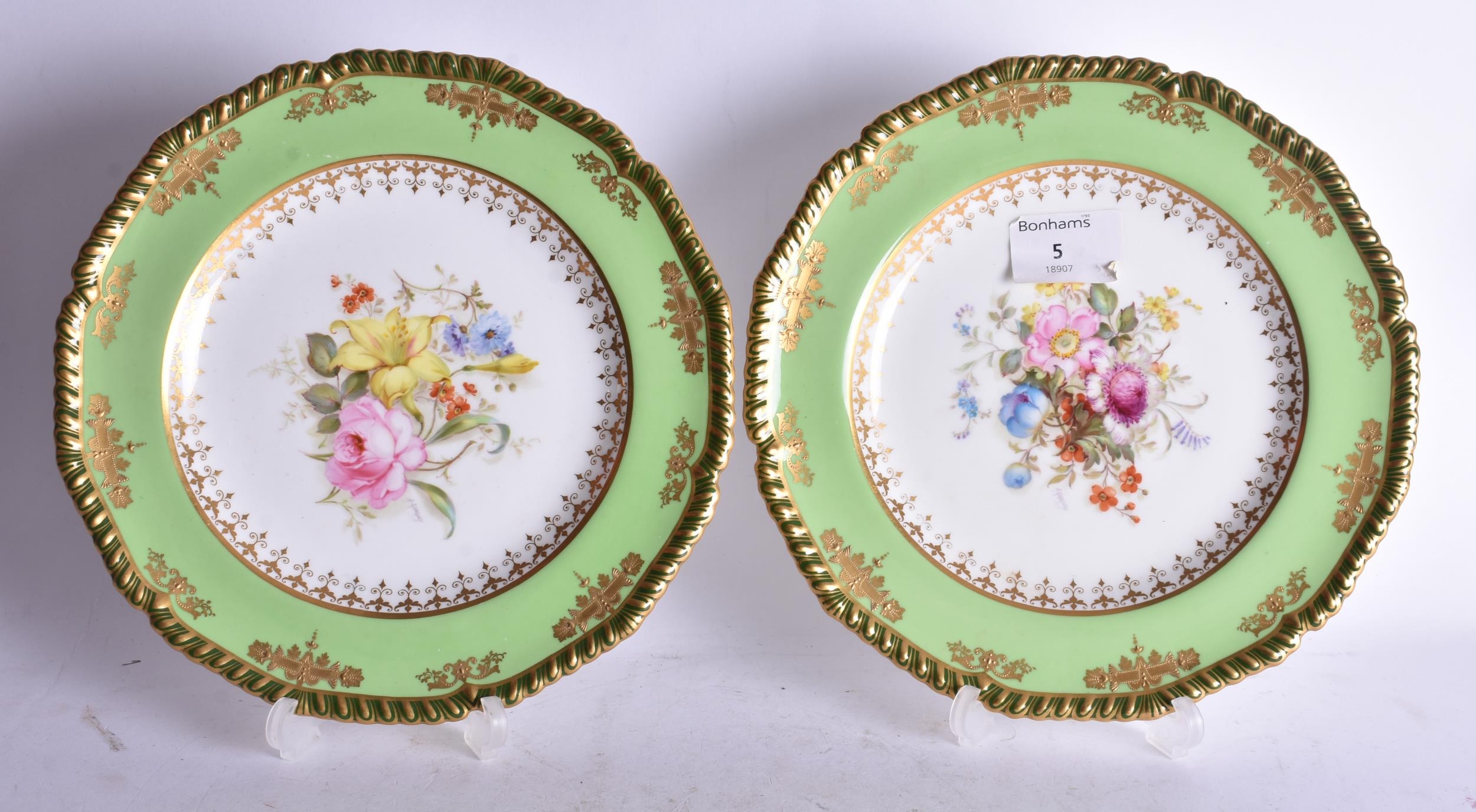 Royal Crown Derby pair of plates painted with two tone green borders, the centre finely painted by Master Painter Albert Gregory, both signed, date code 1904 22.5cm diameter (pr)