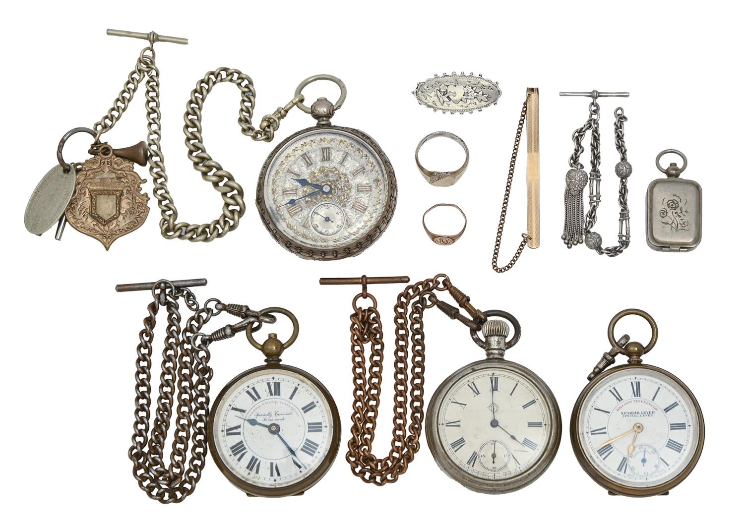 Two silver lever watches, late 19th c, two other contemporary watches and miscellaneous other articles
