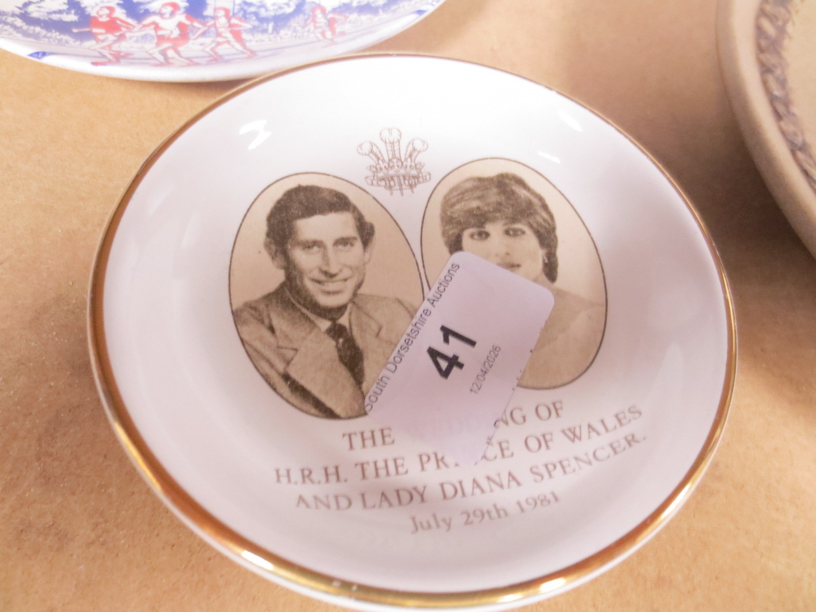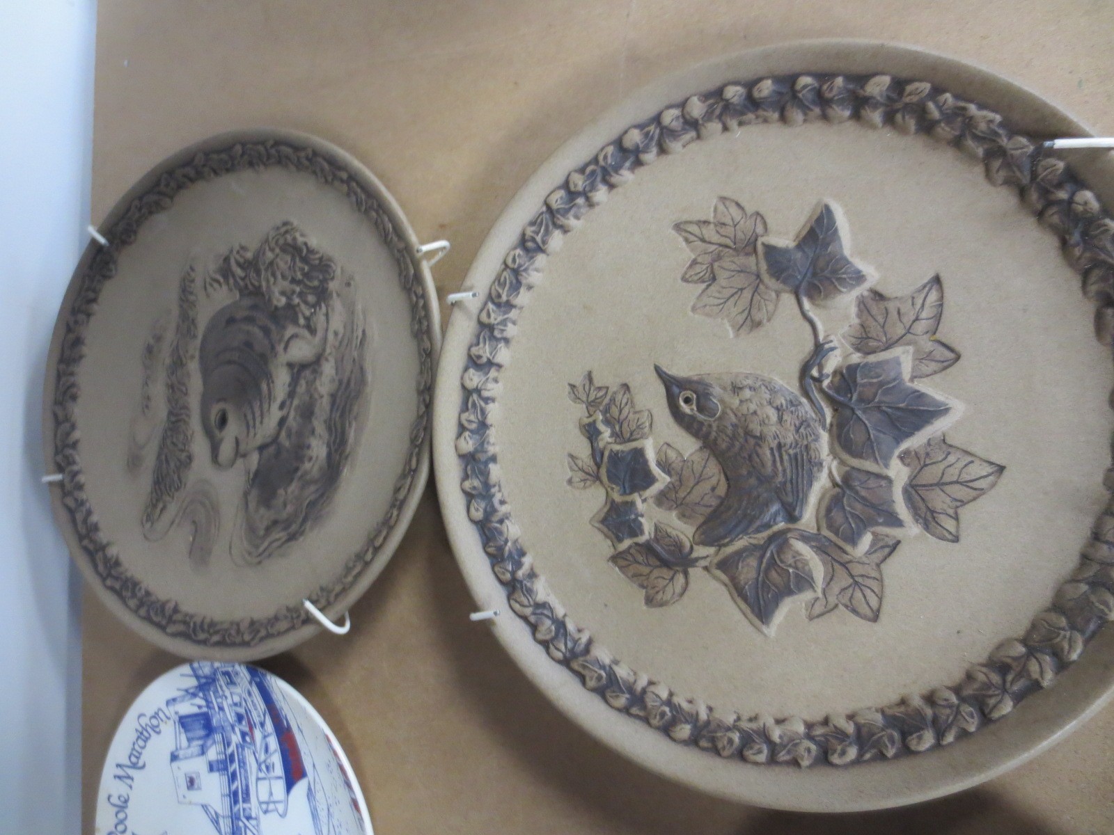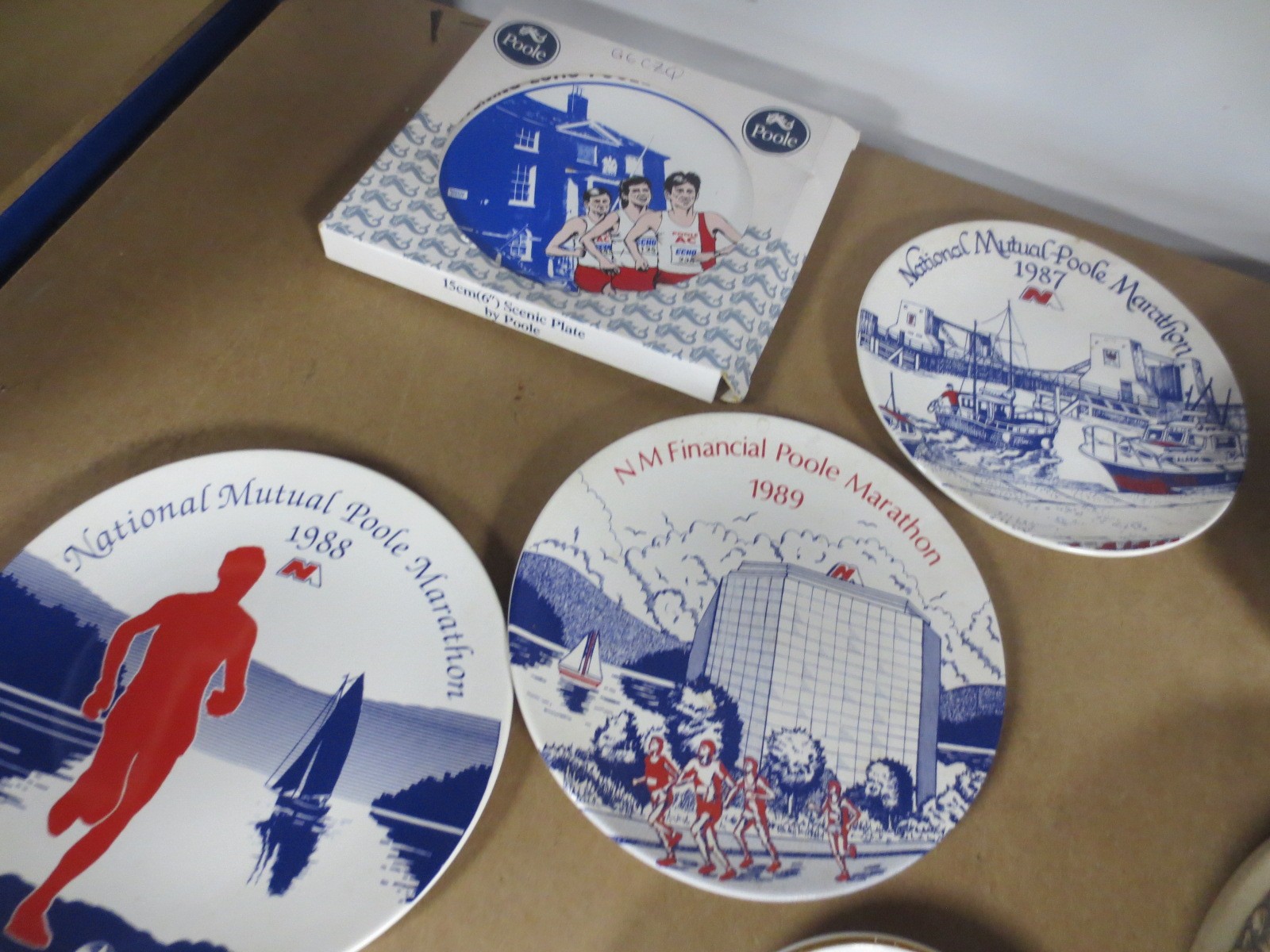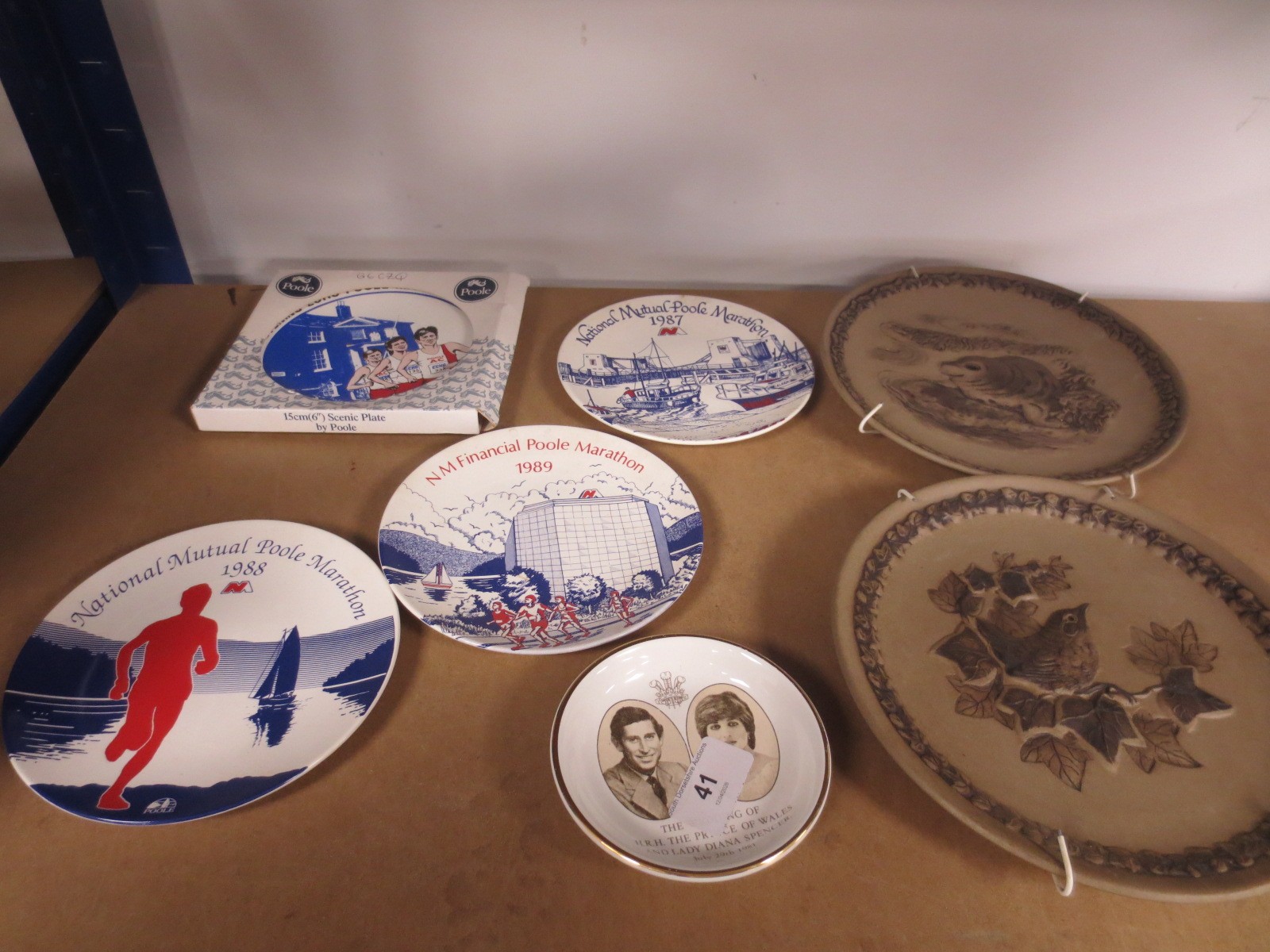 Four Poole Pottery Marathon plates ,Two Barbera Linley Adams Wildlife plates and a Charles and Diana pin dish .