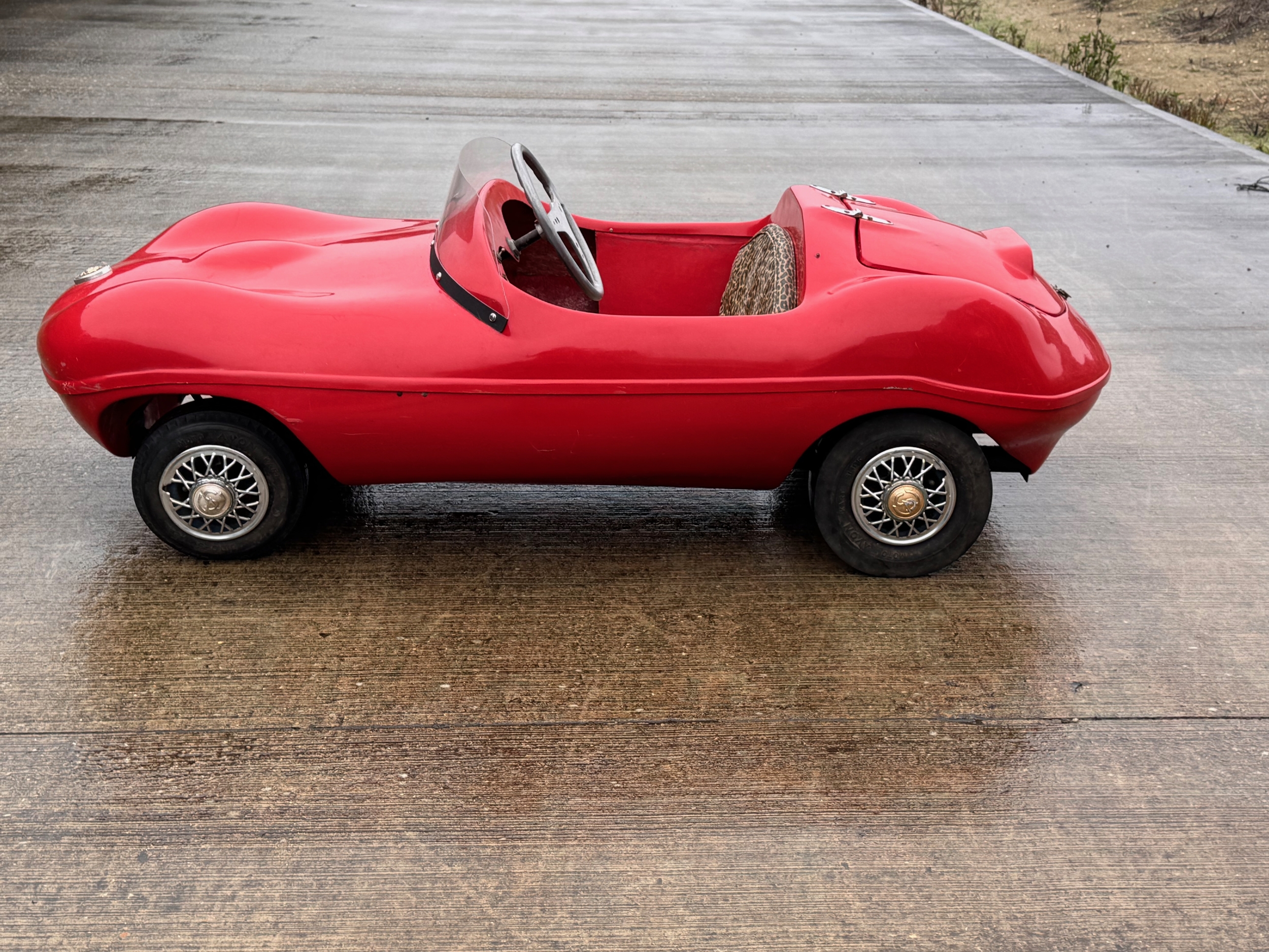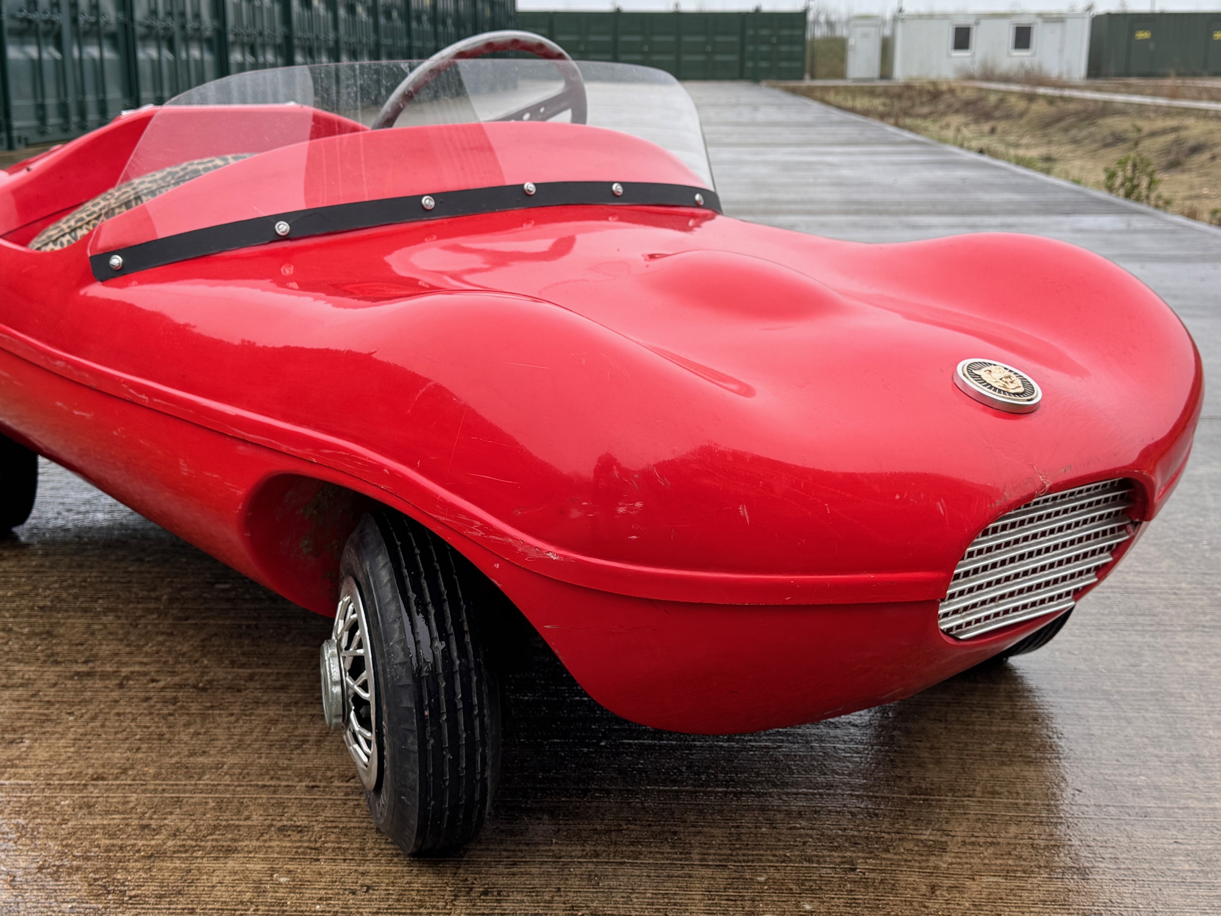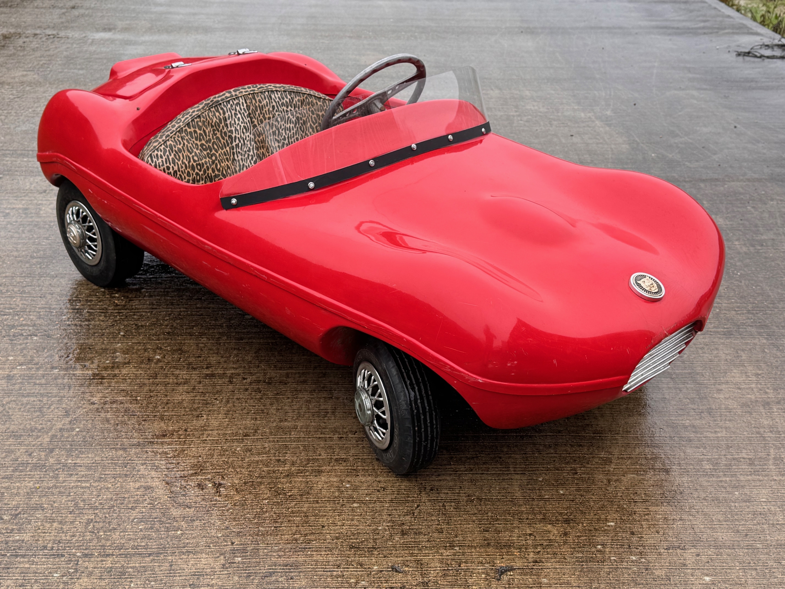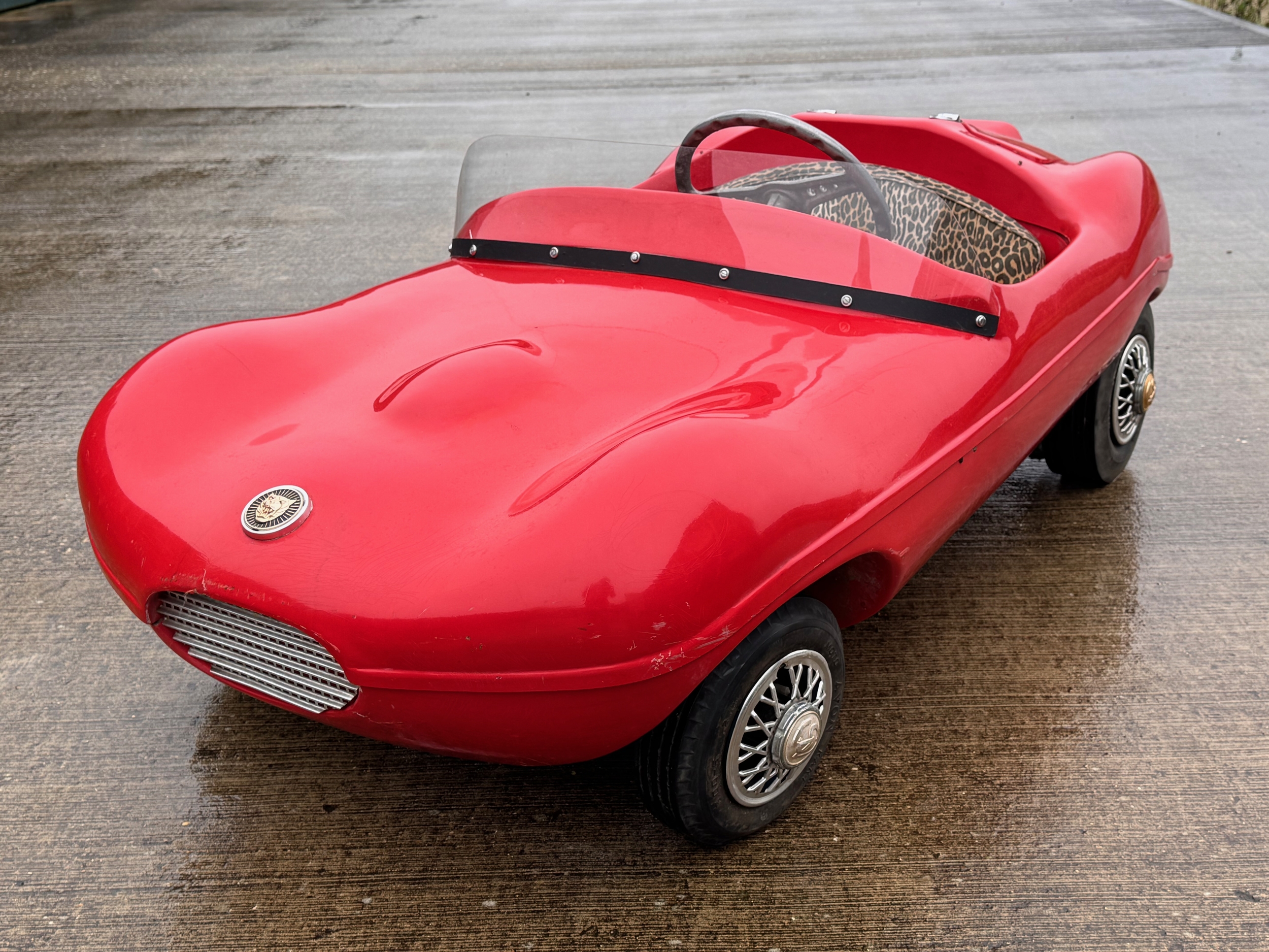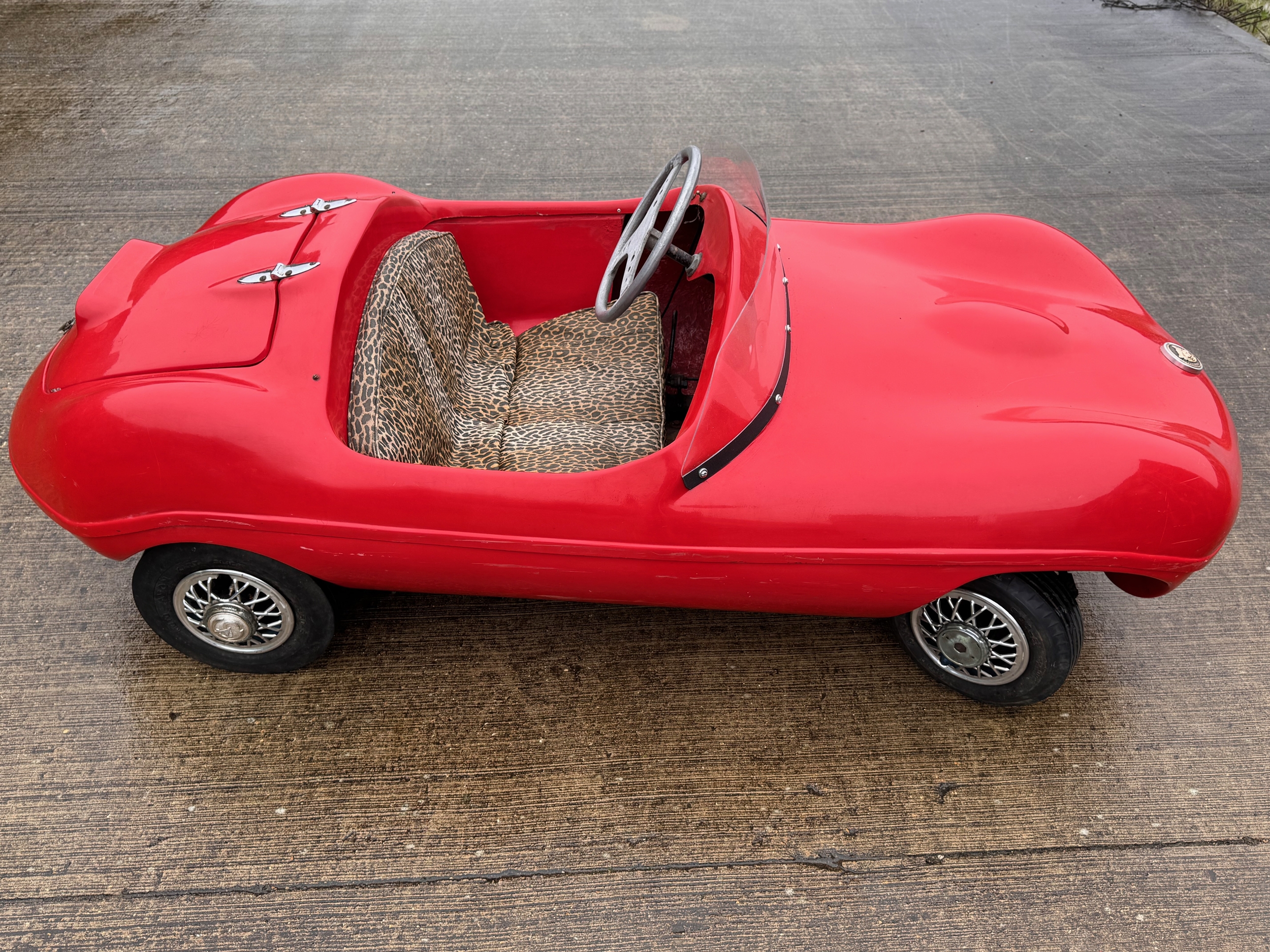 Automobilia, racing car, toy car, pedal car, a Jaguar XKSS ride in petrol engined Cheetah Cub from 1967. Made by the Watsonian sidecar company and marketed via selected Jaguar dealerships. This is an original unrestored example and retains its original Villiers 175cc 4 stroke engine.