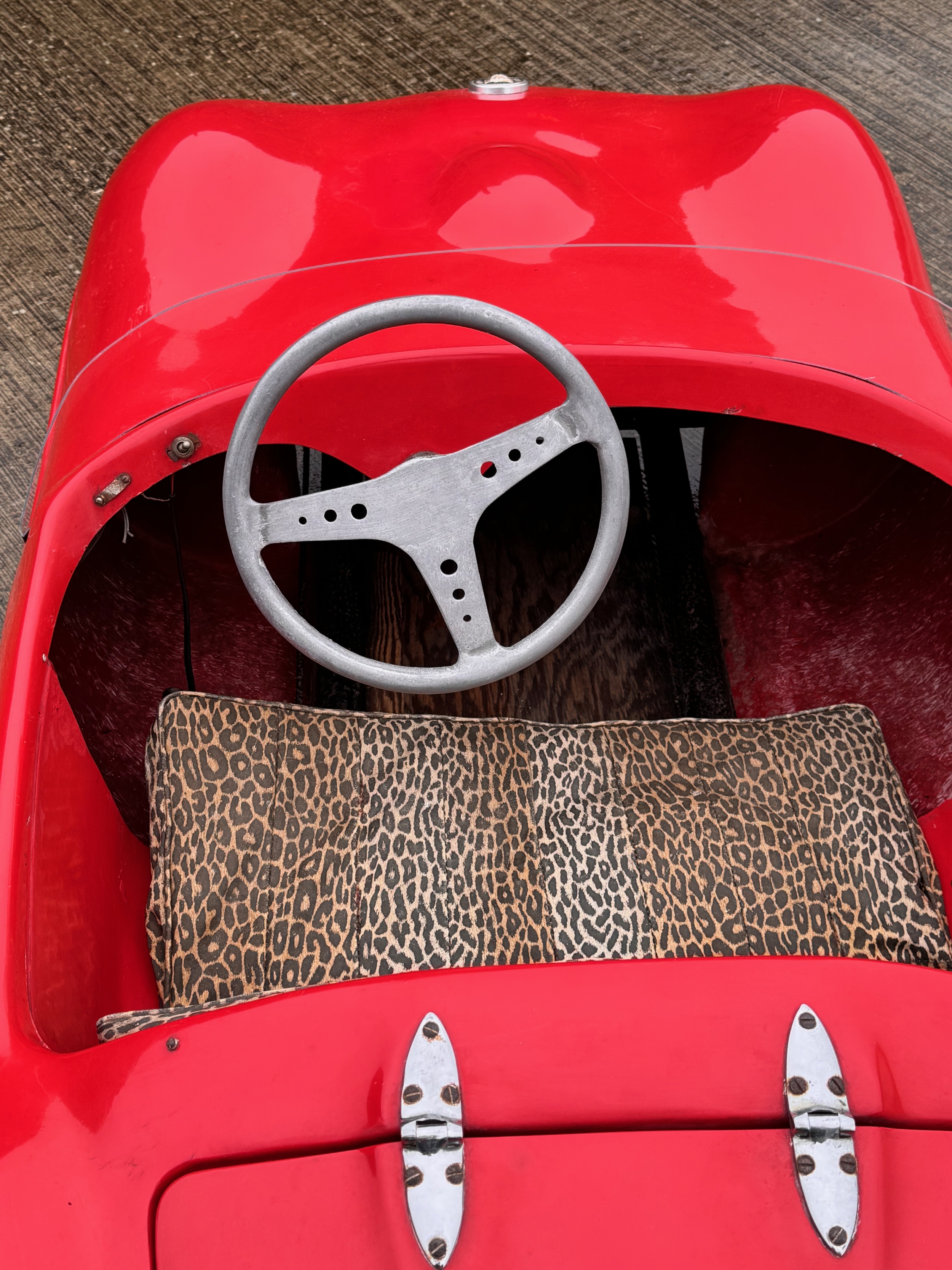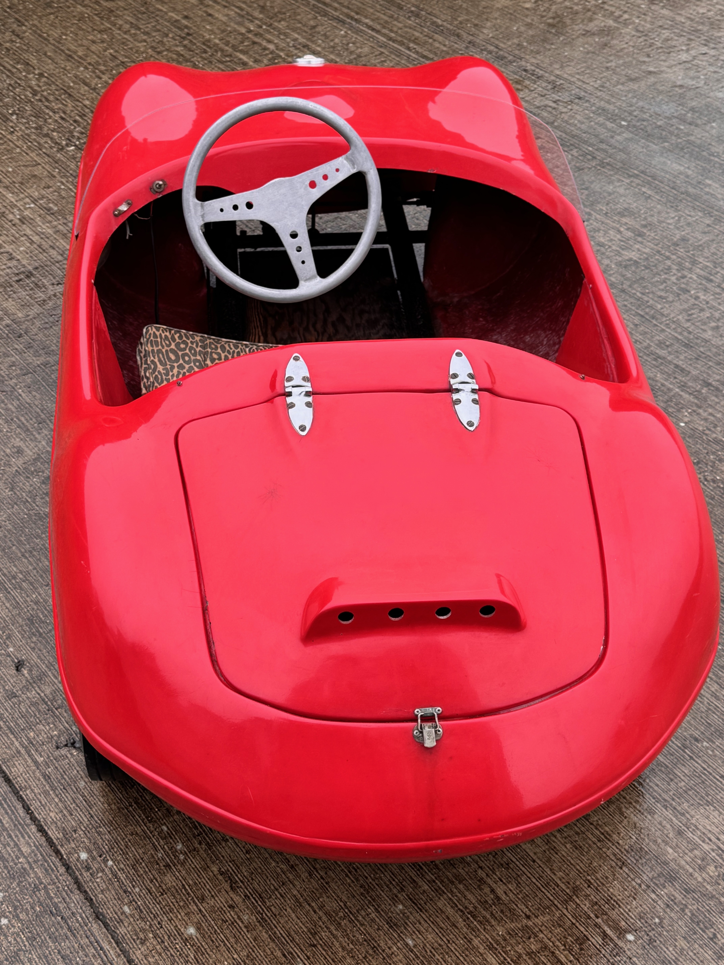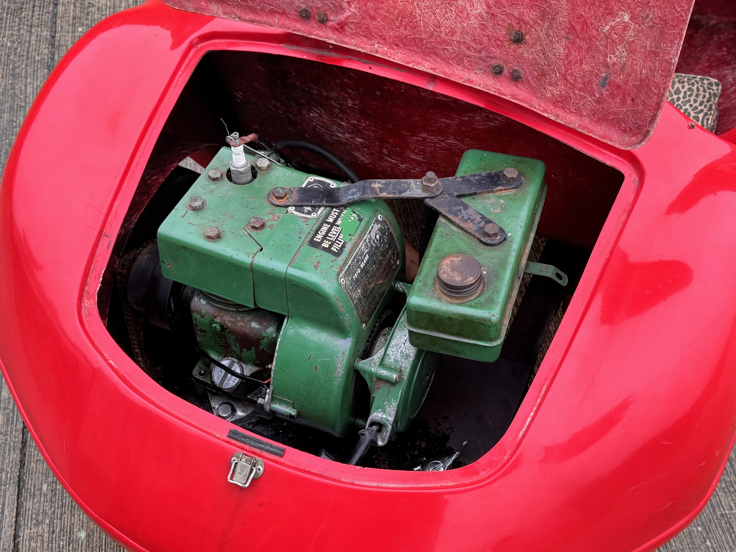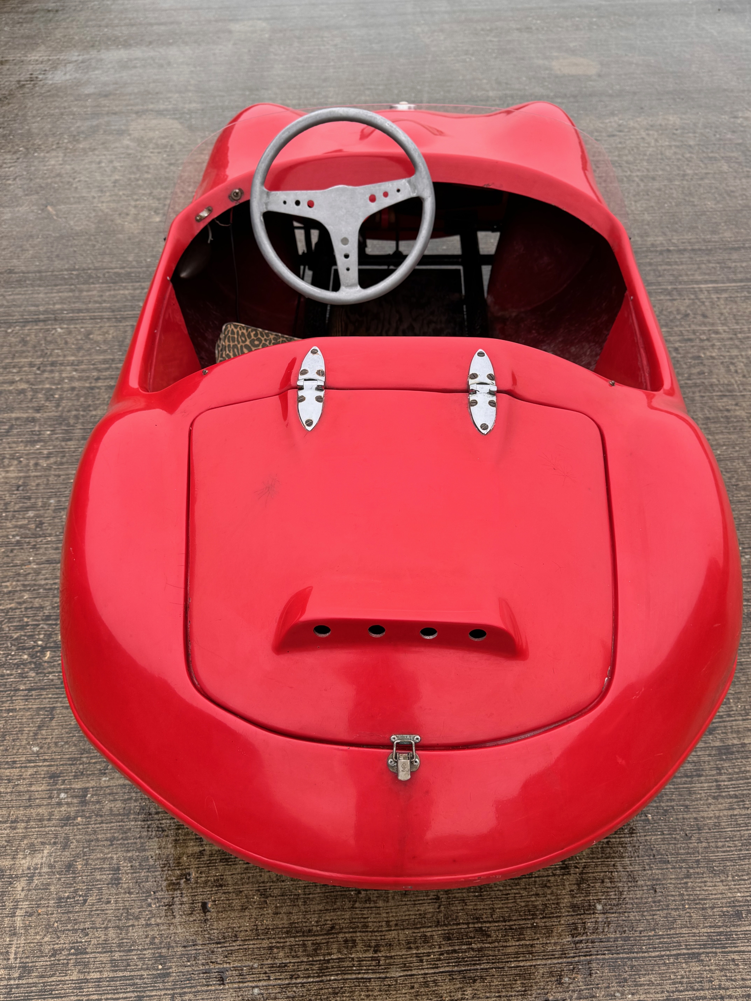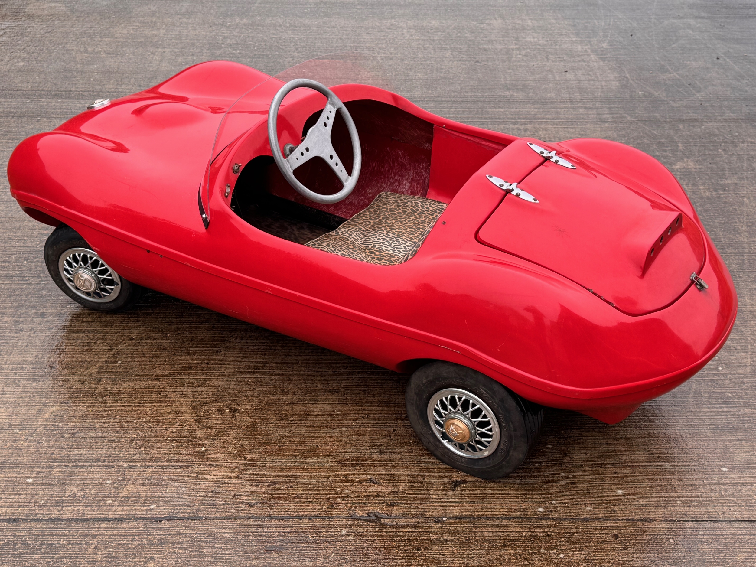 Automobilia, racing car, toy car, pedal car, a Jaguar XKSS ride in petrol engined Cheetah Cub from 1967. Made by the Watsonian sidecar company and marketed via selected Jaguar dealerships. This is an original unrestored example and retains its original Villiers 175cc 4 stroke engine.