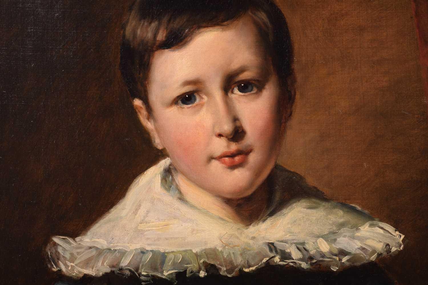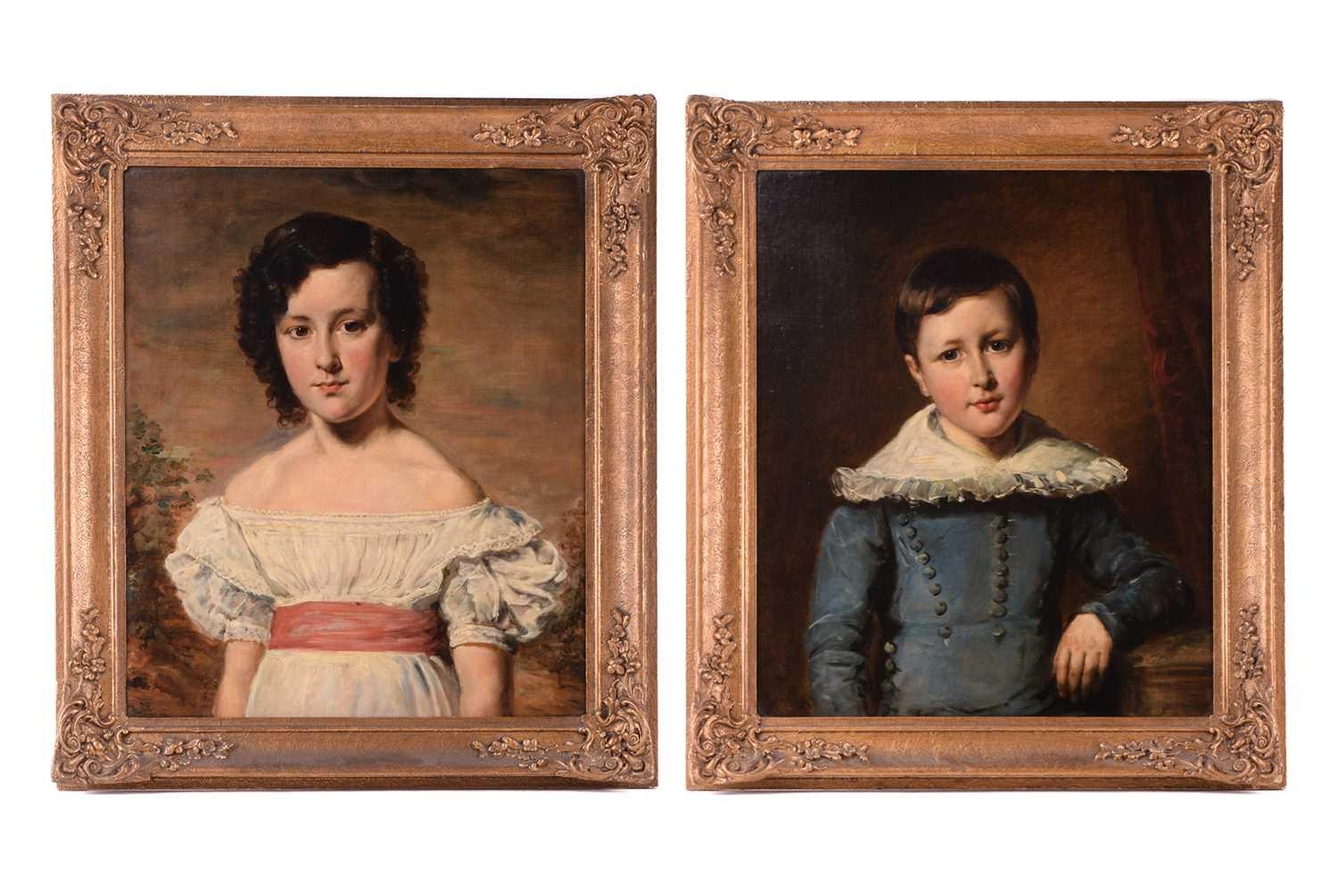 19th-Century British School, portraits of Philip Cadby (1820 - 1909) and Sarah Cadby (1816 -1874) as children (a pair), unsigned, oil on canvas, biographical details of the sitters verso, 61 x 50.5 cm, framed 75 x 65 cm Qty: (2)