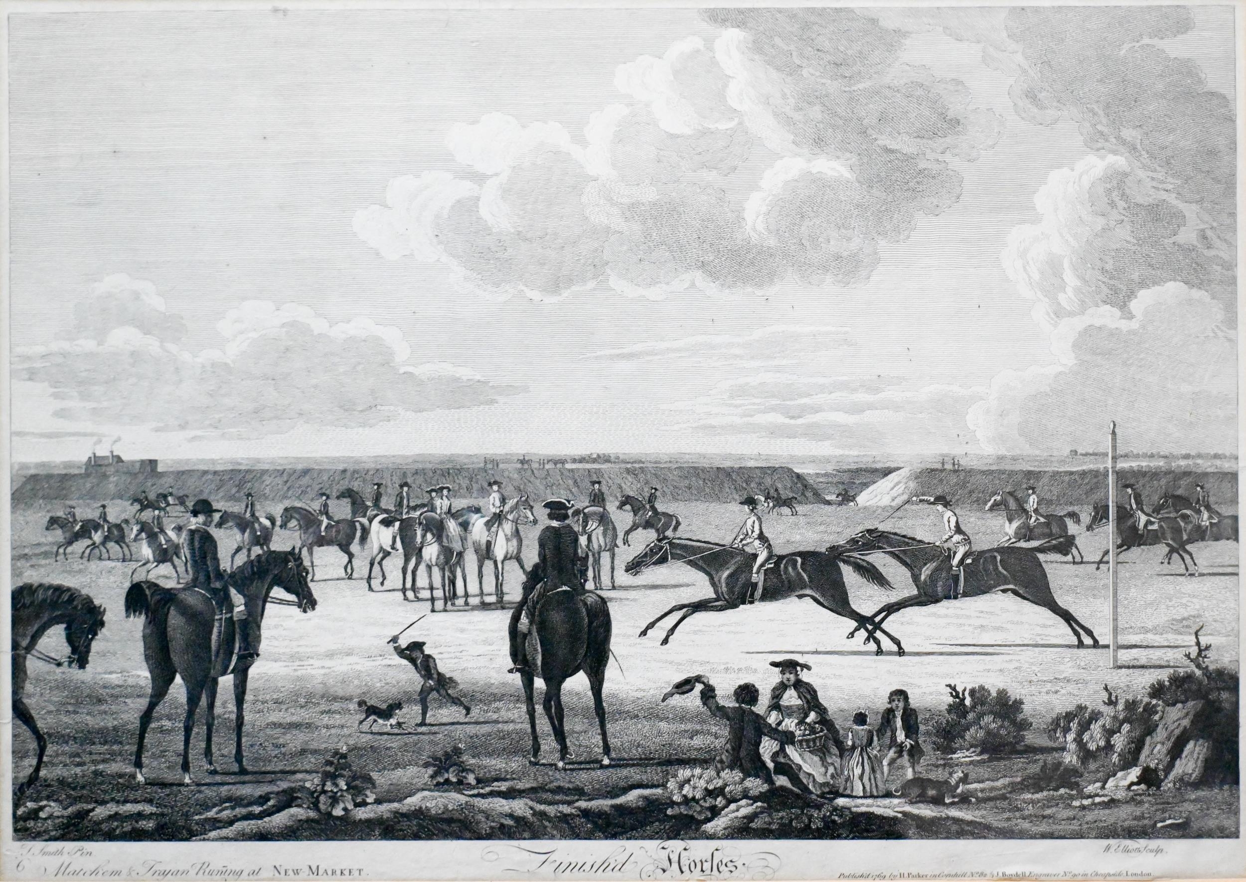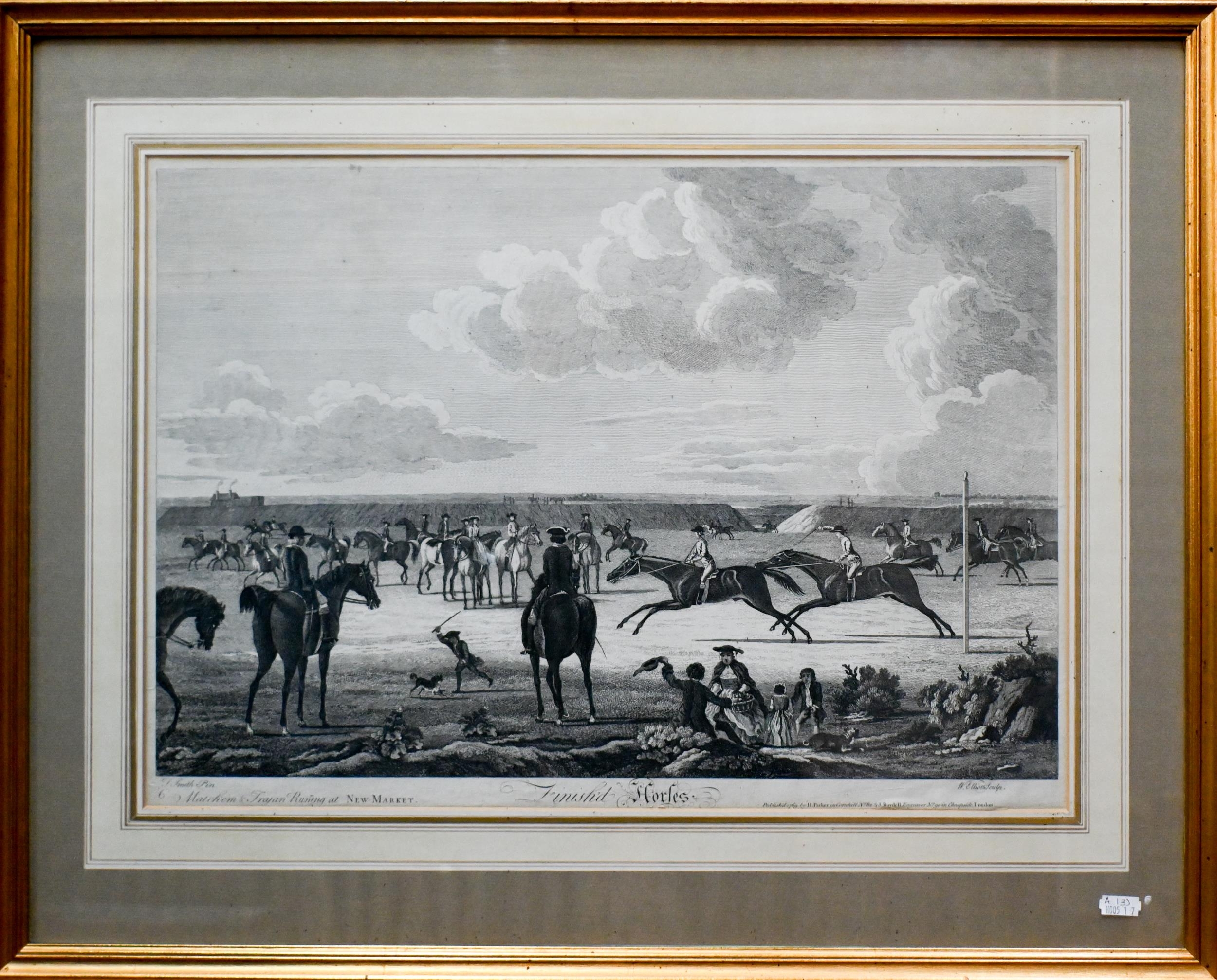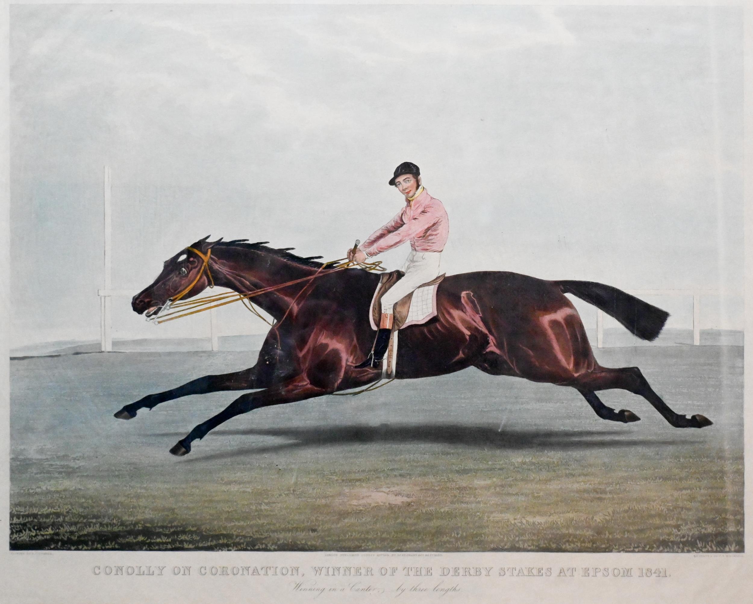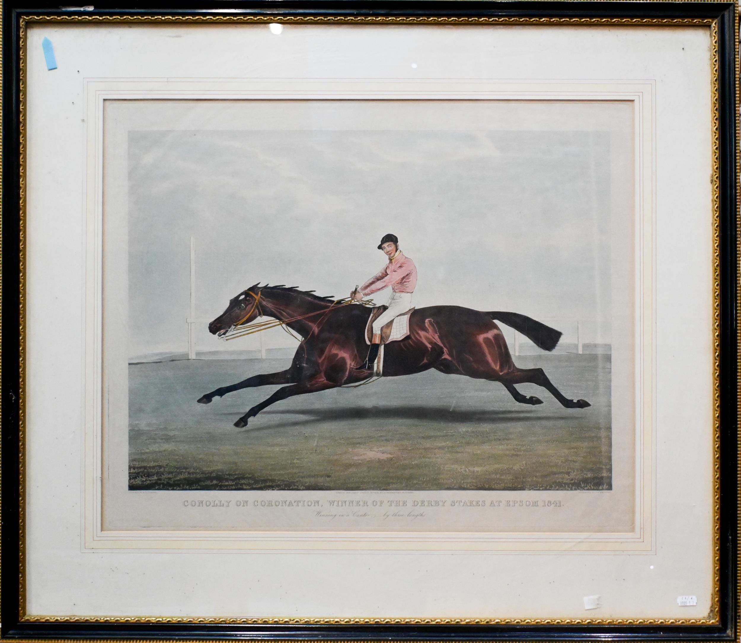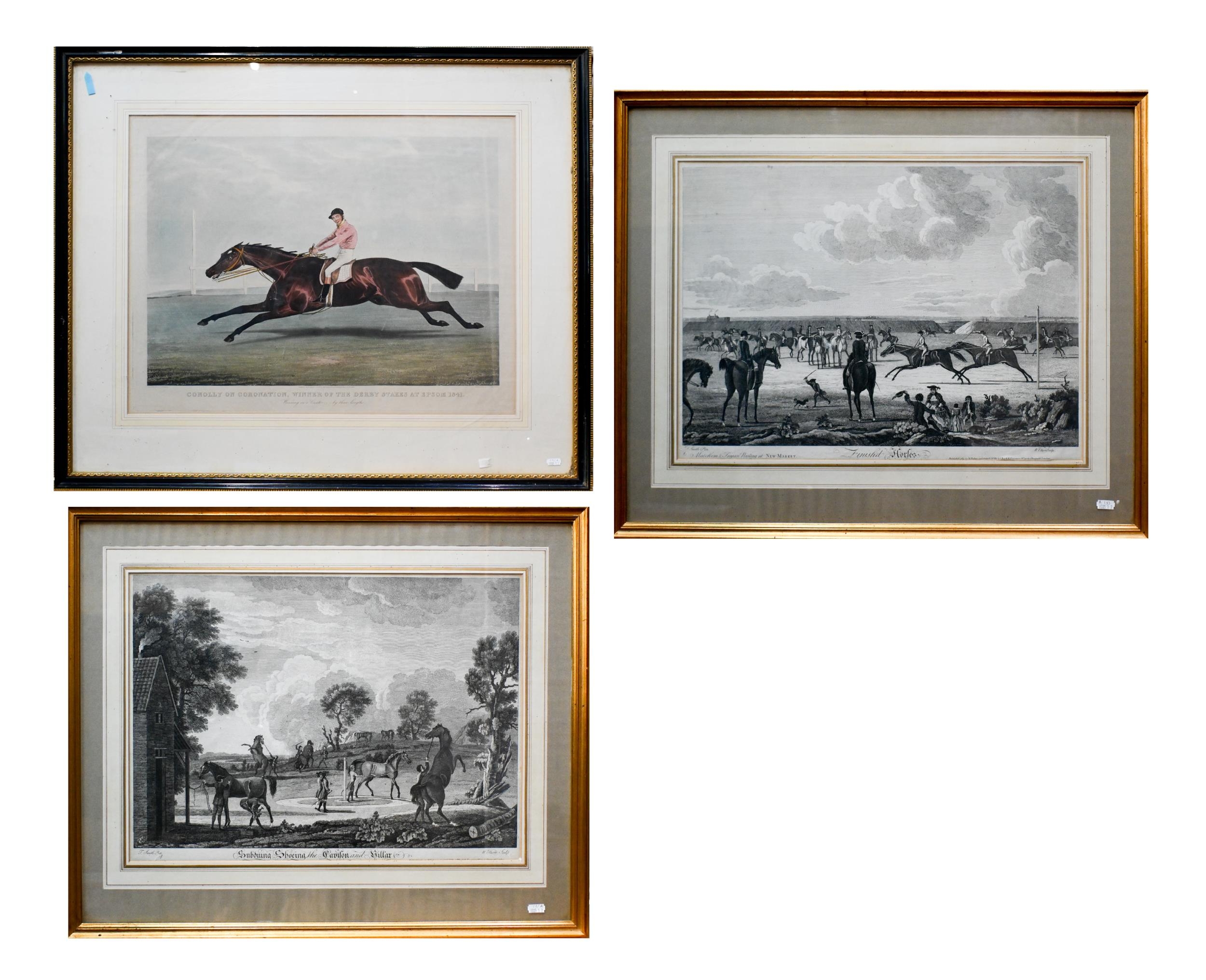 After Smith/Elliott - A pair of 18th century racehorse engravings from the Newmarket series, plates 4 and 6, 38 x 53.5 cm and a hand-coloured engraving 'Conolly on Coronation', 52 x 65 cm (3)