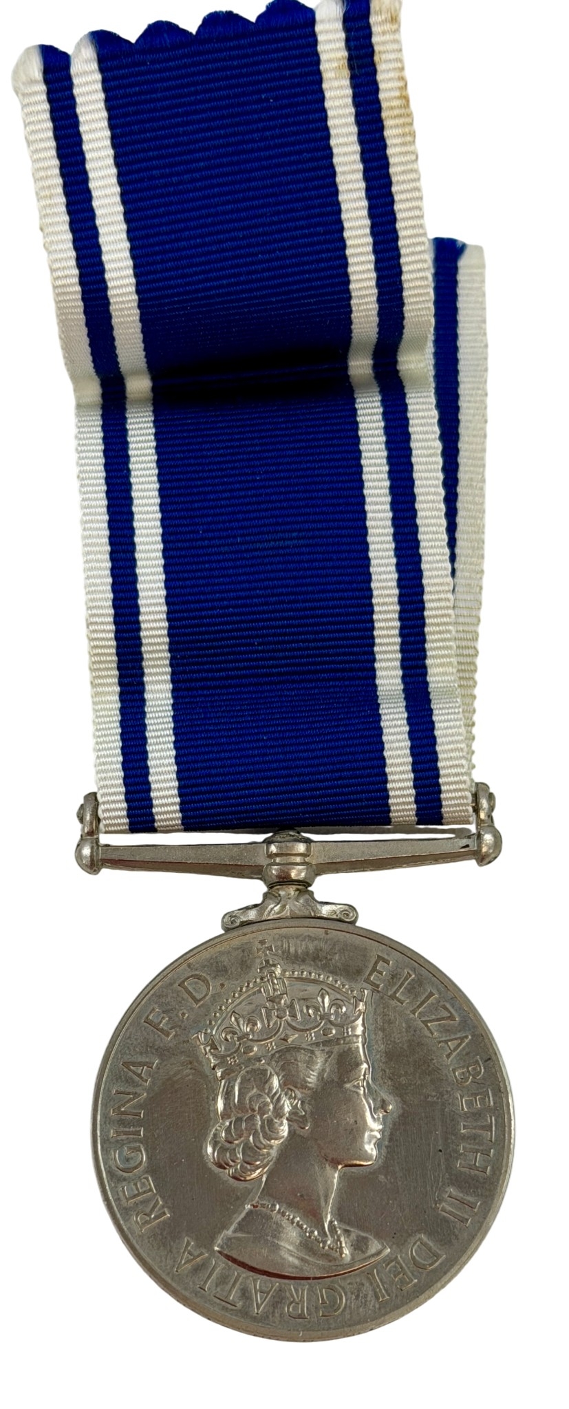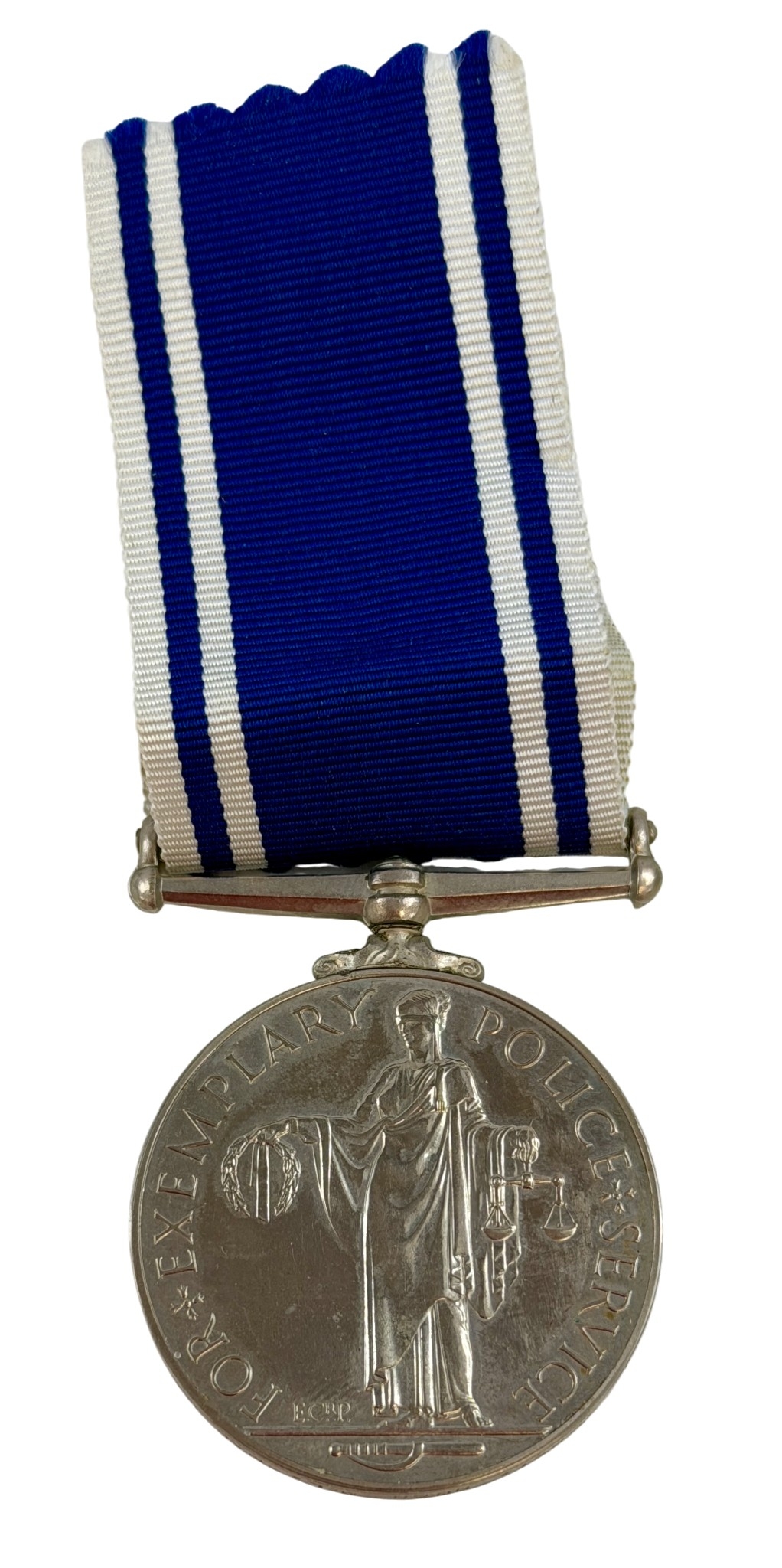 Exemplary Police Service Medal awarded to Const. Hugh Mcl Mac Kay, with original ribbon.