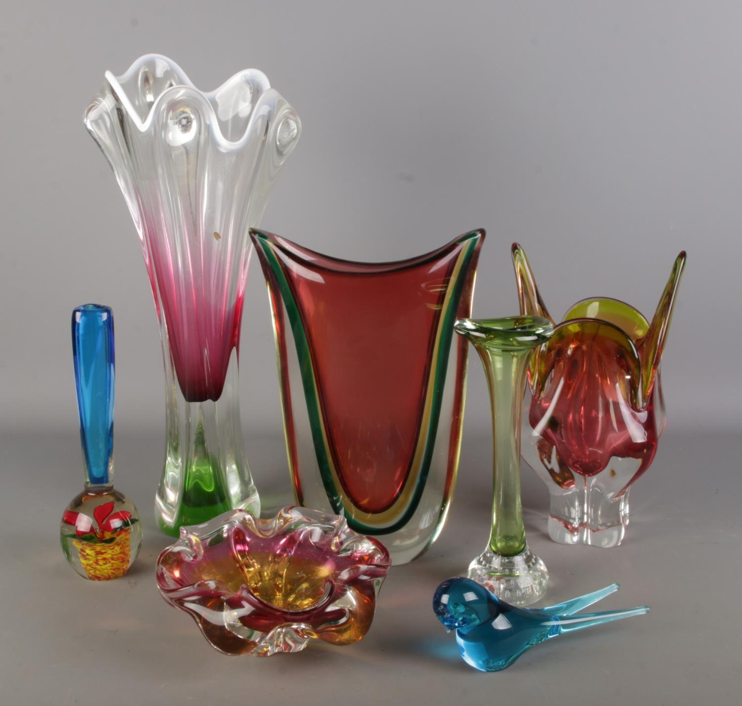 A collection of art glass including Josef Hospodka and Murano Sommerso examples