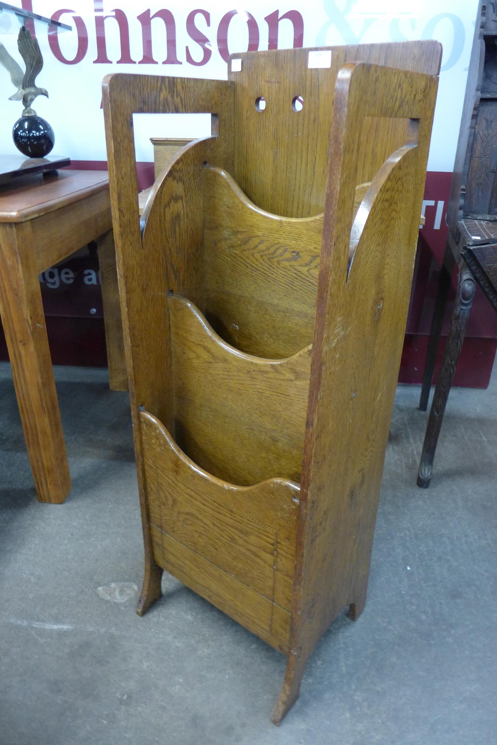 An Arts and Crafts Glasgow School inlaid oak newspaper stand