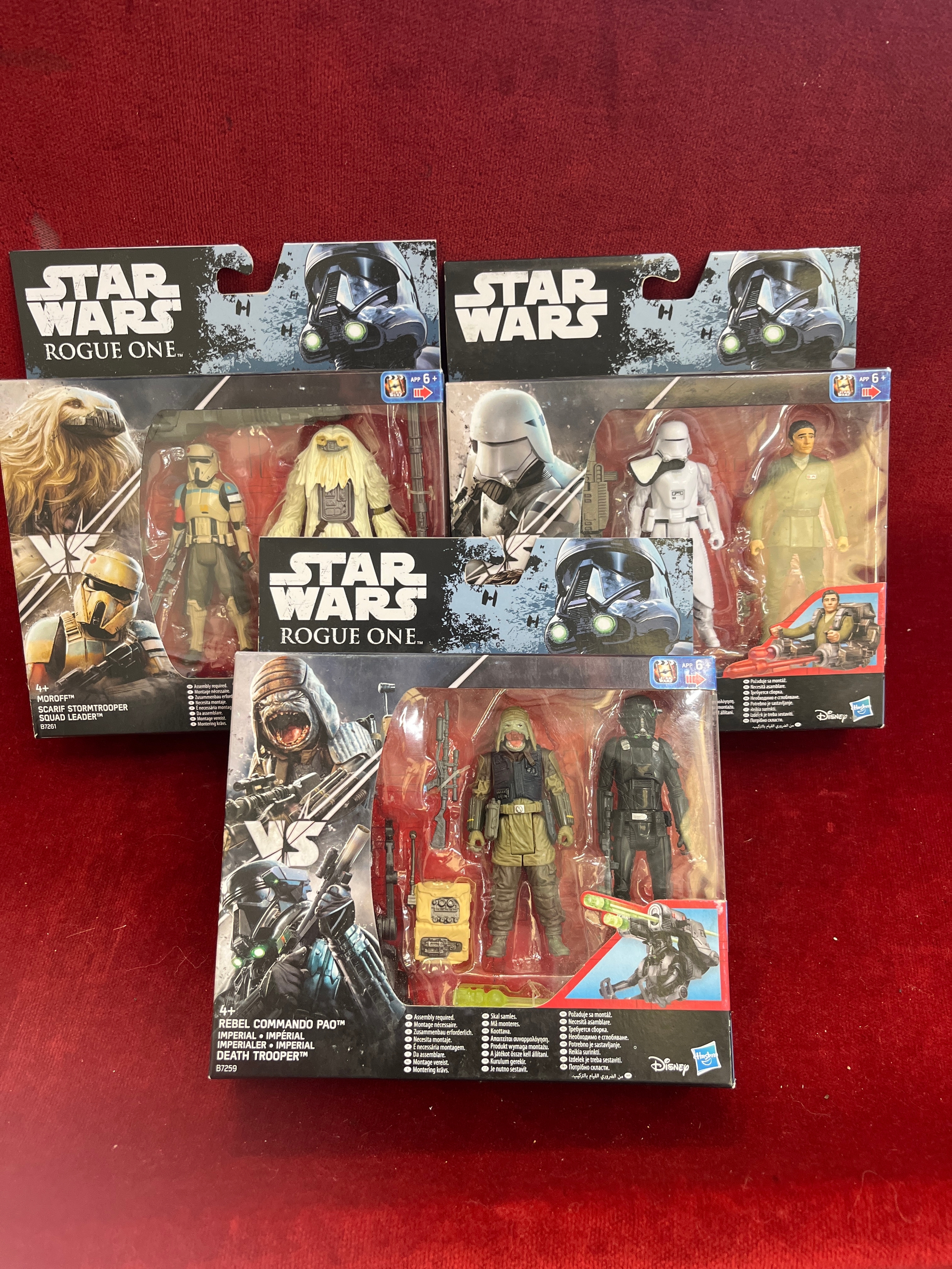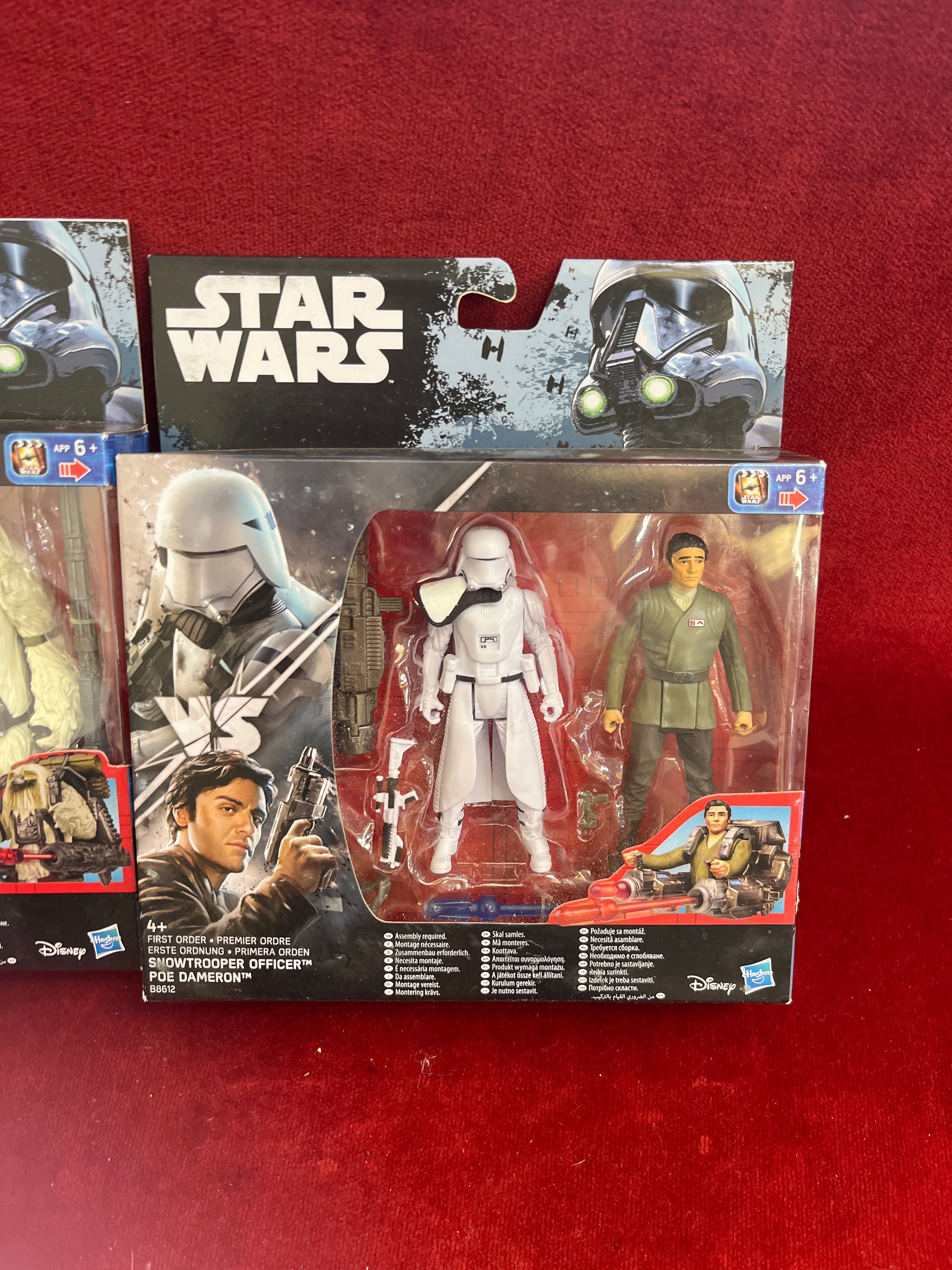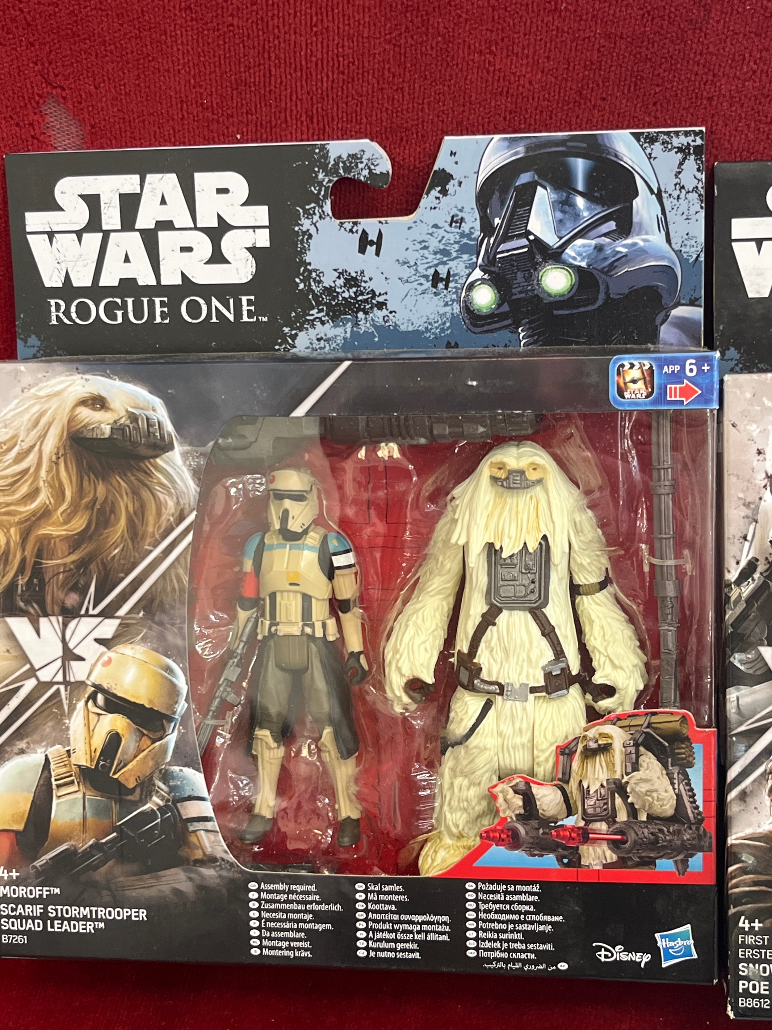 3 x Star Wars Snow trooper Officer, Poe Damerom, Scarif Stormtrooper Squad Leader and Rebel Commando Death Trooper all unused and boxes