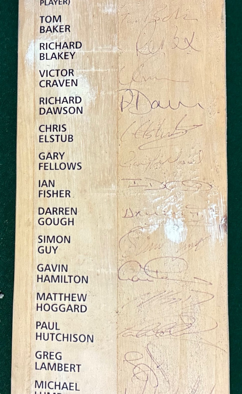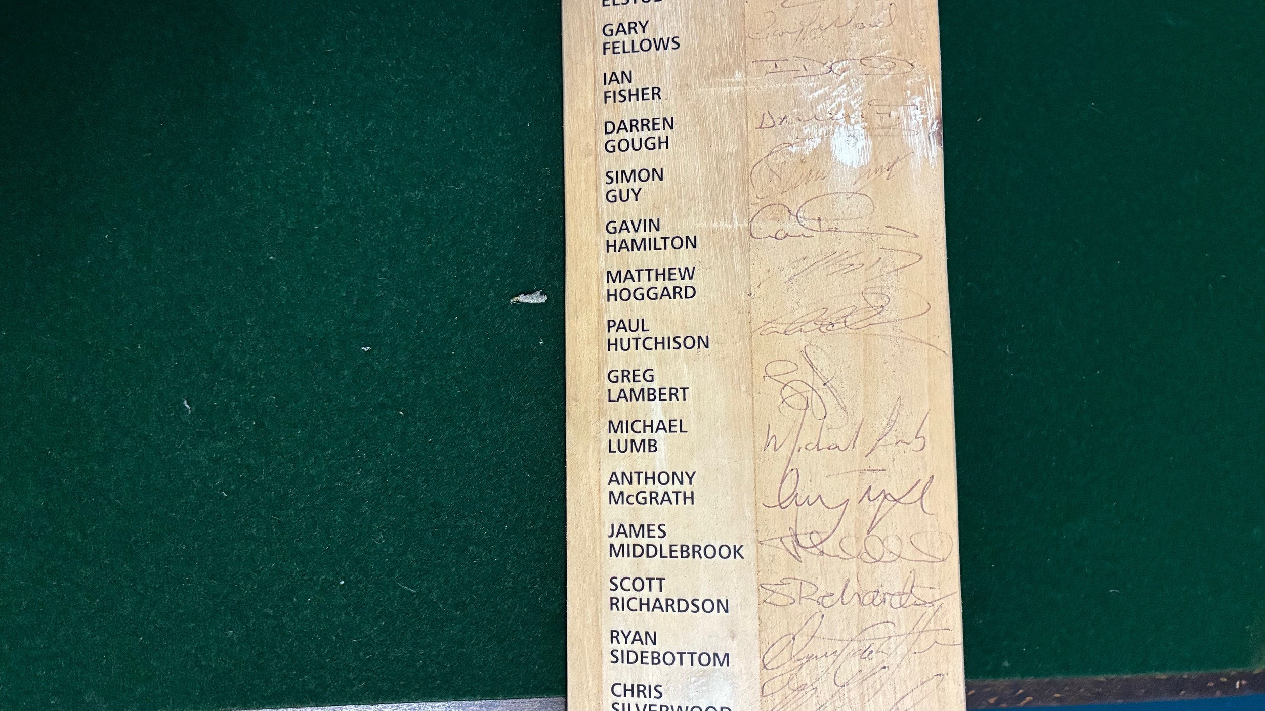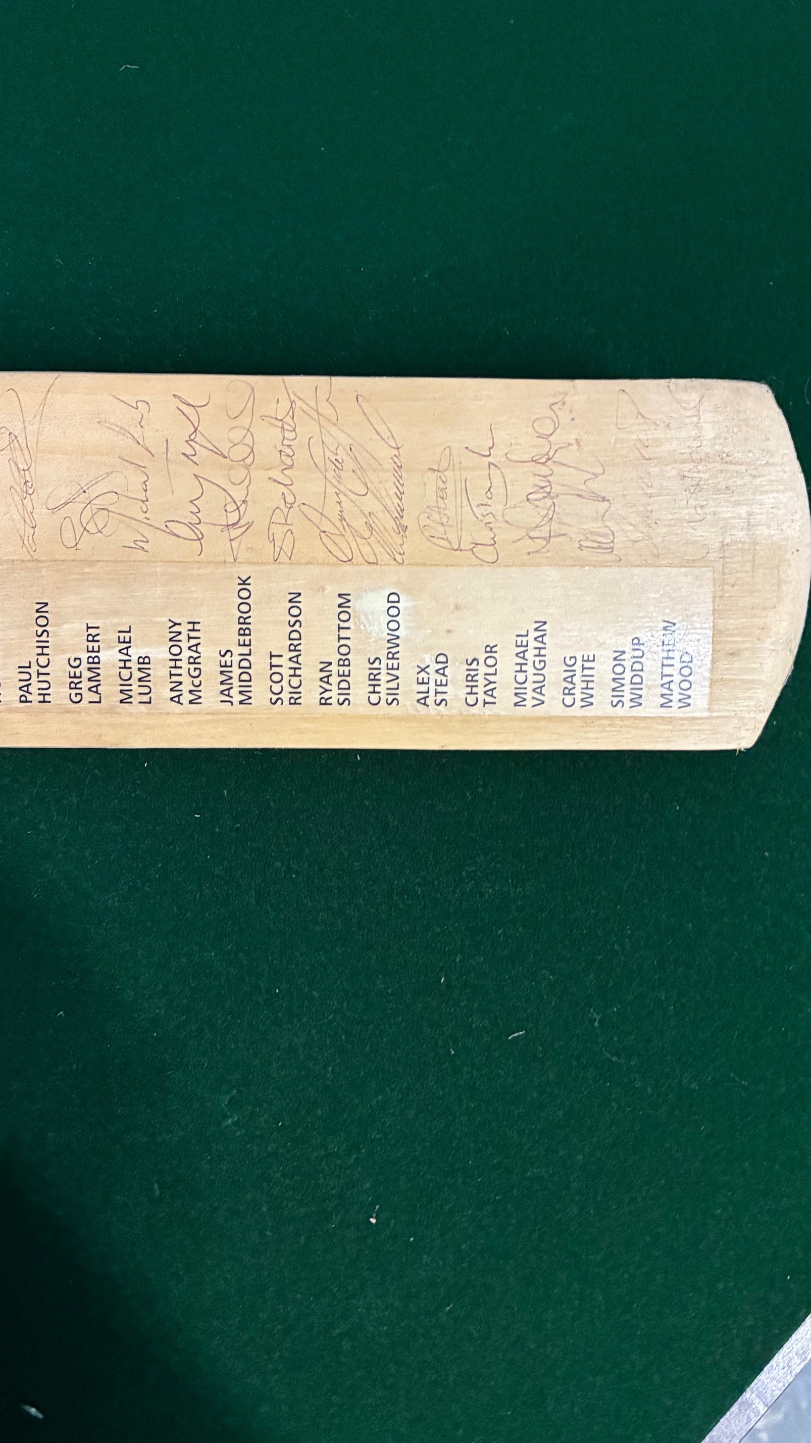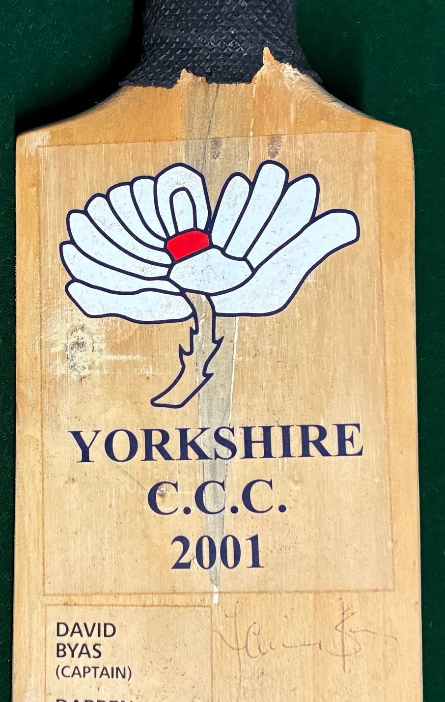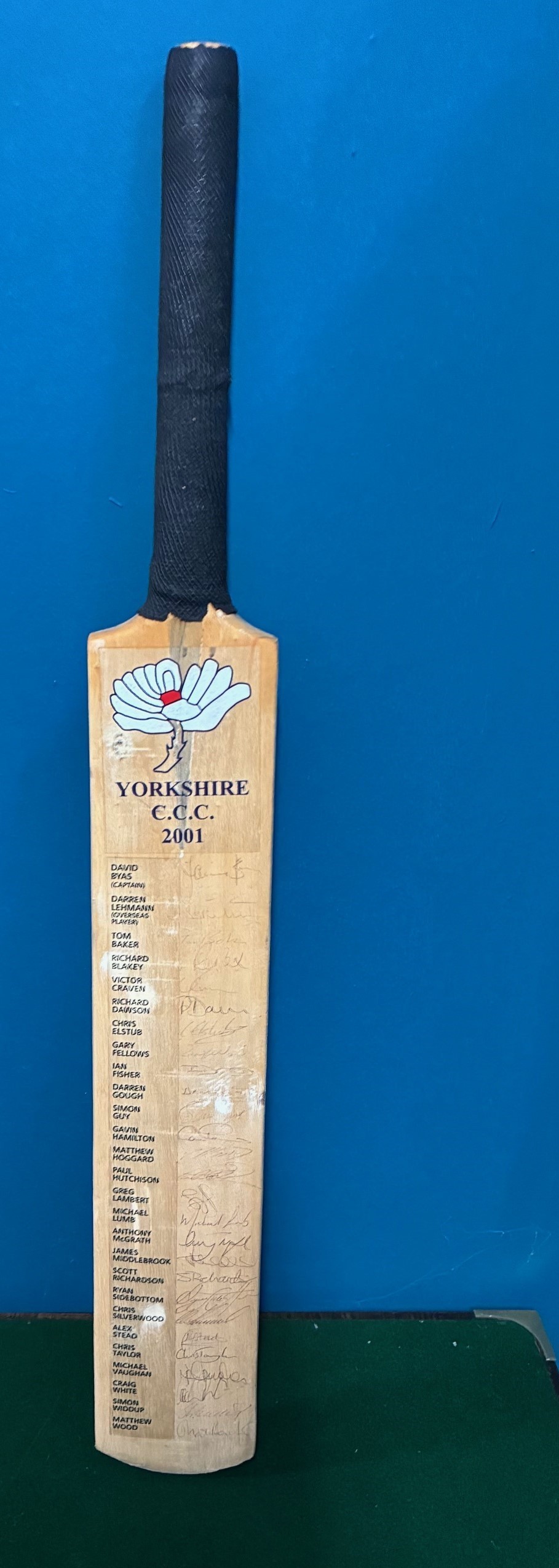 A Yorkshire County Cricket Club 2001 signed cricket bat, 2001 team.