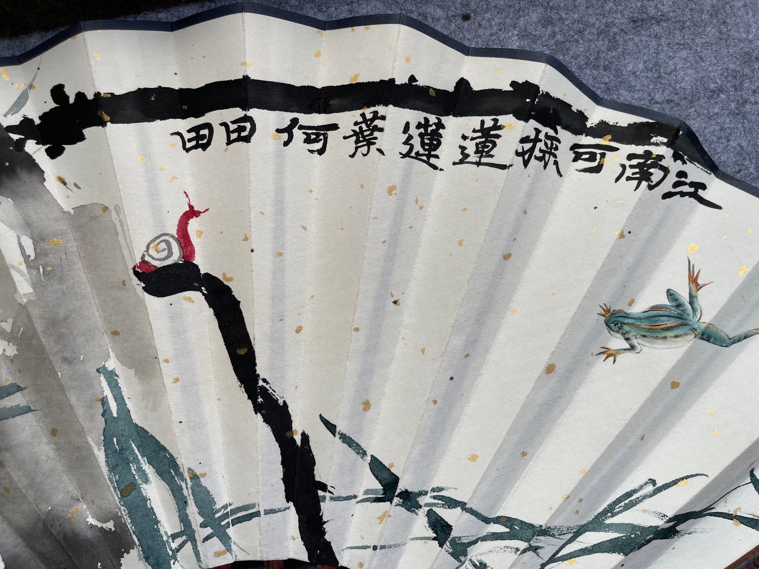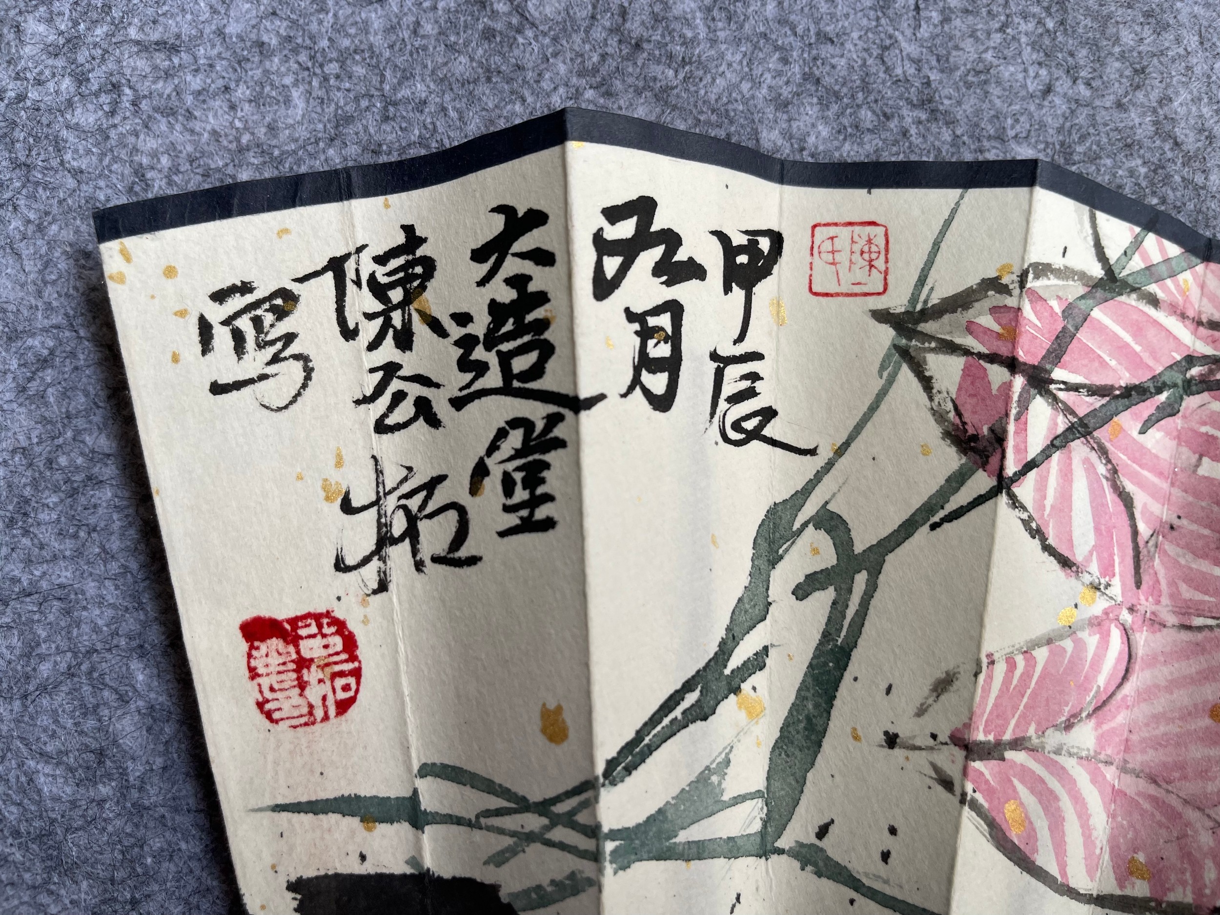 A Qing Dynasty Fan by Gongtuo Chen – Calligraphy and Ink Painting, 20cm x 60cm.