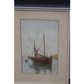 TWO SIGNED WATERCOLOURS OF SAIL BOATS AND A DRAWING OF A SAIL SHIP AND TENDER