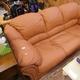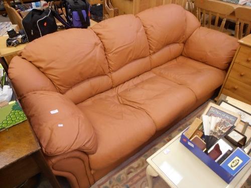 A THREE SEATER TERRACOTTA LEATHER SOFA