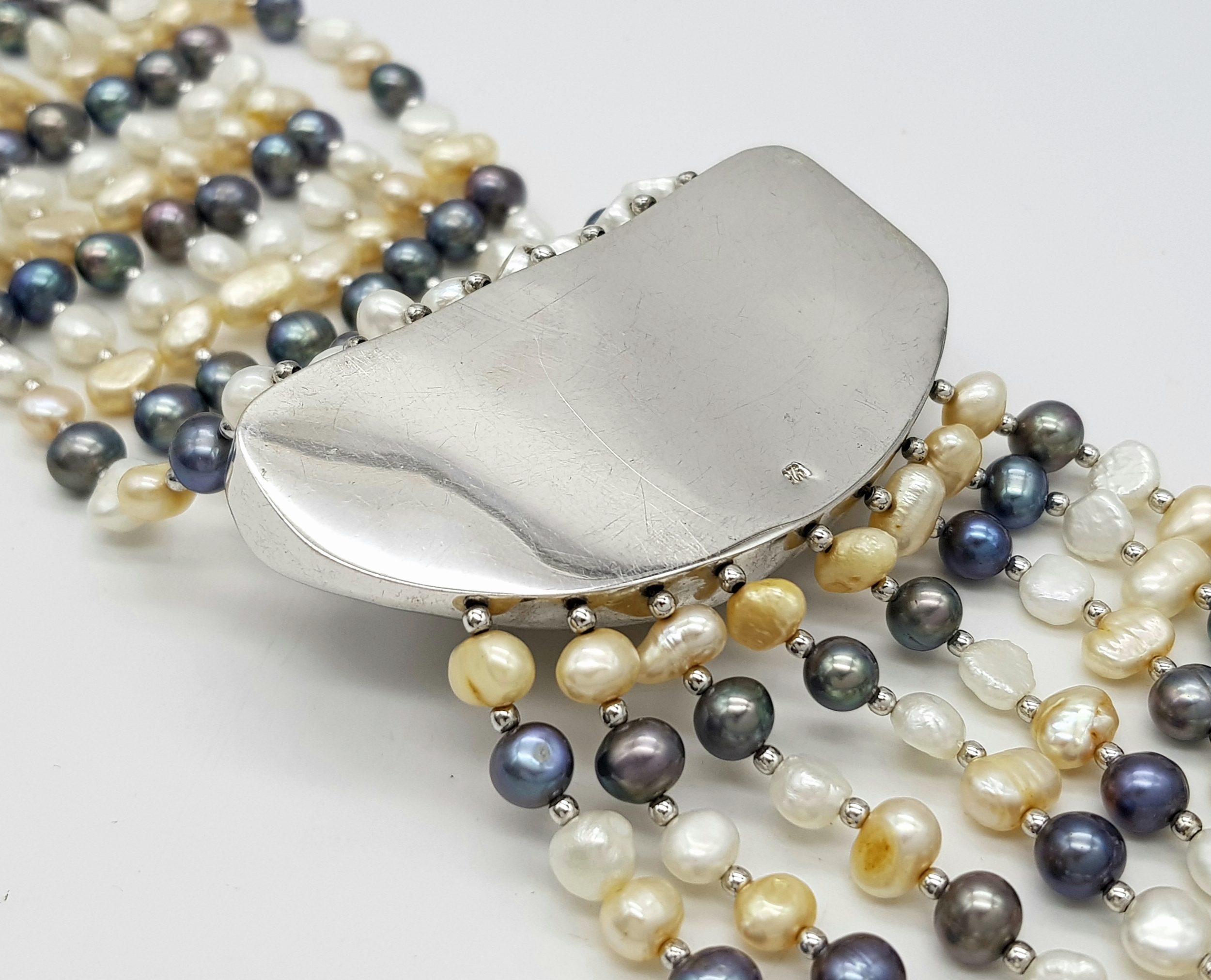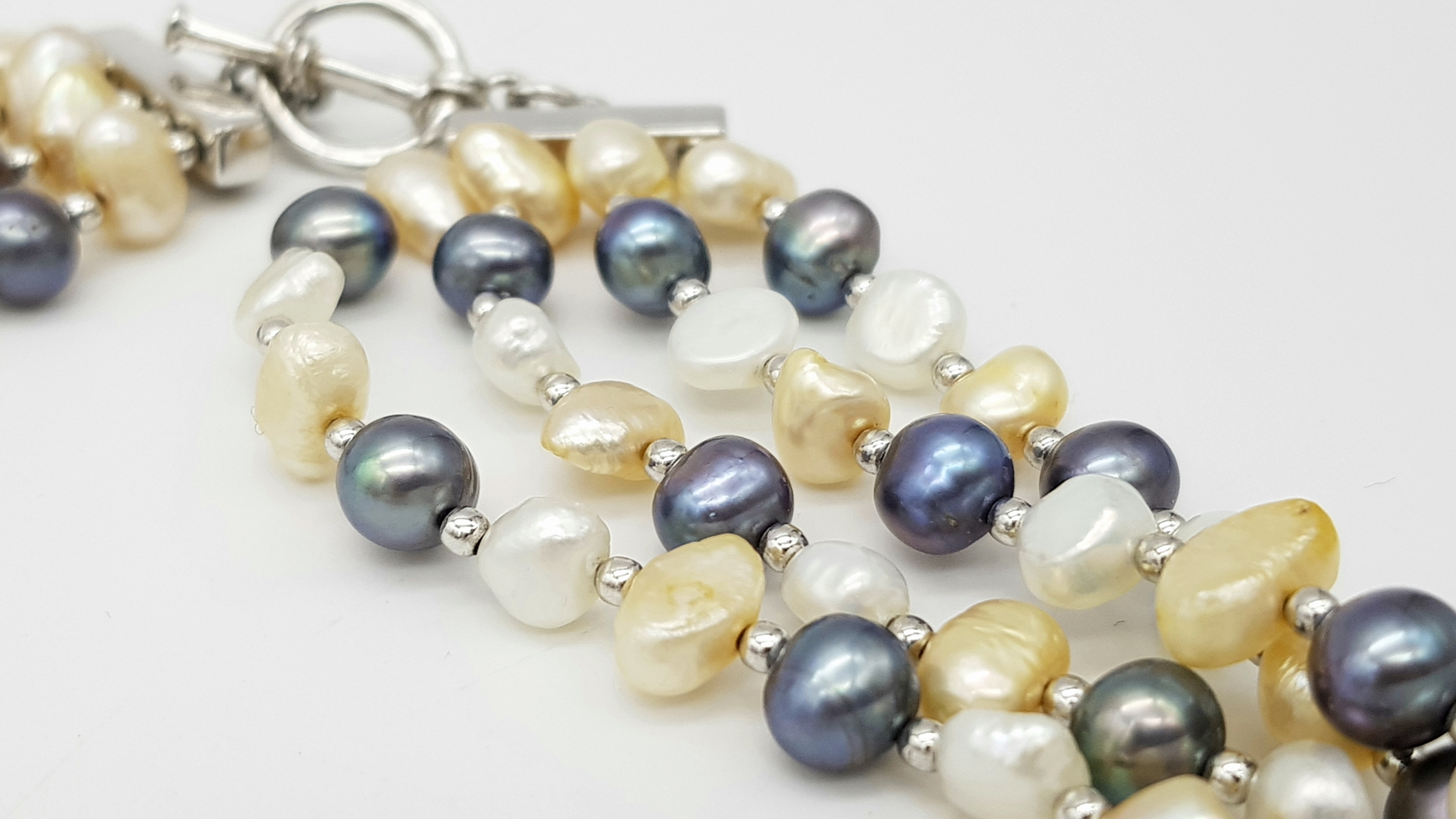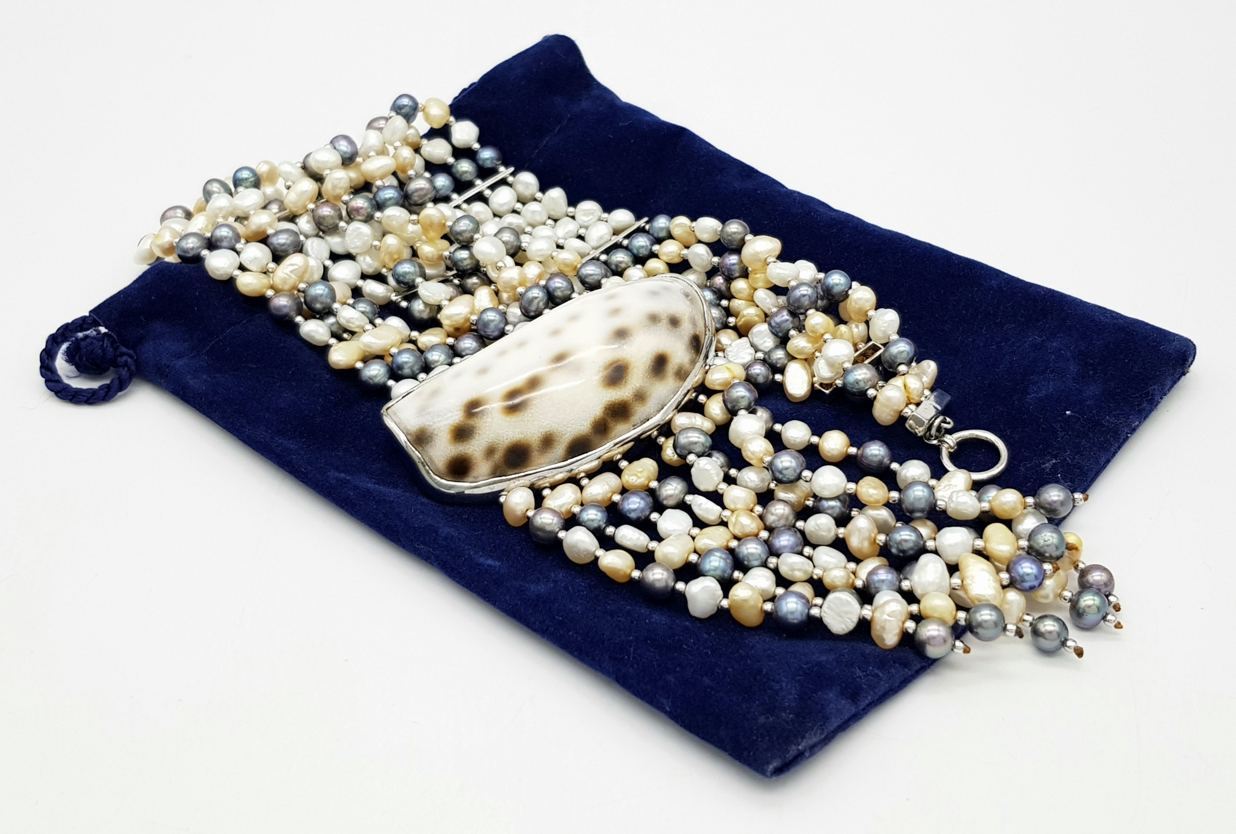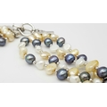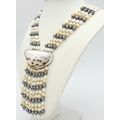 A gorgeous 925 silver Natural Shell and Pearls multi-strand T-bar necklace. Total weight 132.5G. Total length 44cm.