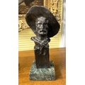 After Frederic Remington (American, 1861 - 1909) 'The Sergeant', a cast bronze bust of a 'Rough Rider' cowboy, signed to left side and back of plinth, on green marble base, height 28.75cm