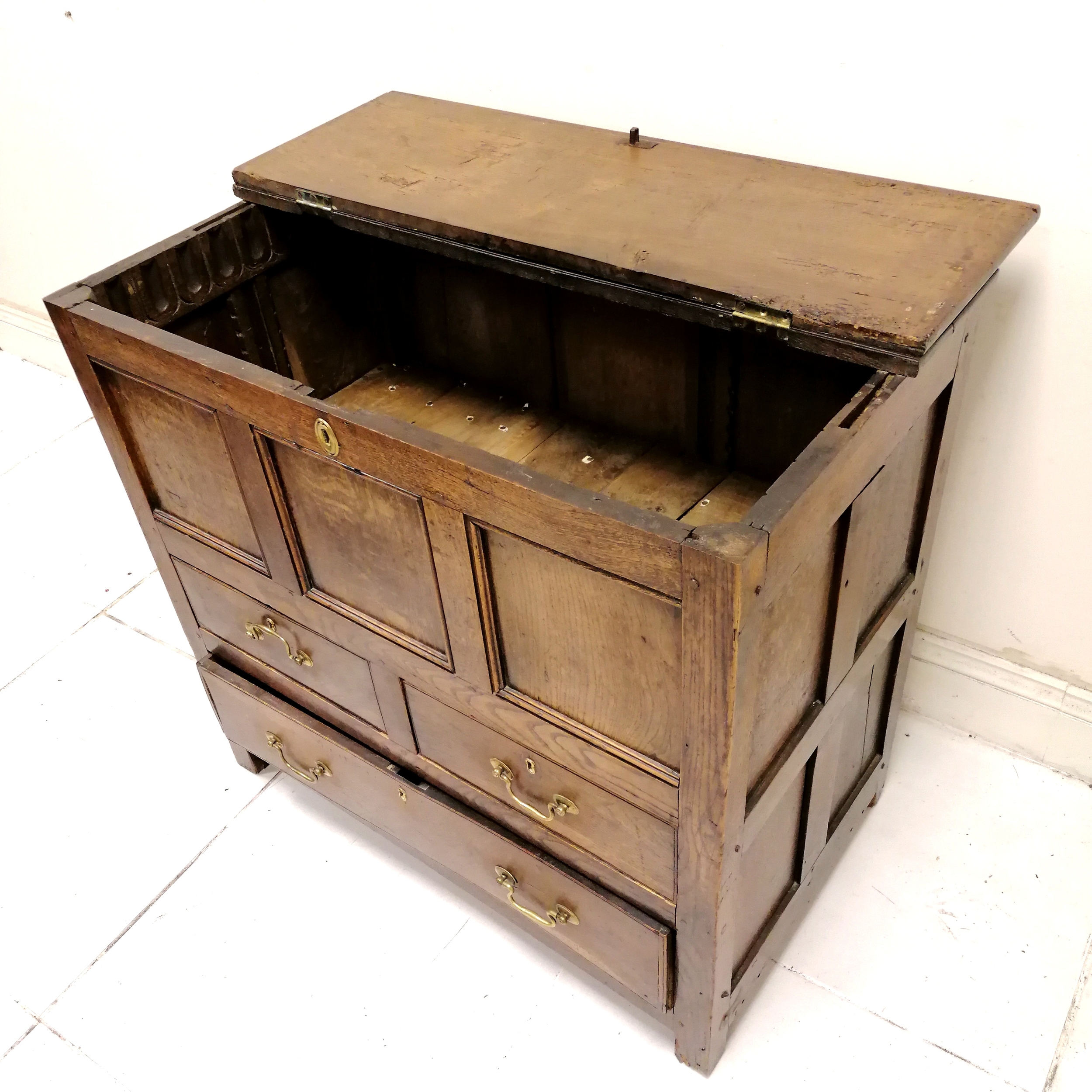 Antique dark oak mule chest - 98cm x 56cm x 93cm